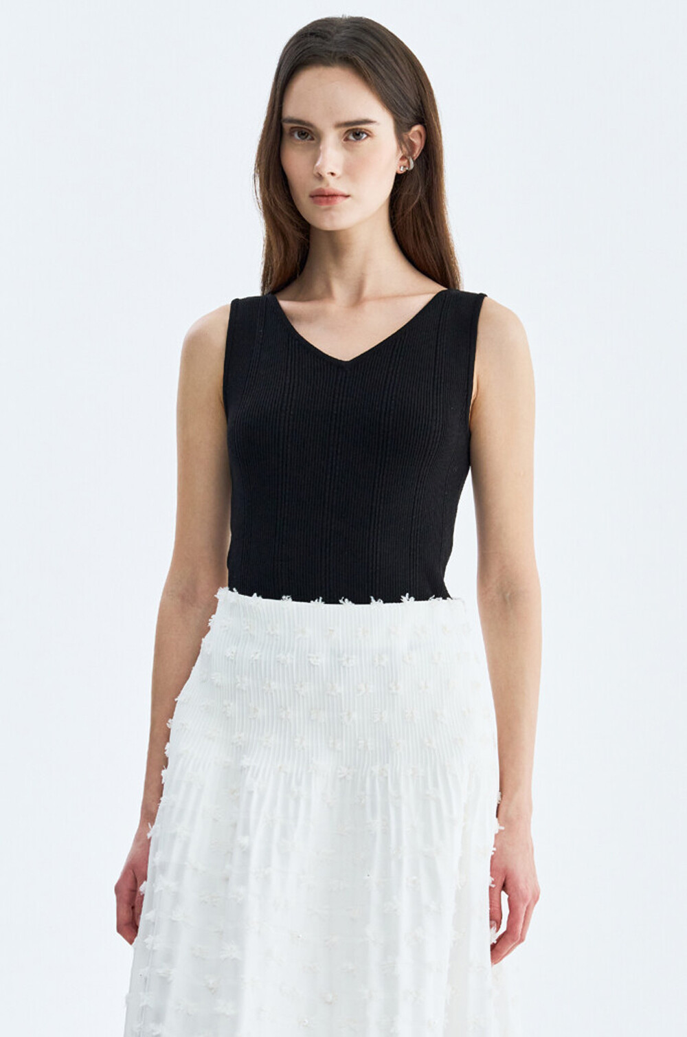 브이넥 라인으로 연출되어