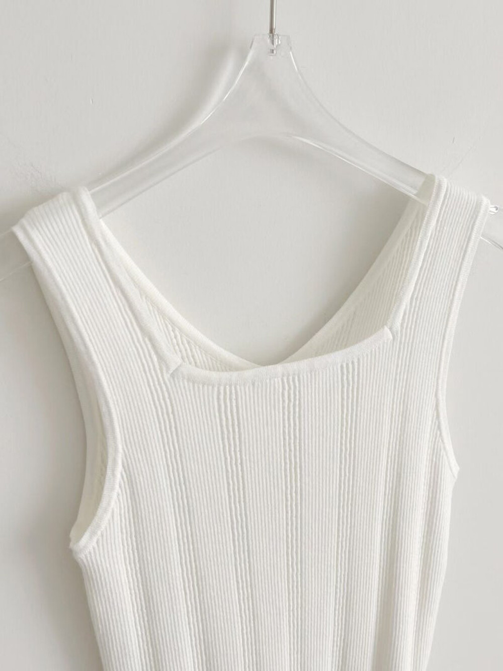 - 앞면 스퀘어넥 디자인과 뒷면 브이넥 디자인