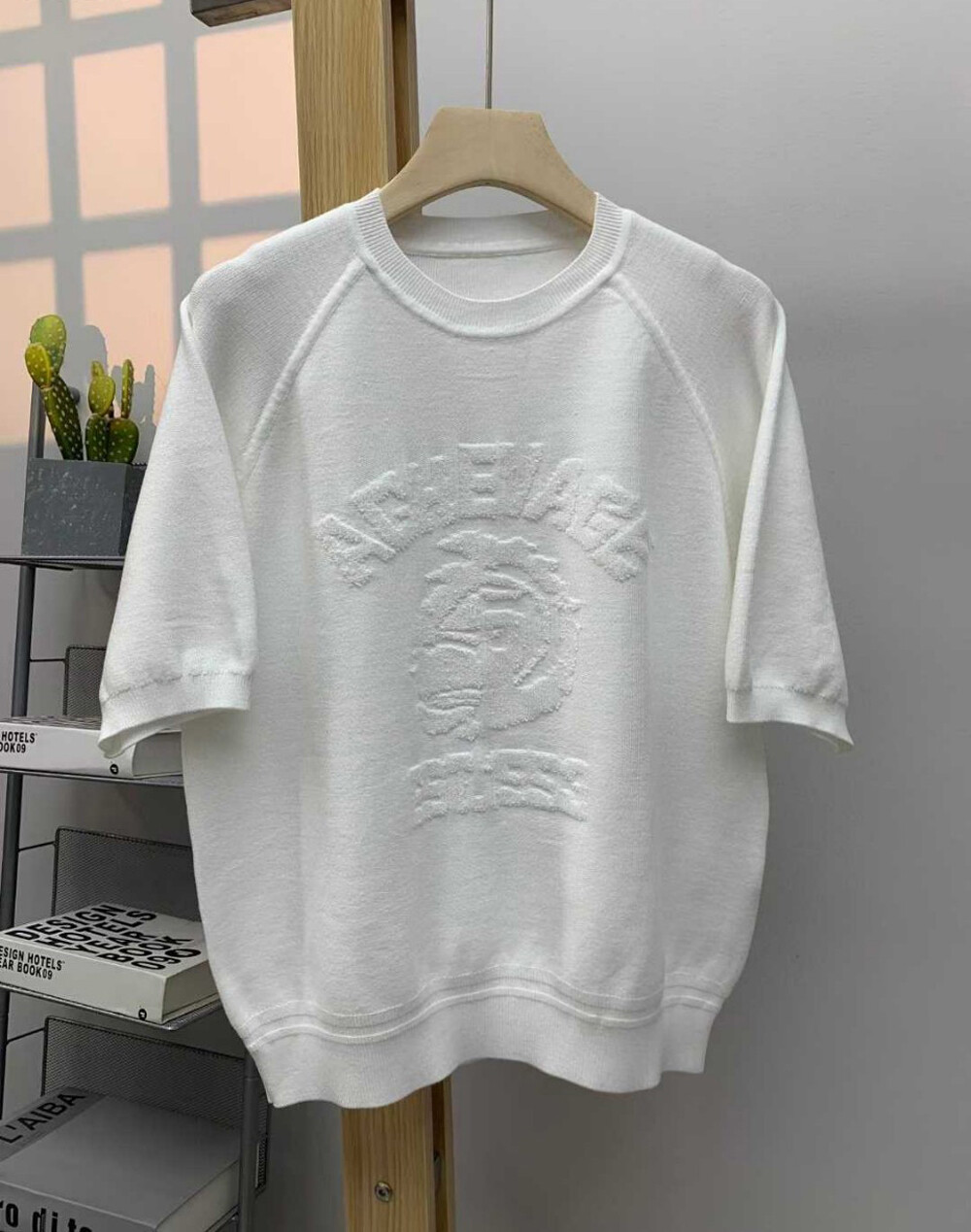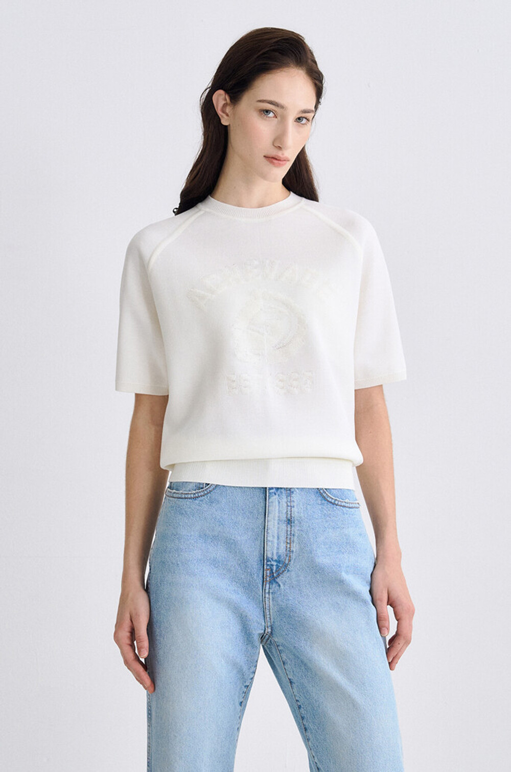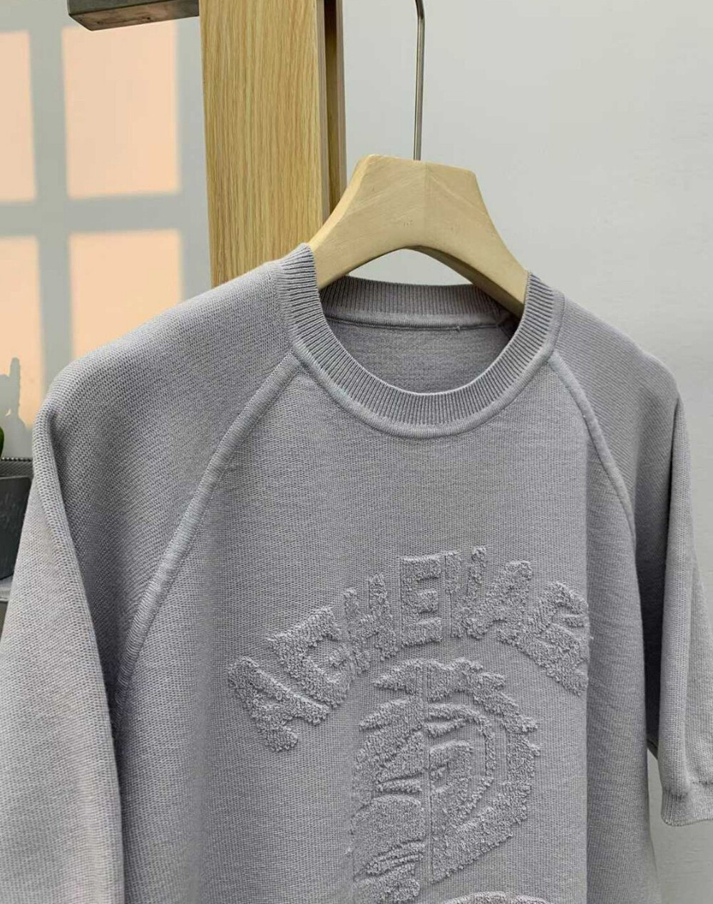 타임. 부클 텍스처 하프 슬리브 티셔츠