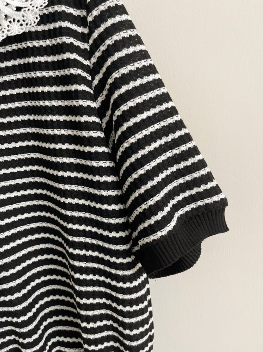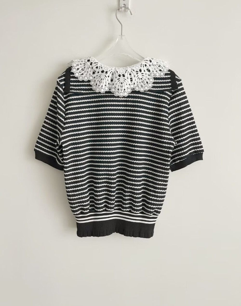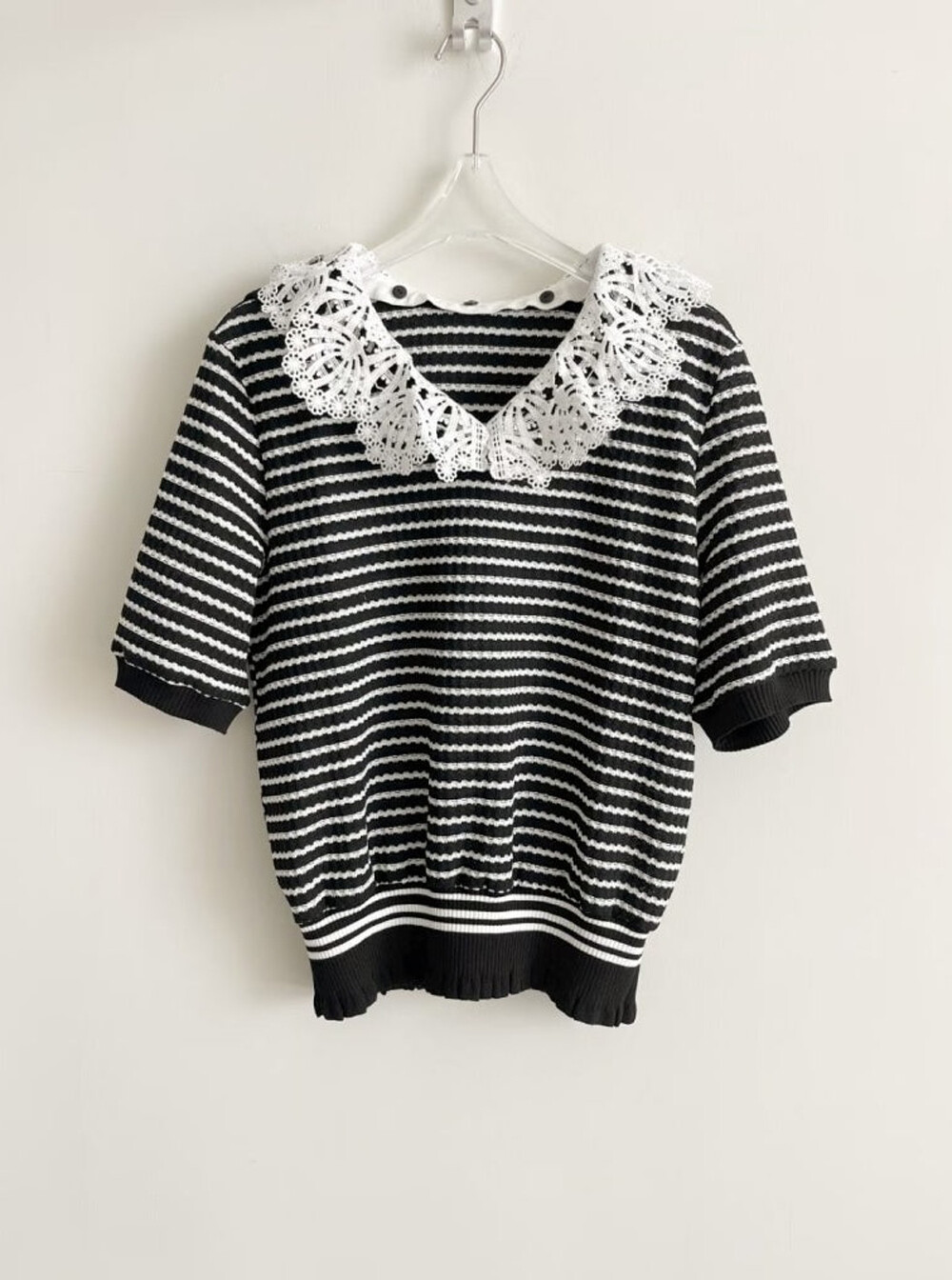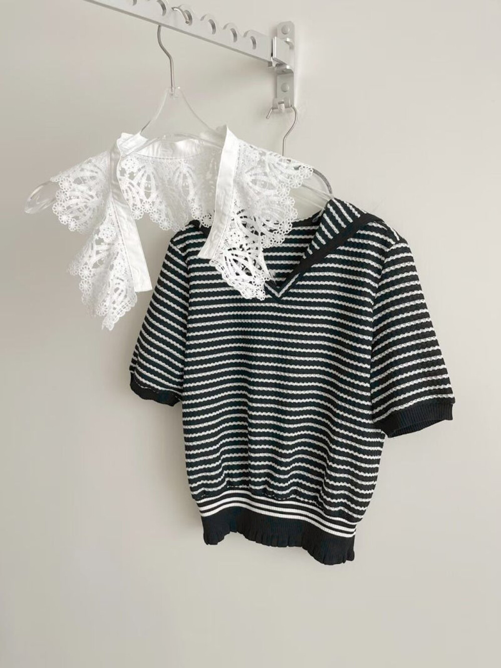 MINE. Detachable Lace Collar Stripe Top