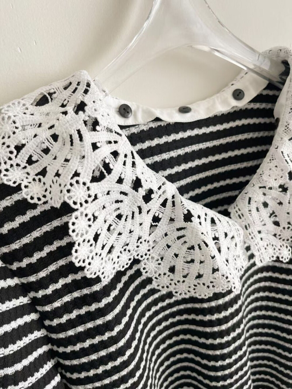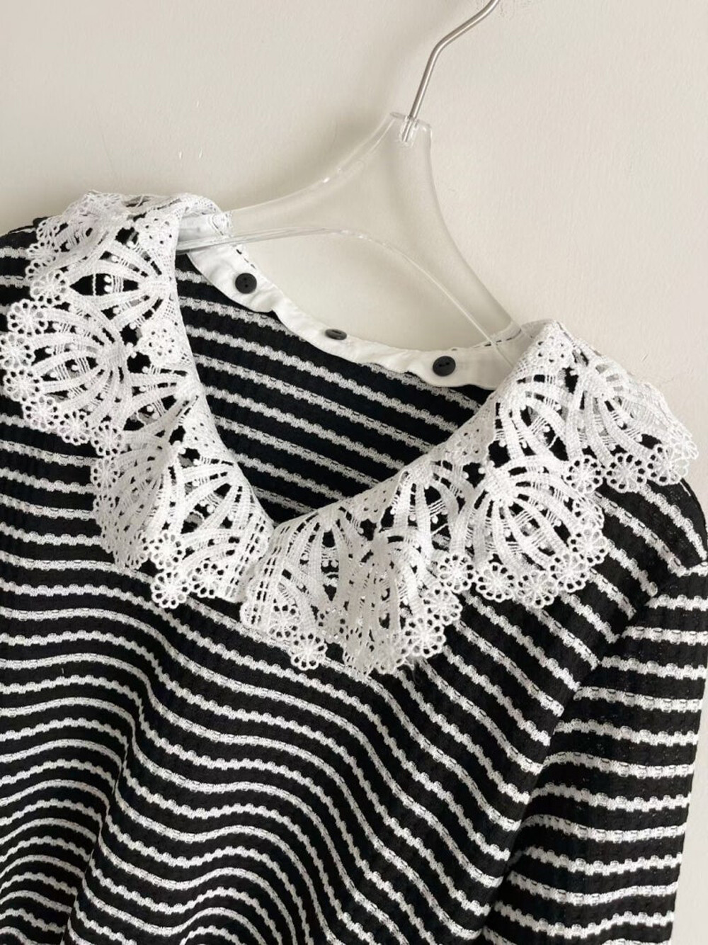 - 넥라인 내부에 버튼으로 탈부착 가능한 레이스 칼라를 함께 구성