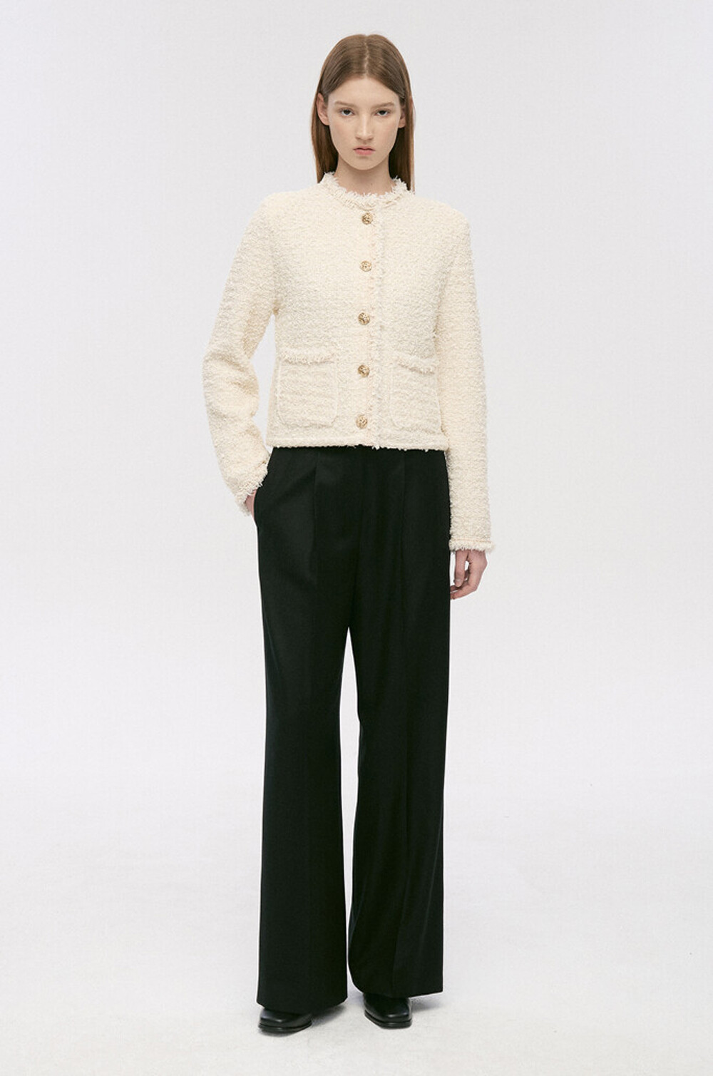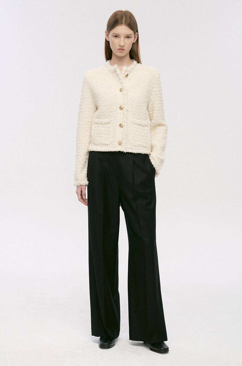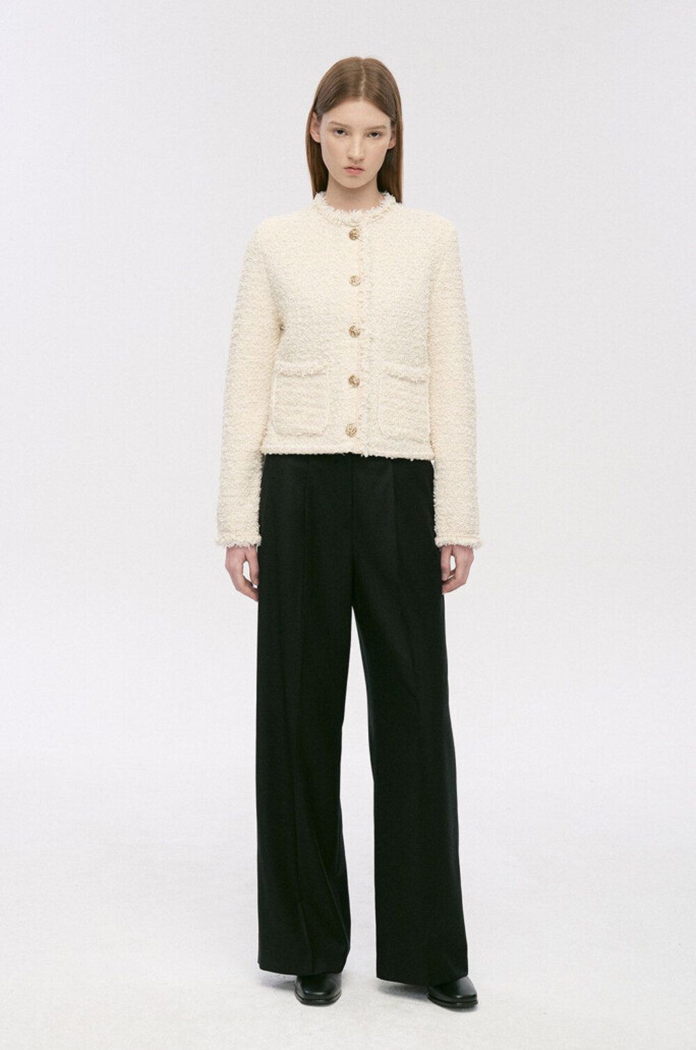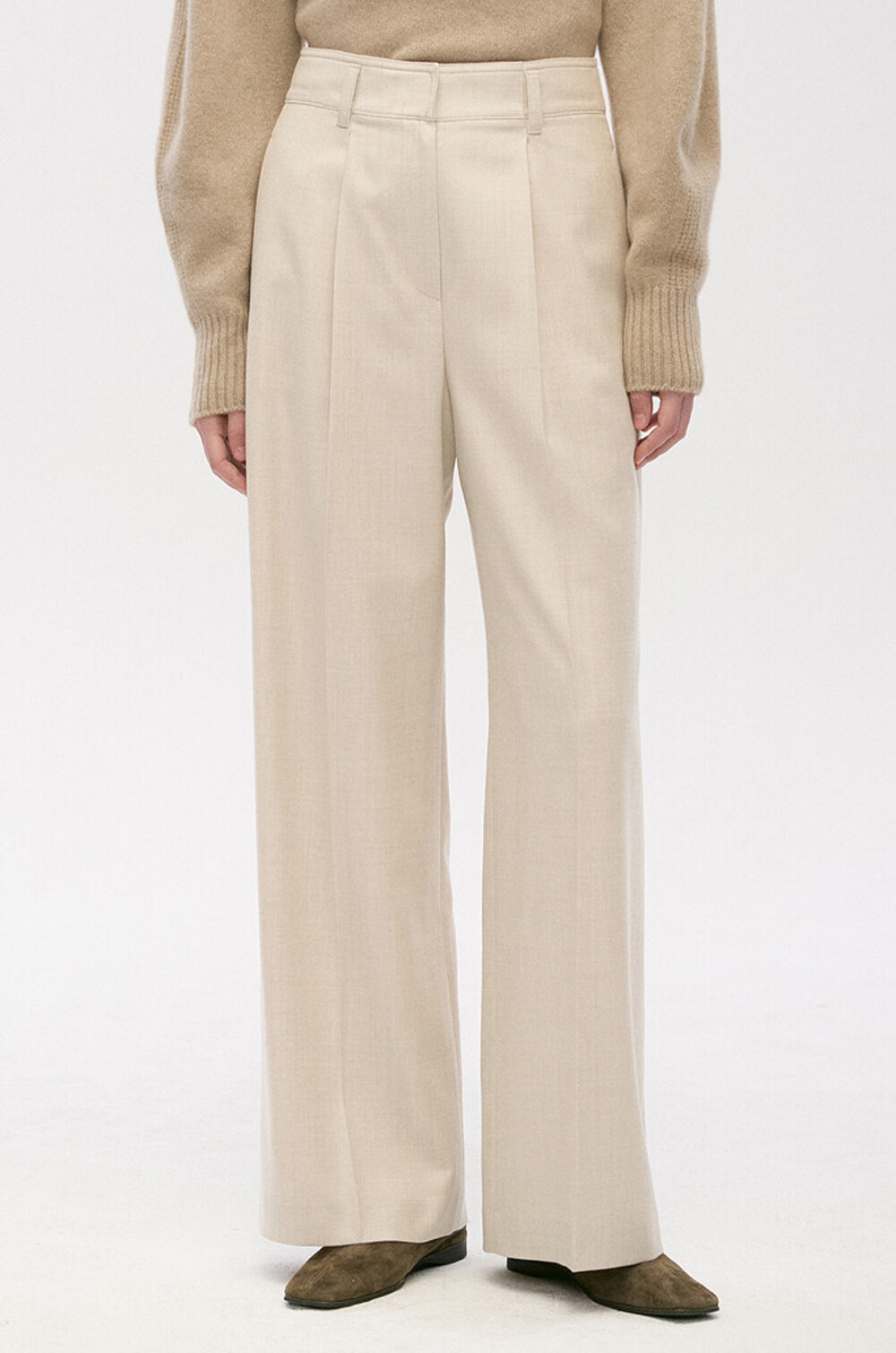TIME. Wool Back One Tuck Wide Pants