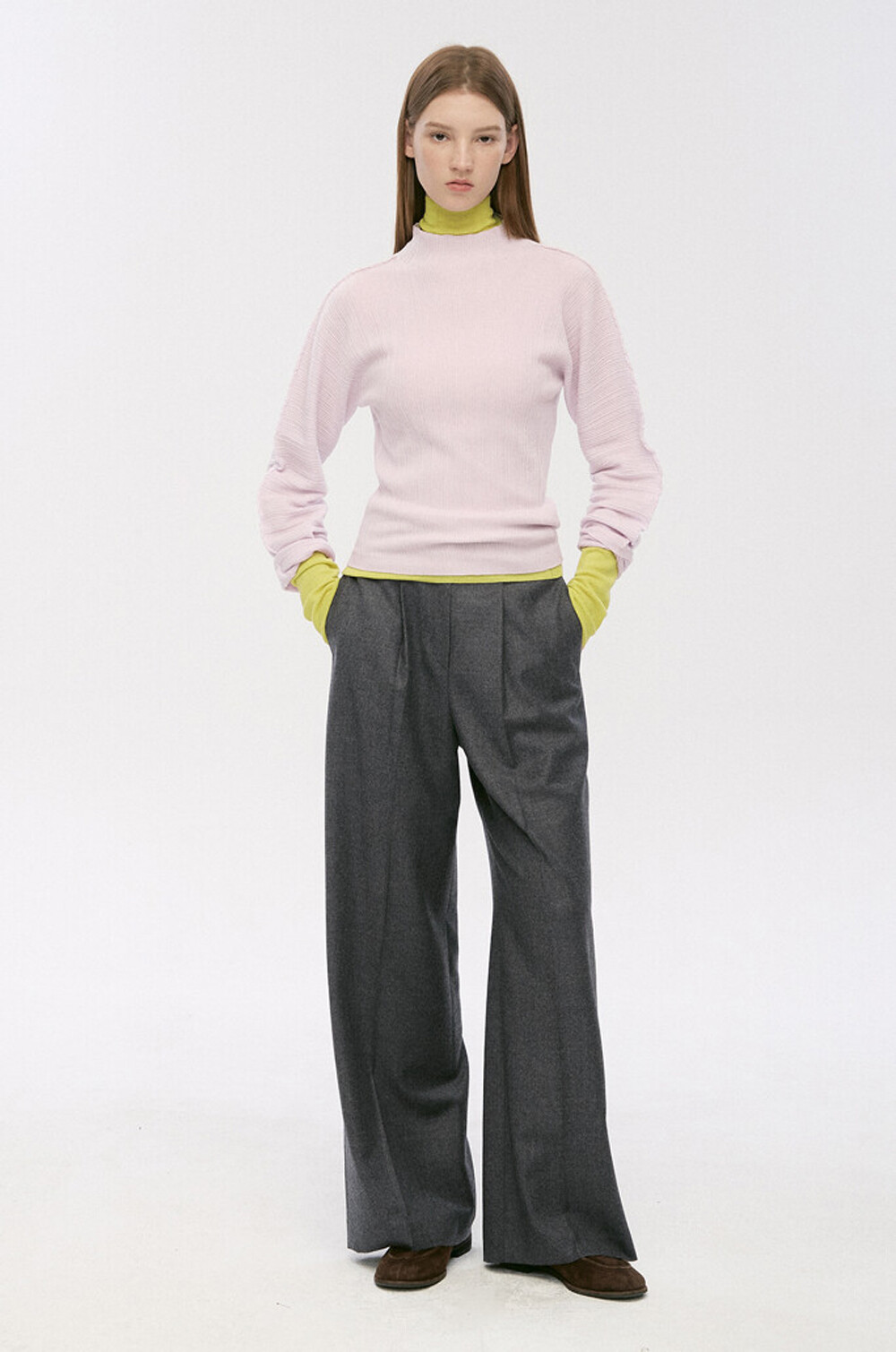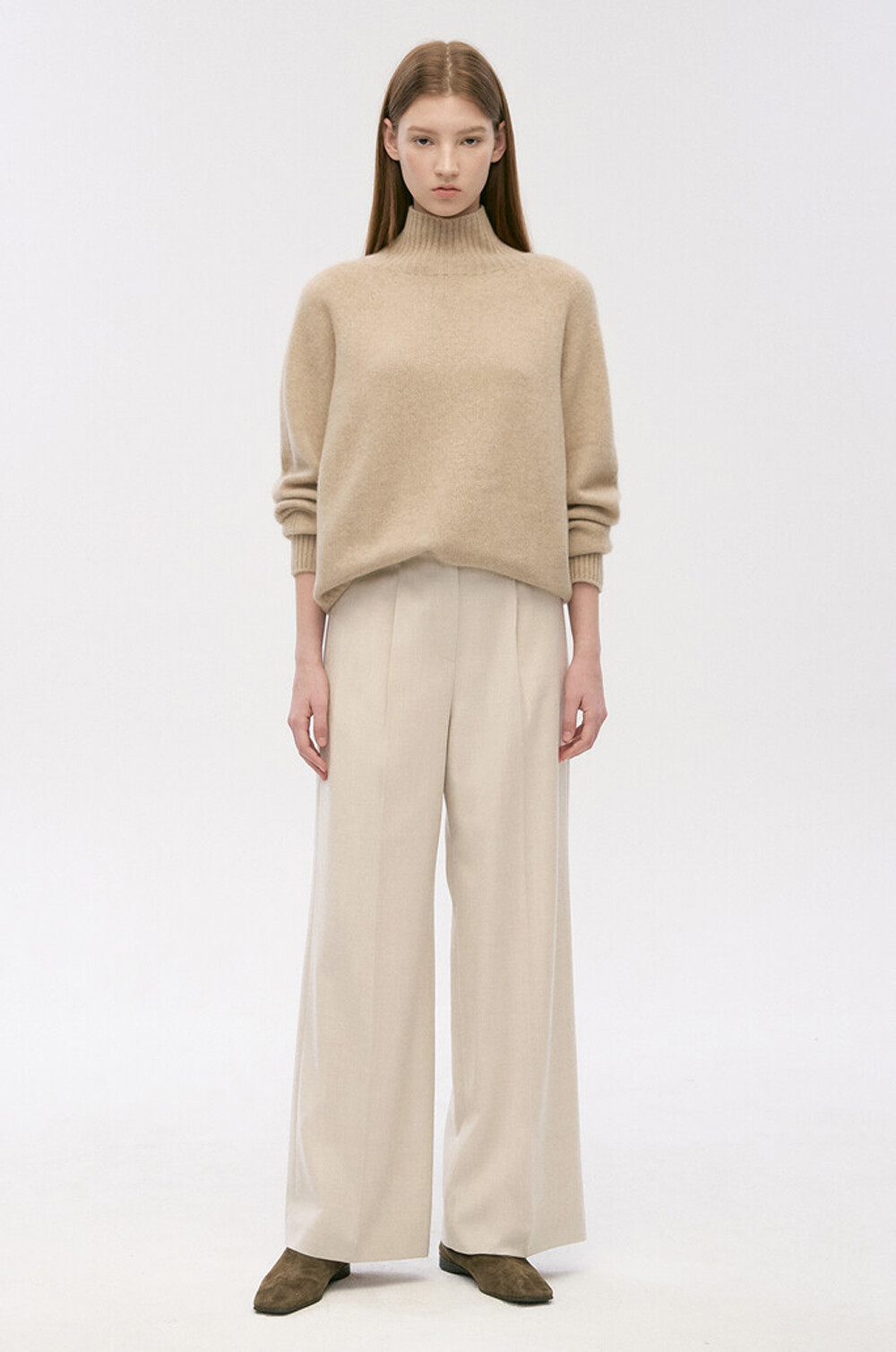 타임 울 백 밴딩 원턱 와이드 팬츠
