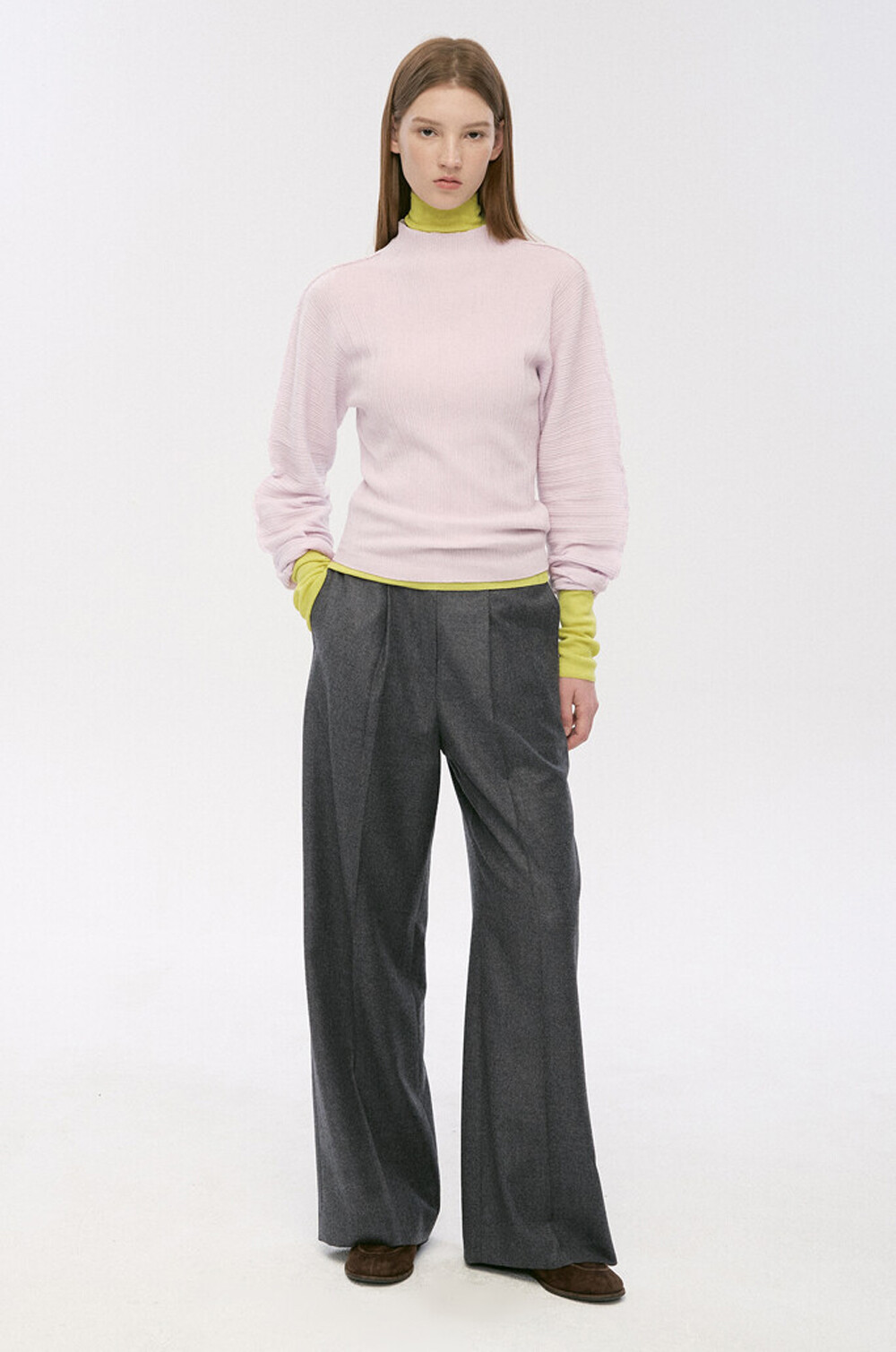 편안한 울 혼방 와이드 팬츠로,