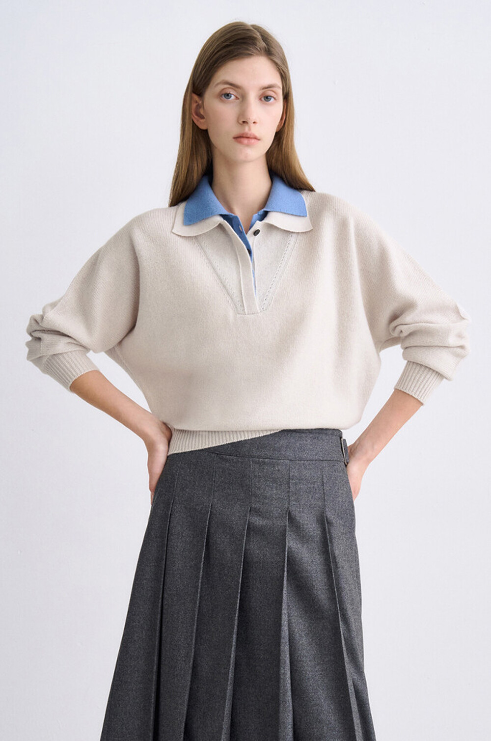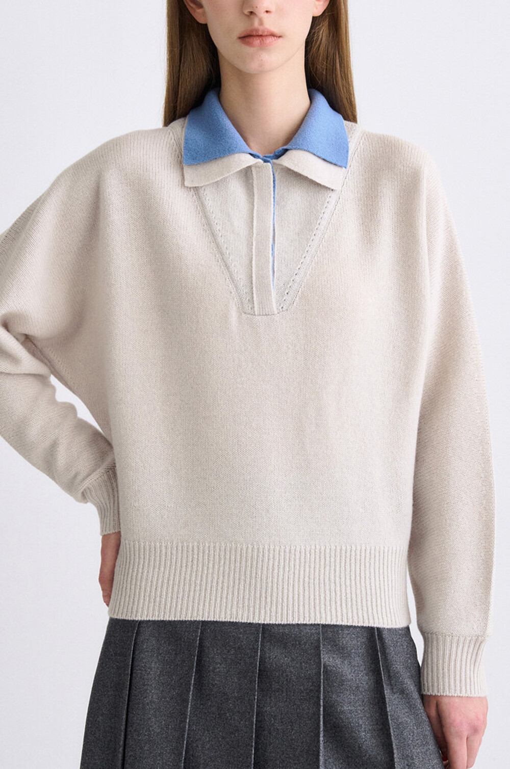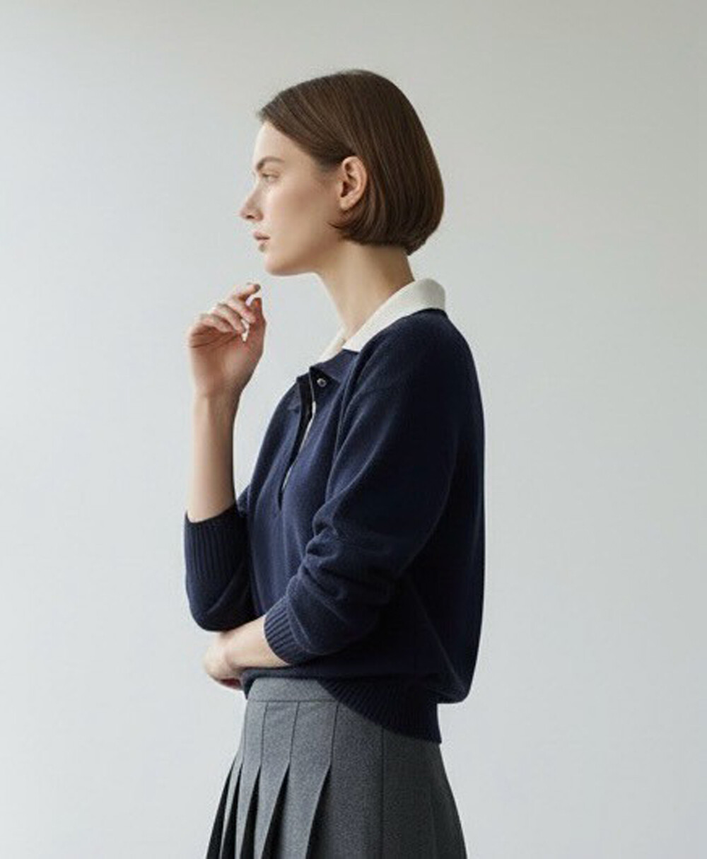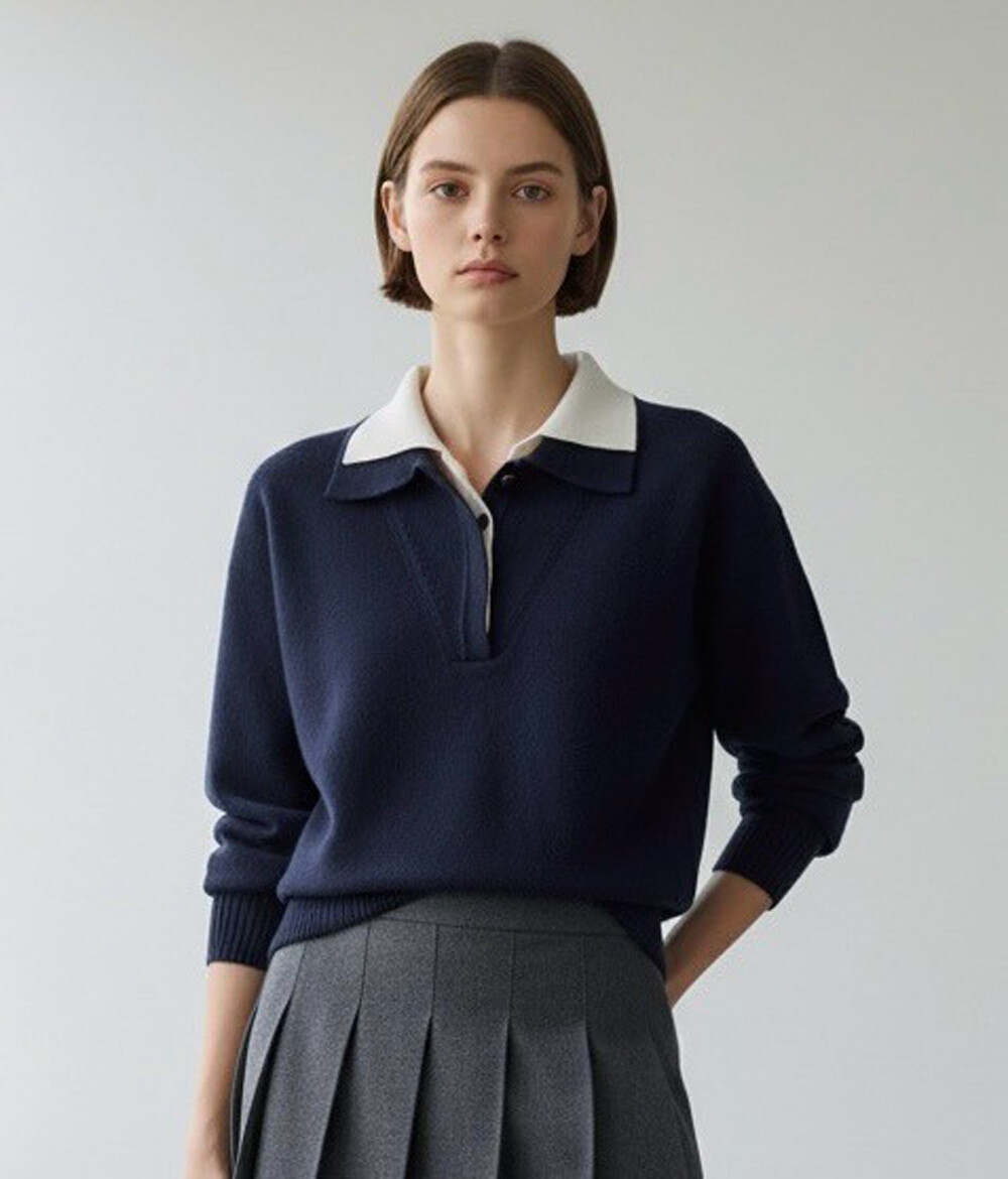 타임 캐시미어 블렌드 레이어 칼라 니트 탑