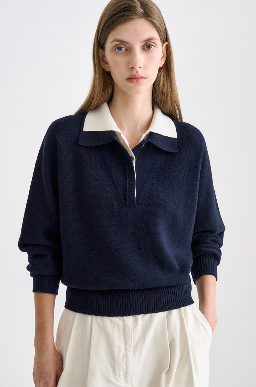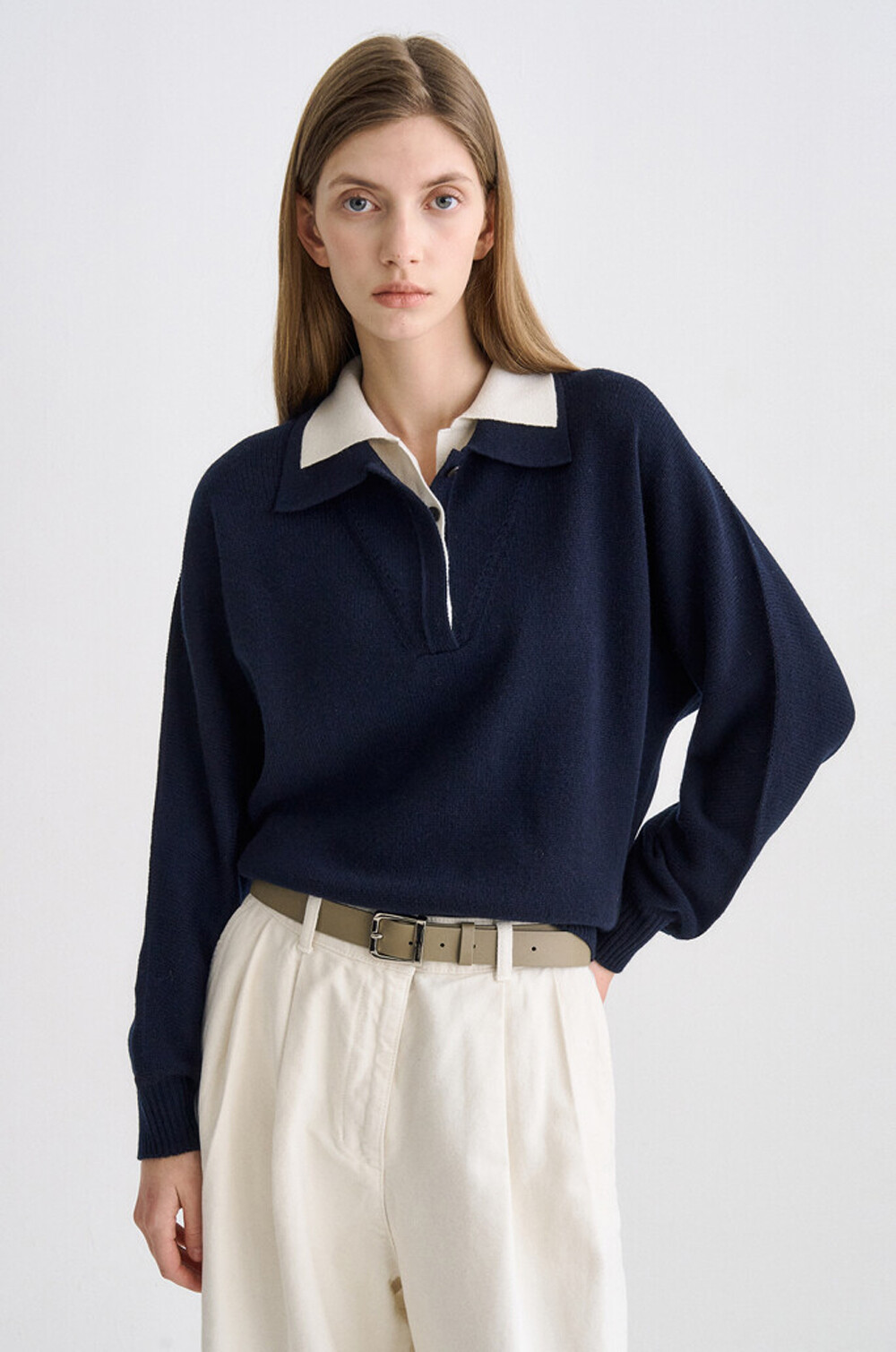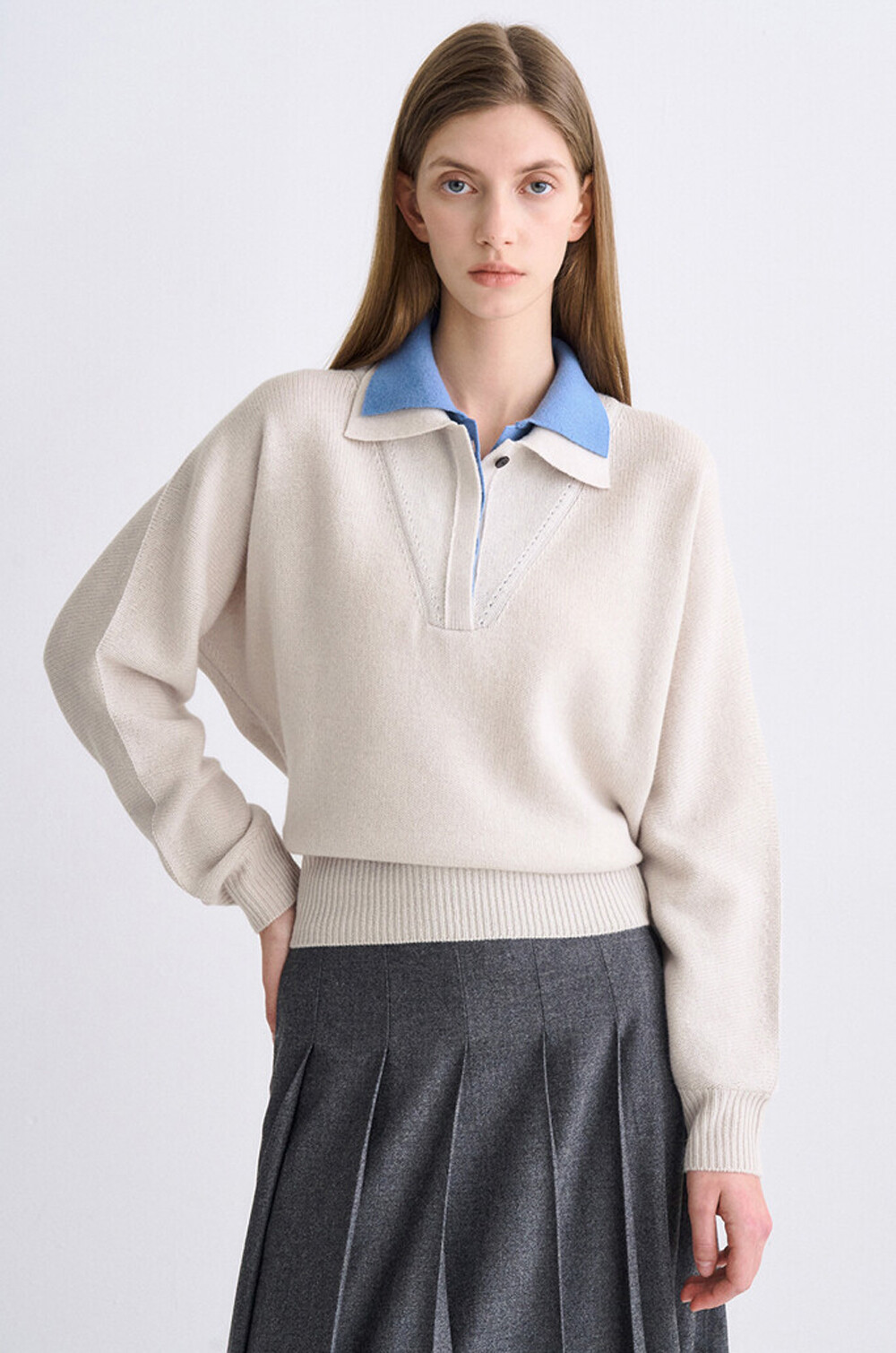 타임 캐시미어 블렌드 레이어 칼라 니트 탑