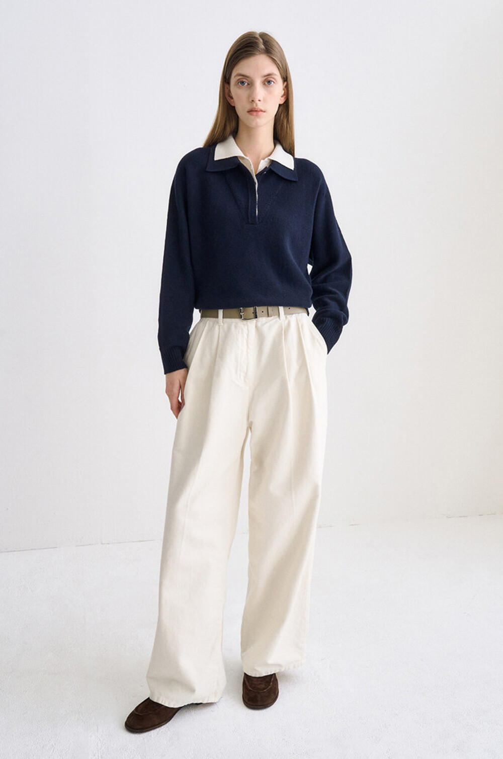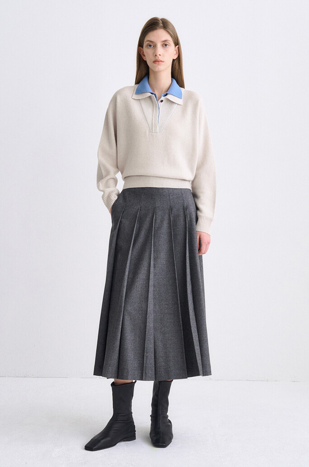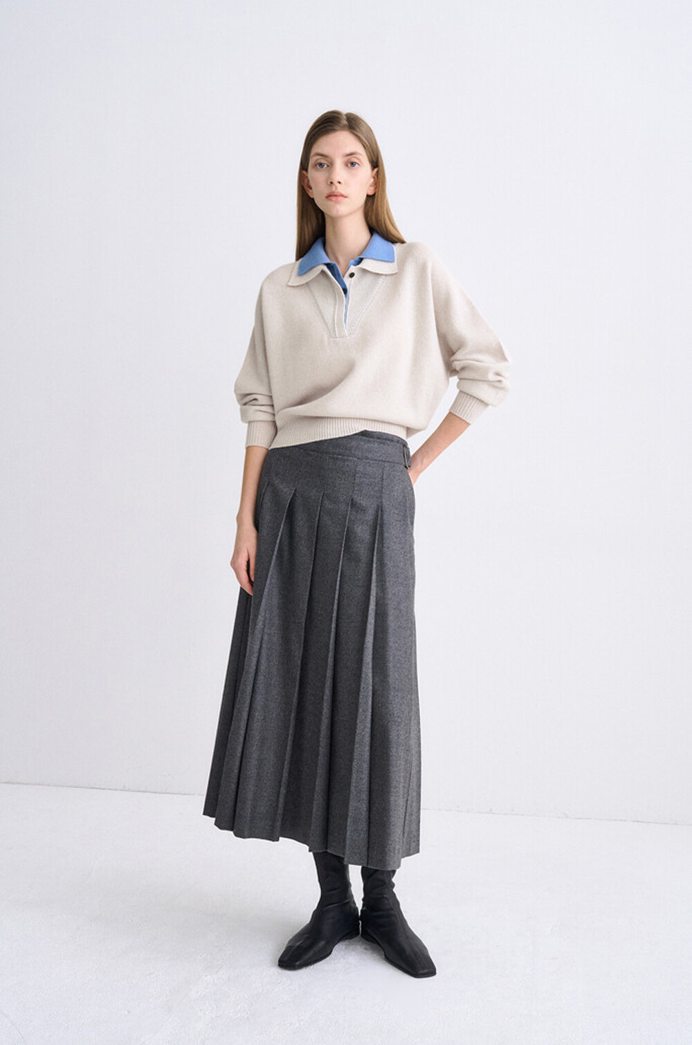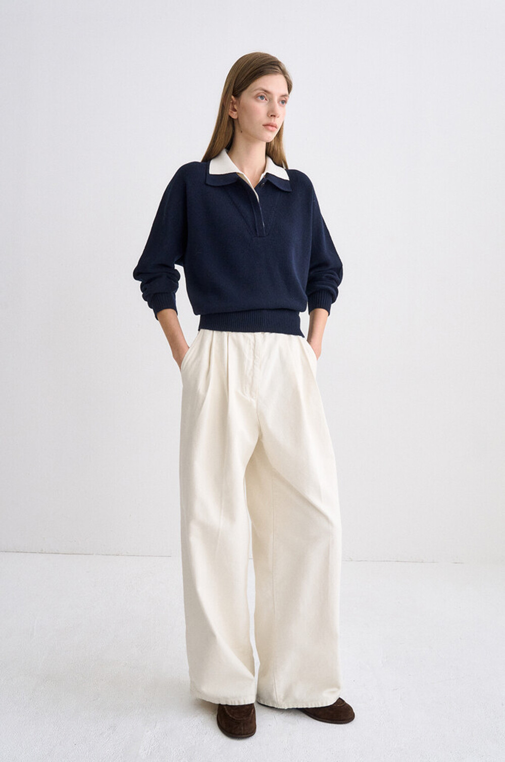 타임 캐시미어 블렌드 레이어 칼라 니트 탑