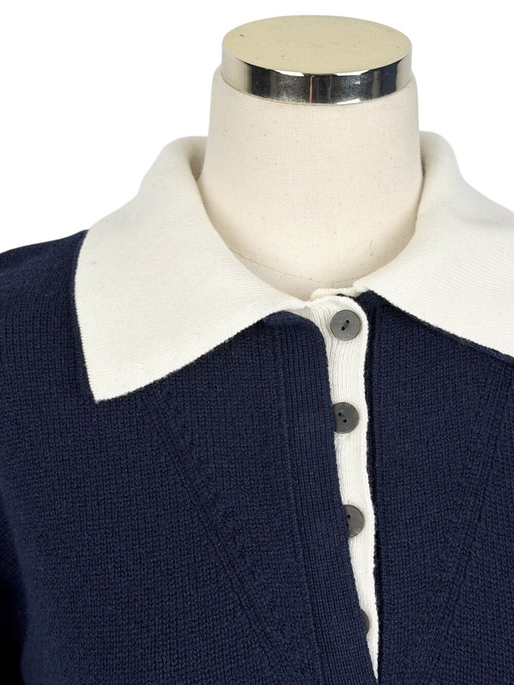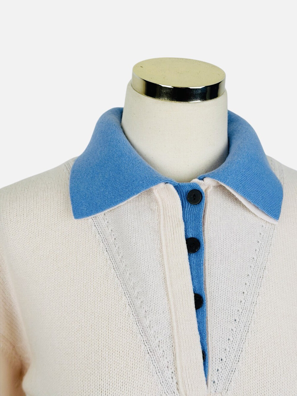 버튼 클로징 넥라인과 배색 이중 칼라,
