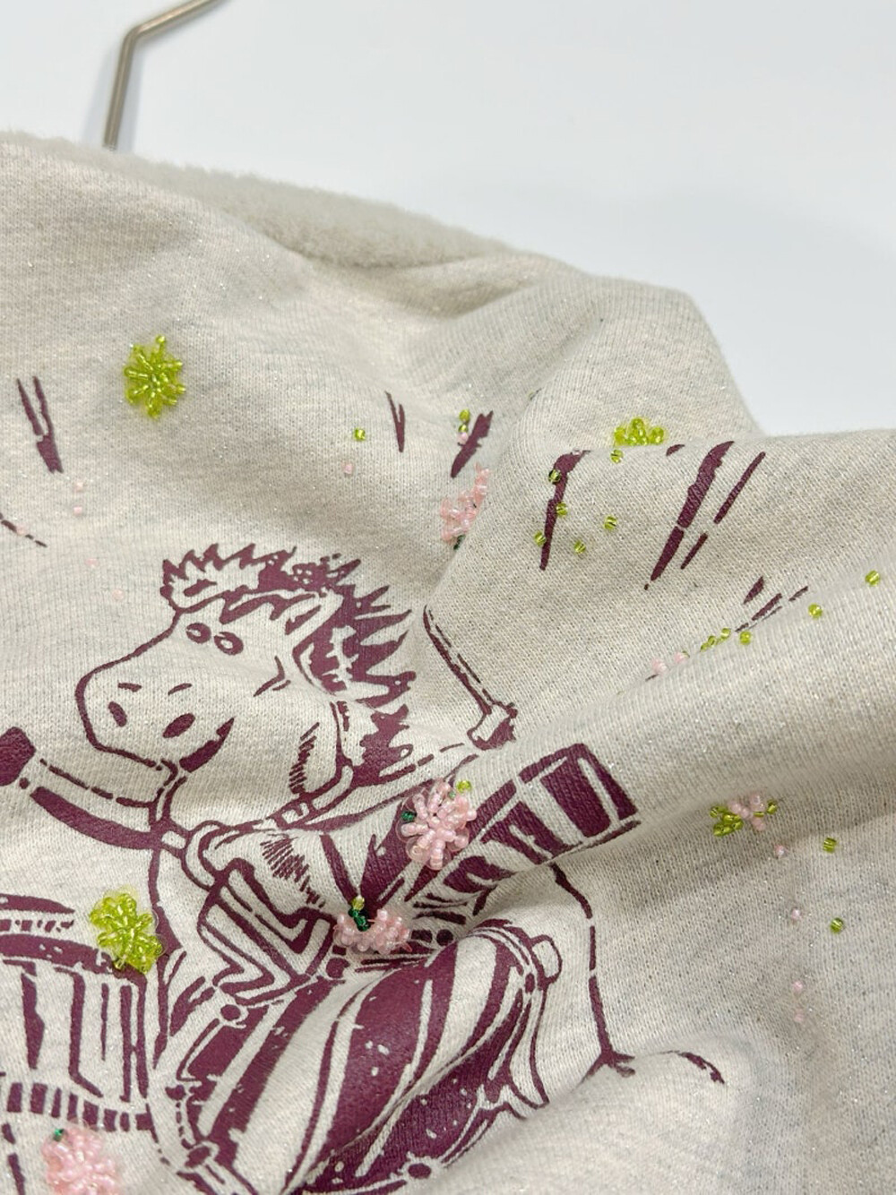 - 앞면에 벨벳 플로킹 그래픽과 비즈 장식