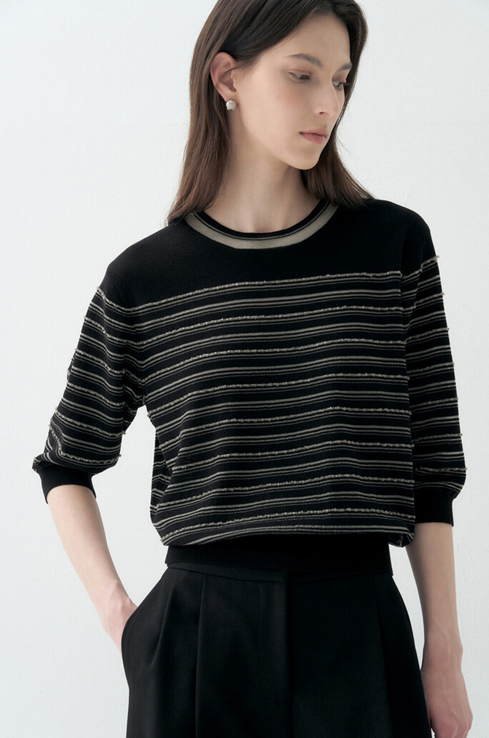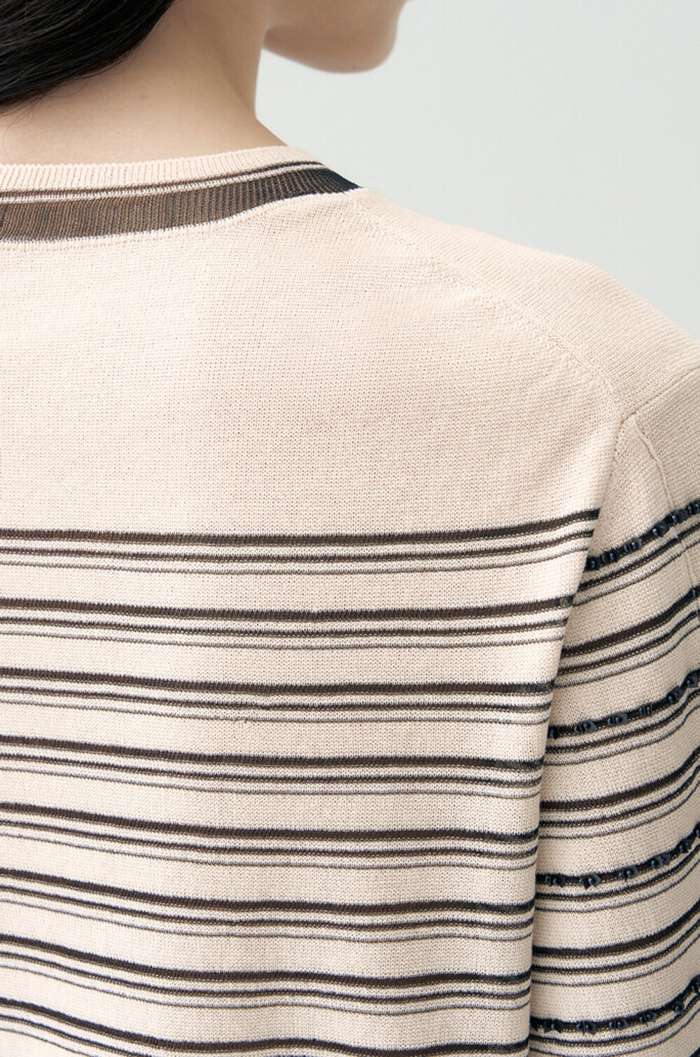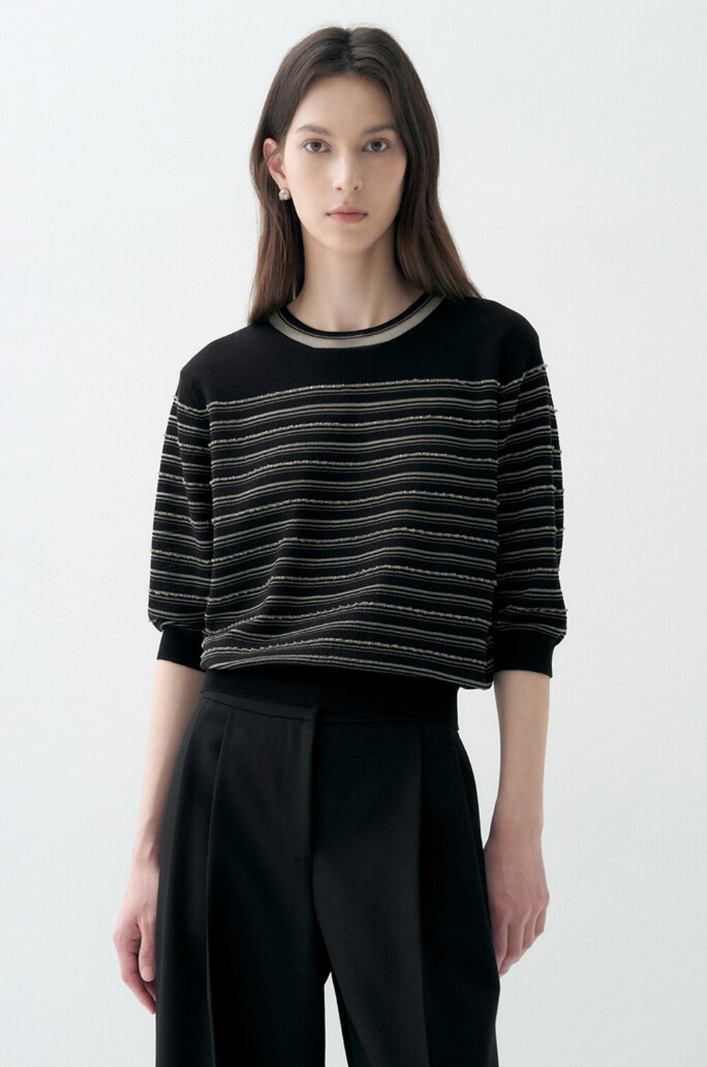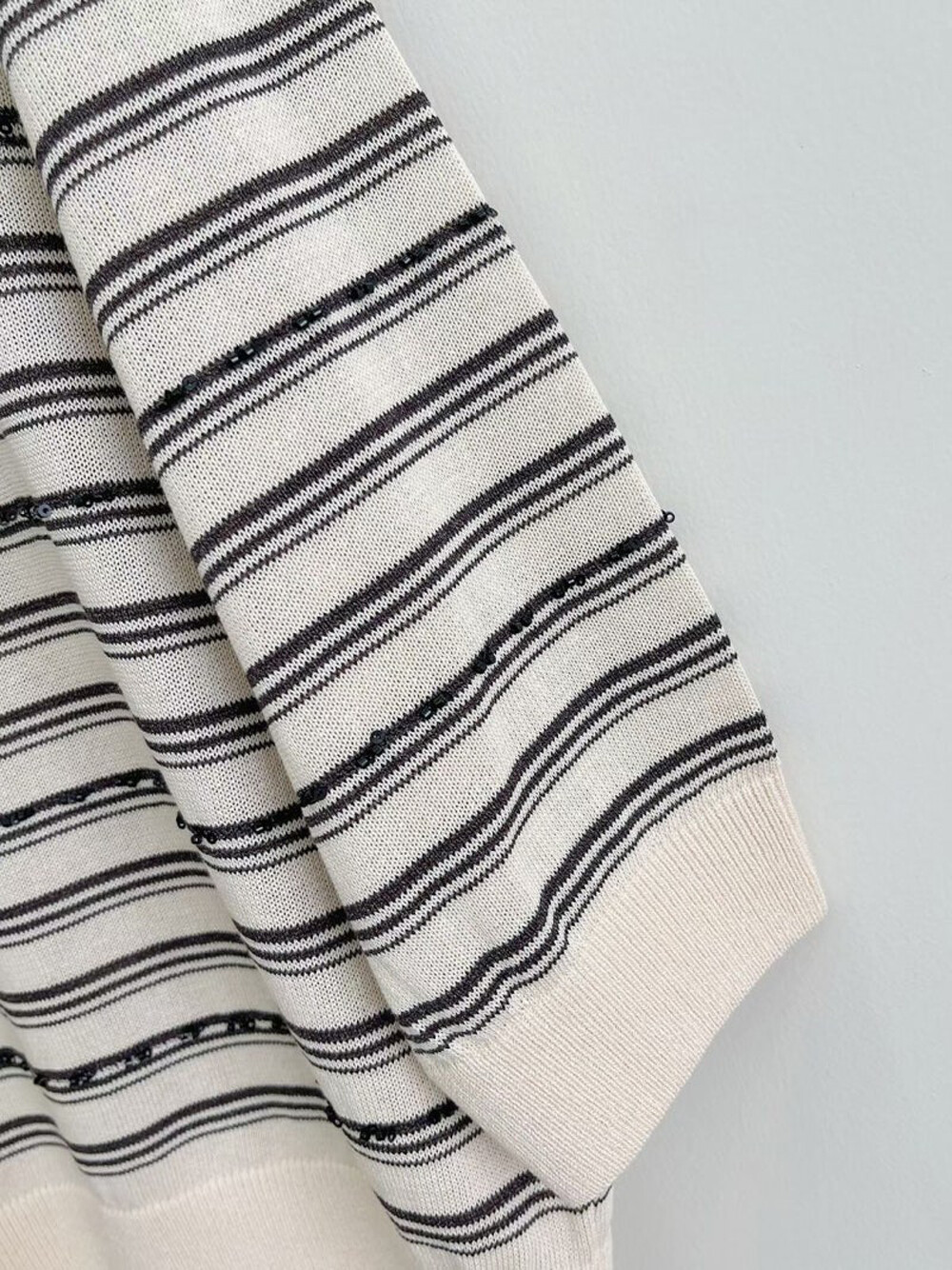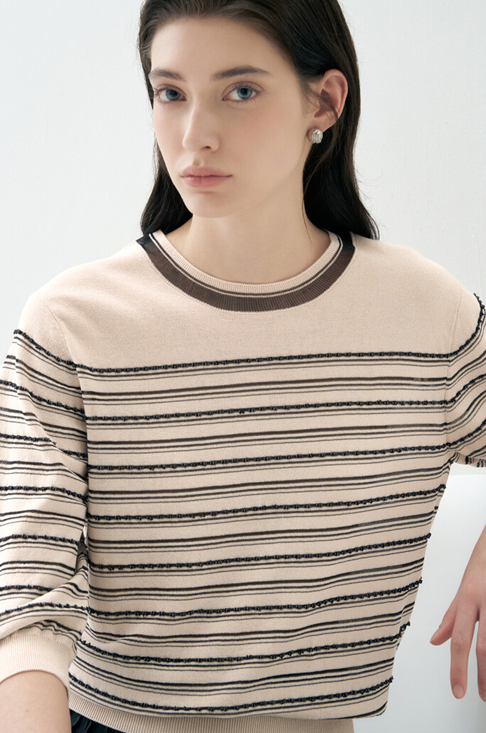랑방컬렉션 비즈 & 시스루 스트라이프 니트 탑