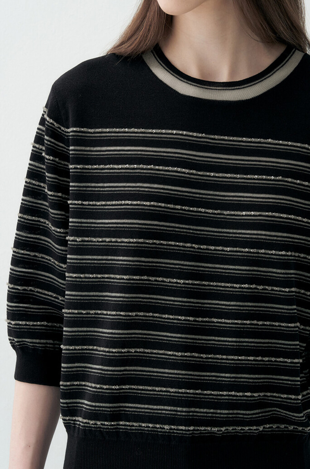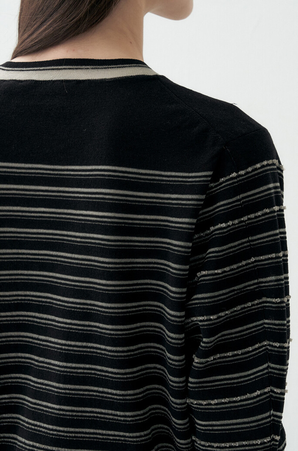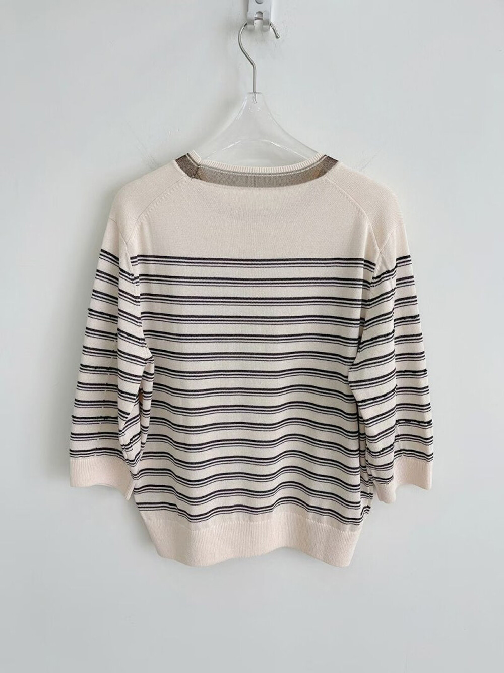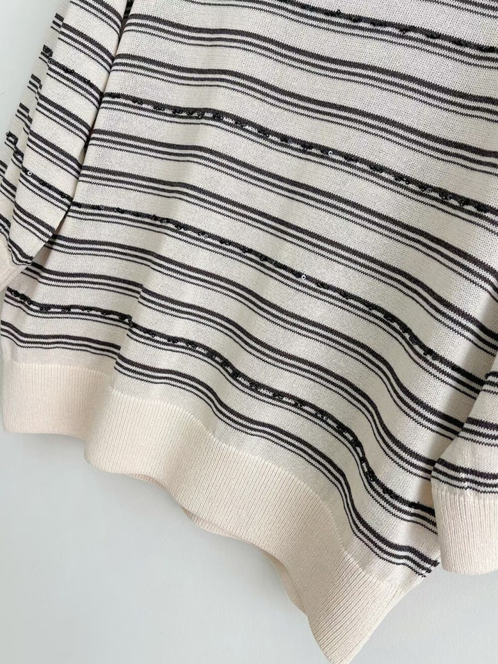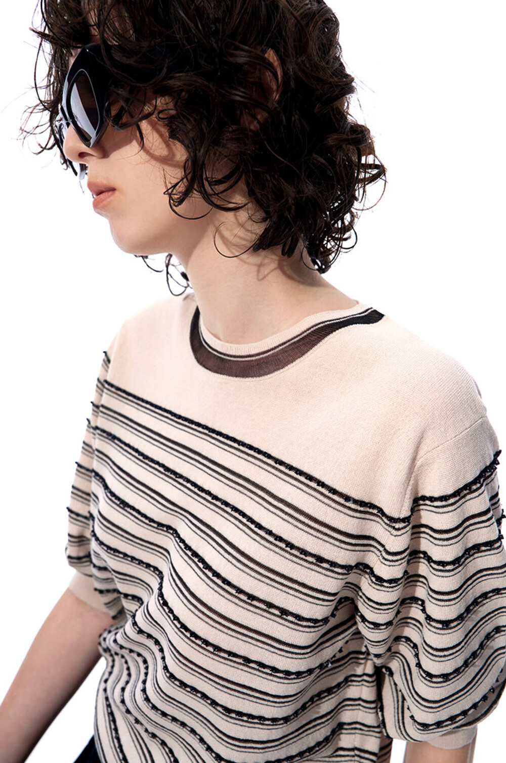 랑방컬렉션 비즈 & 시스루 스트라이프 니트 탑