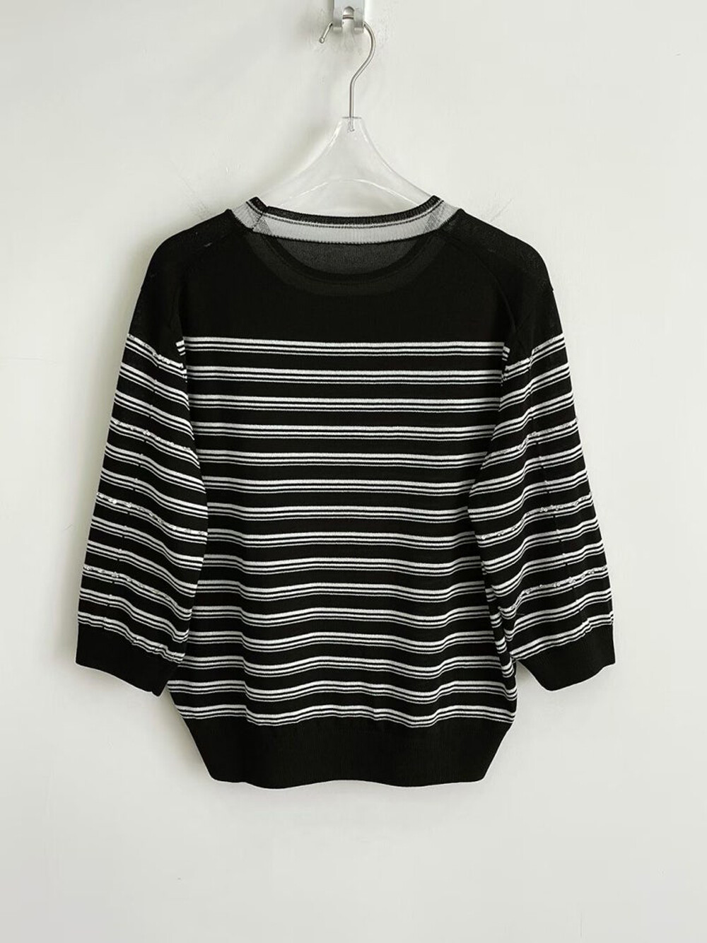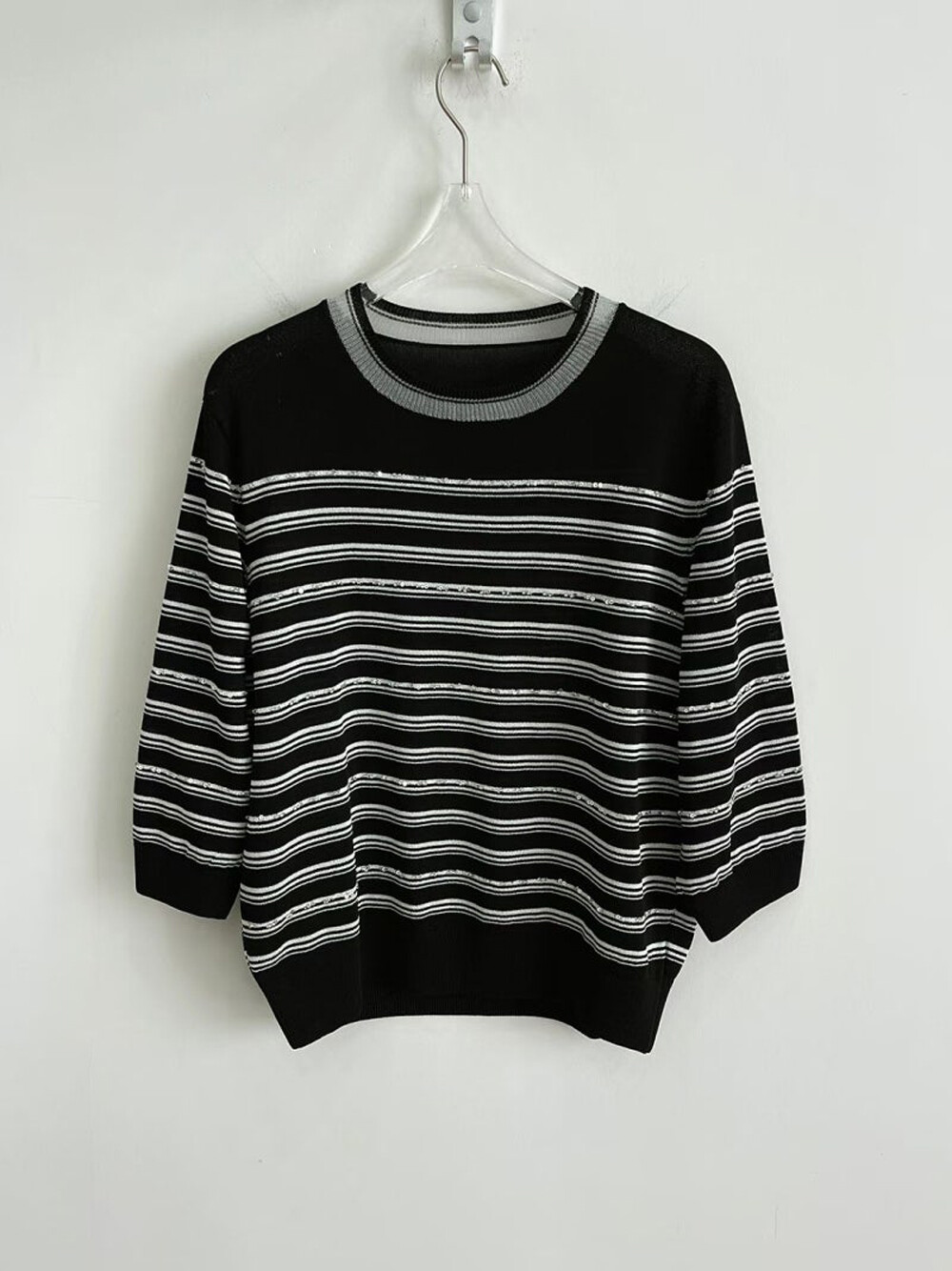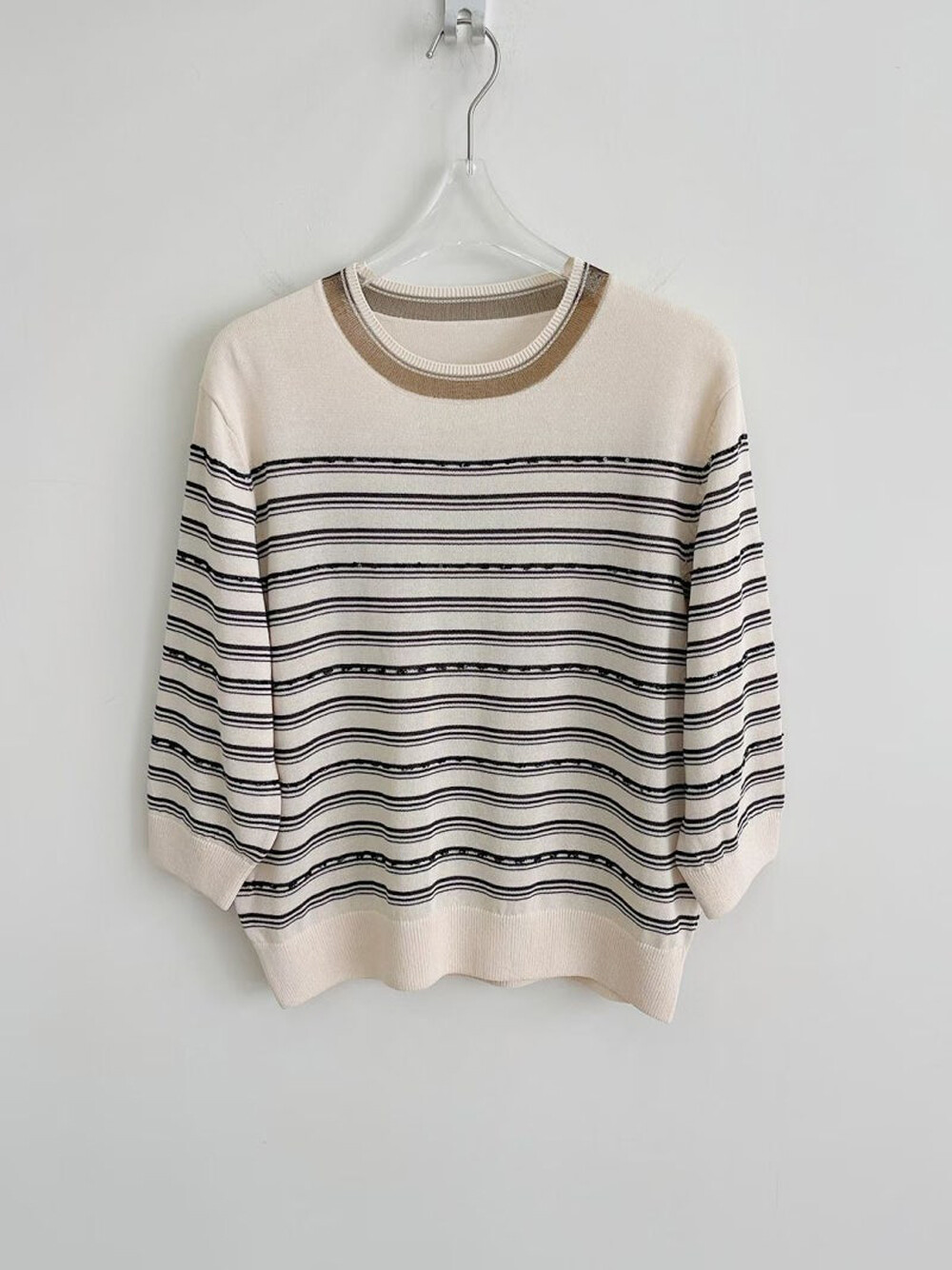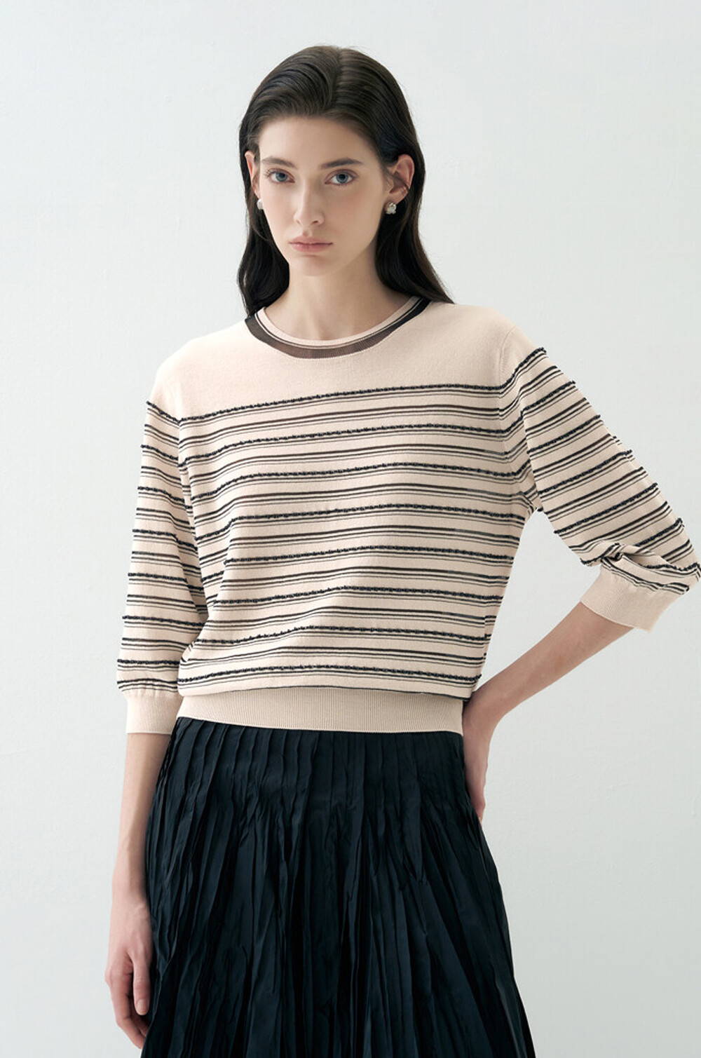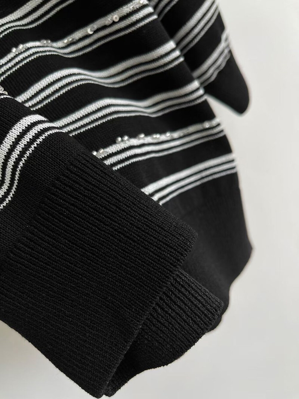 랑방컬렉션 비즈 & 시스루 스트라이프 니트 탑