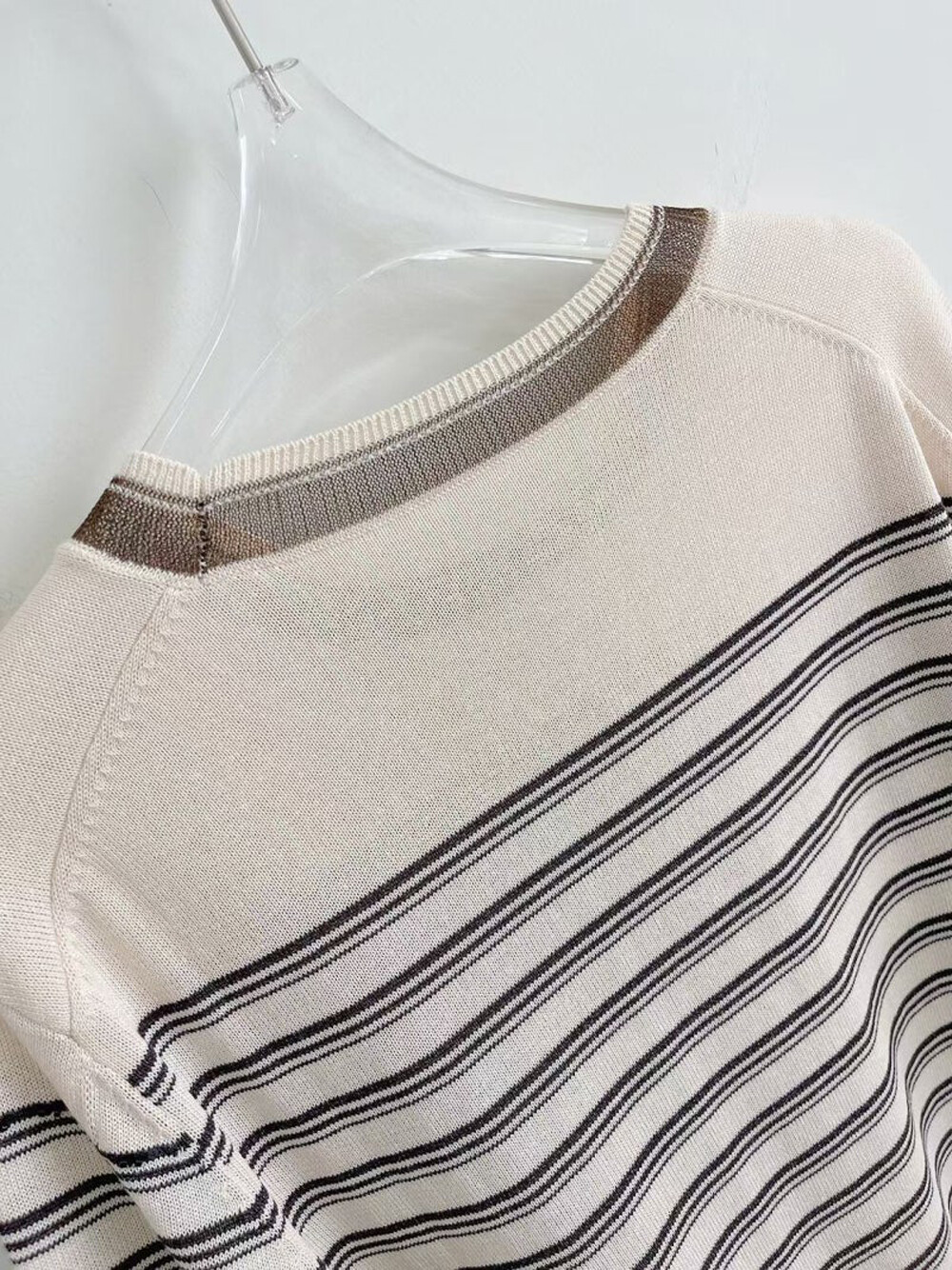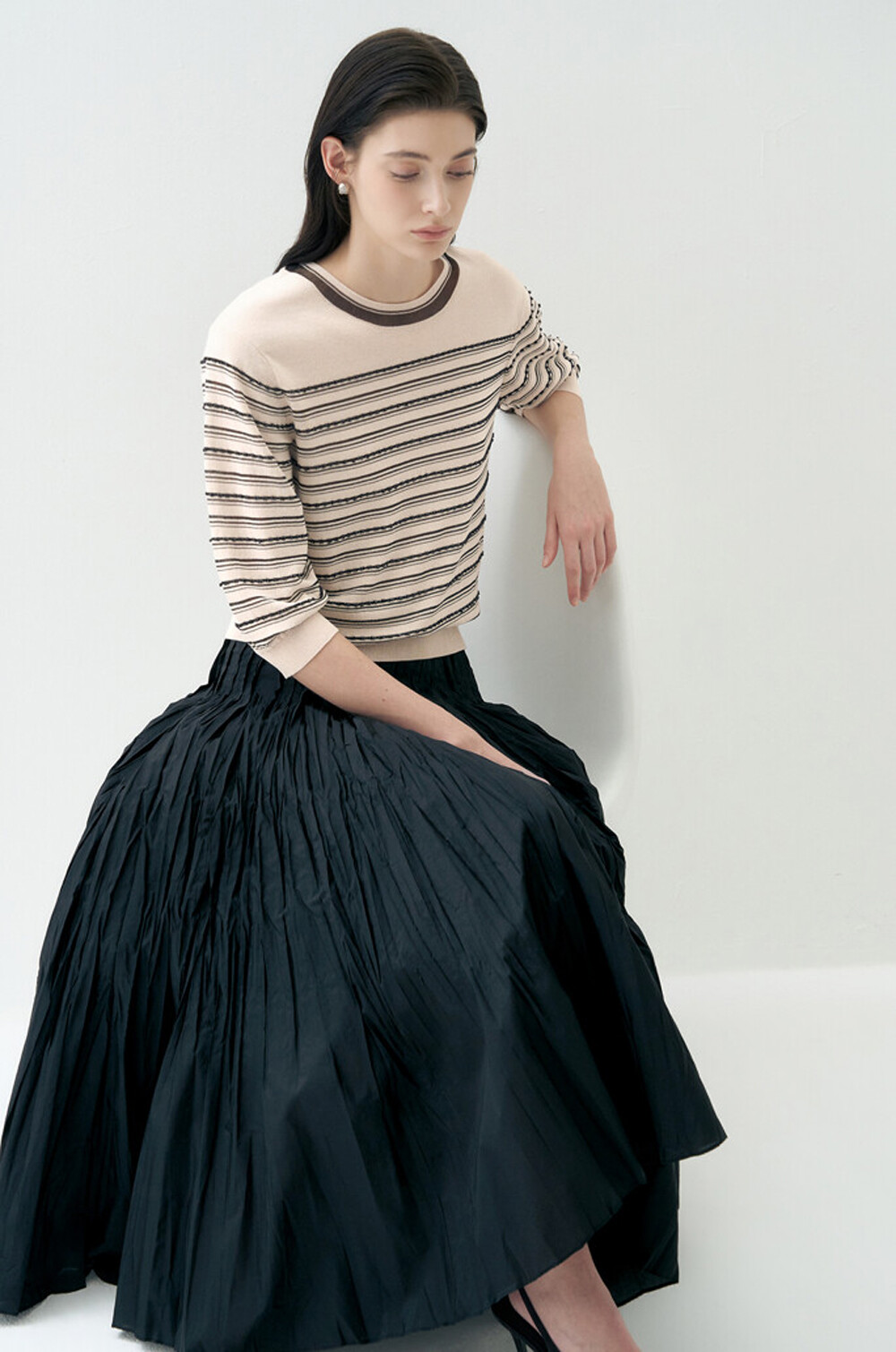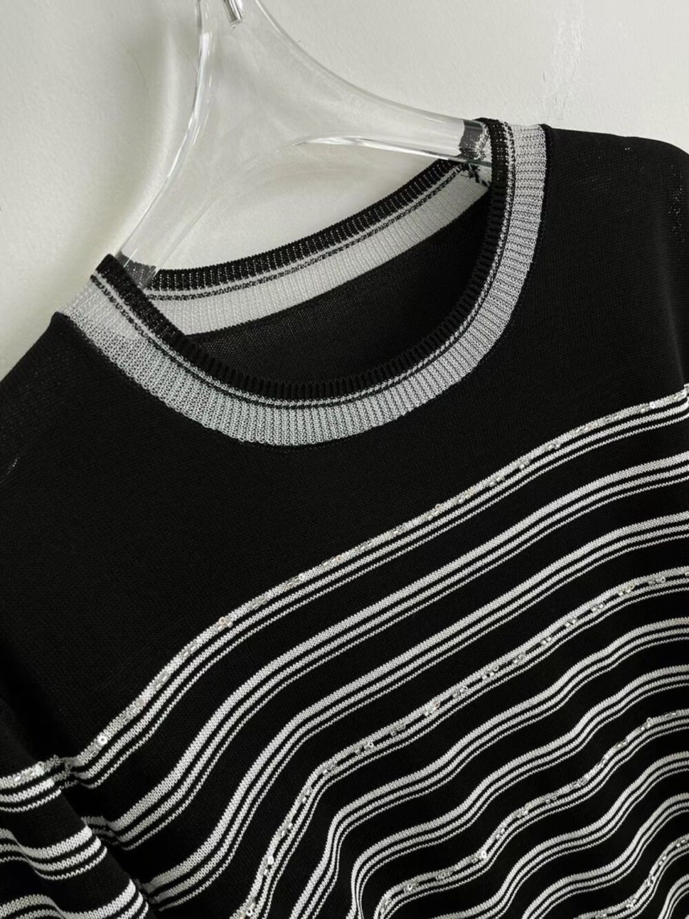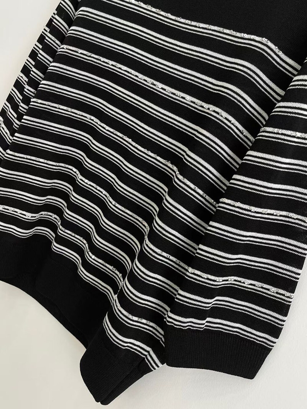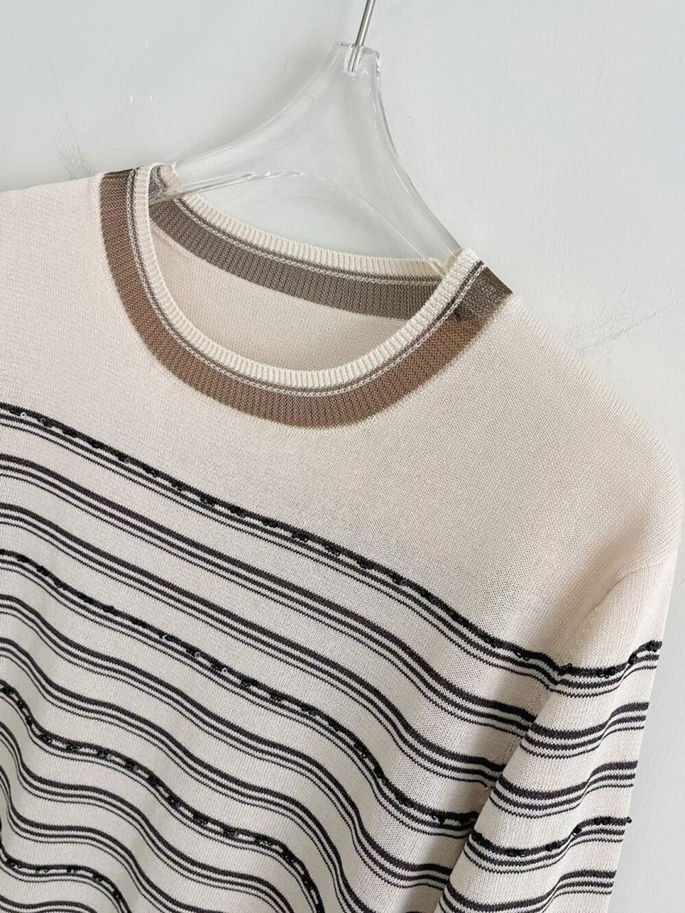 랑방컬렉션 비즈 & 시스루 스트라이프 니트 탑