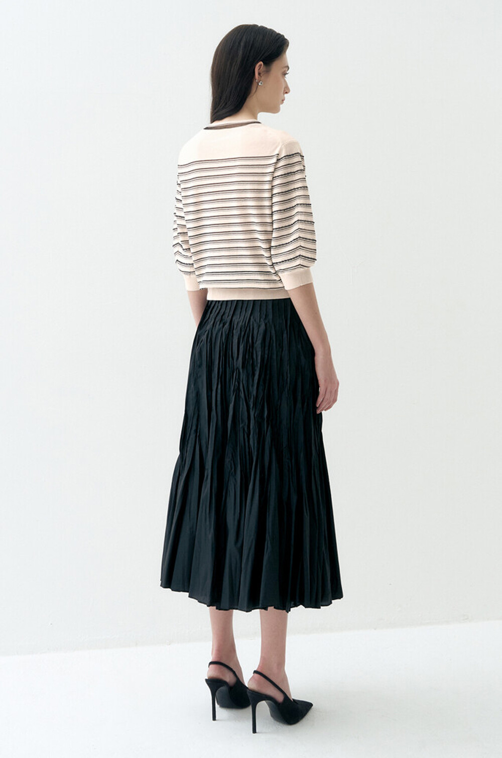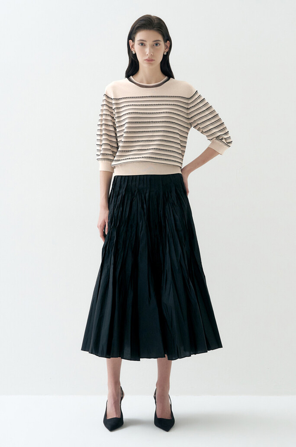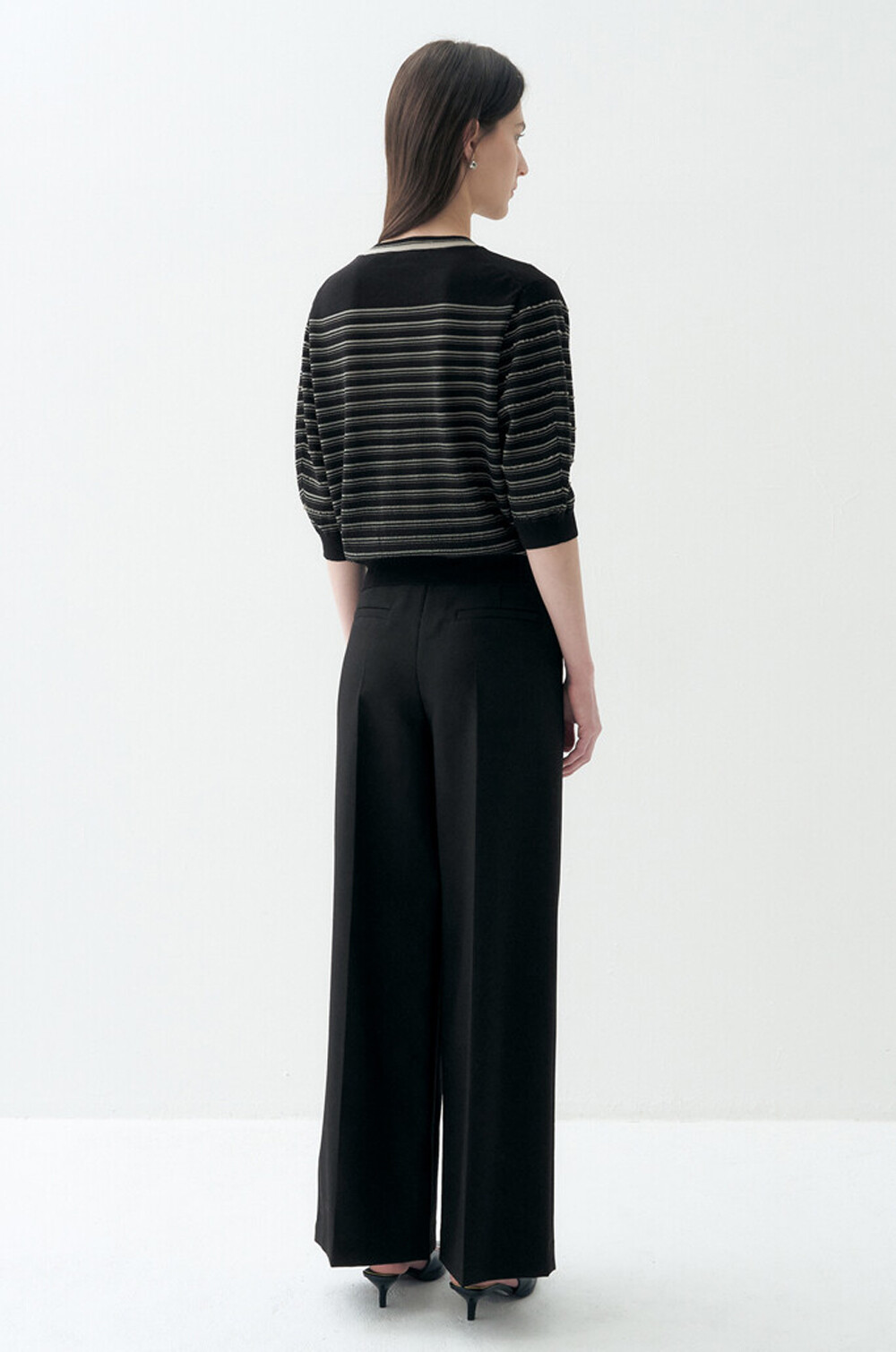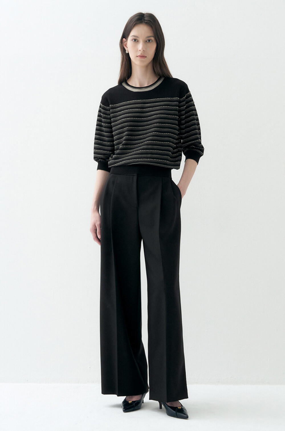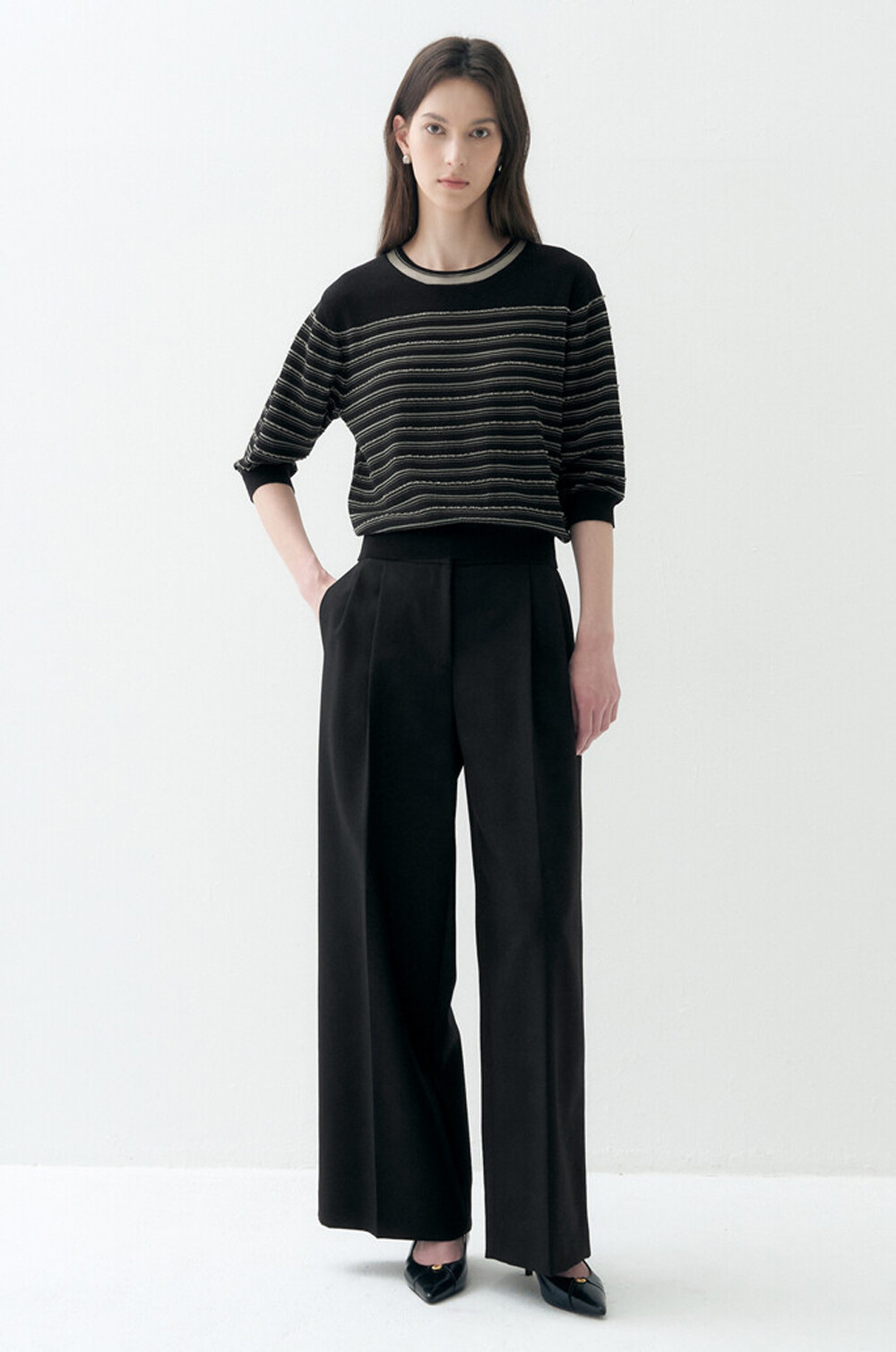 랑방컬렉션 비즈 & 시스루 스트라이프 니트 탑