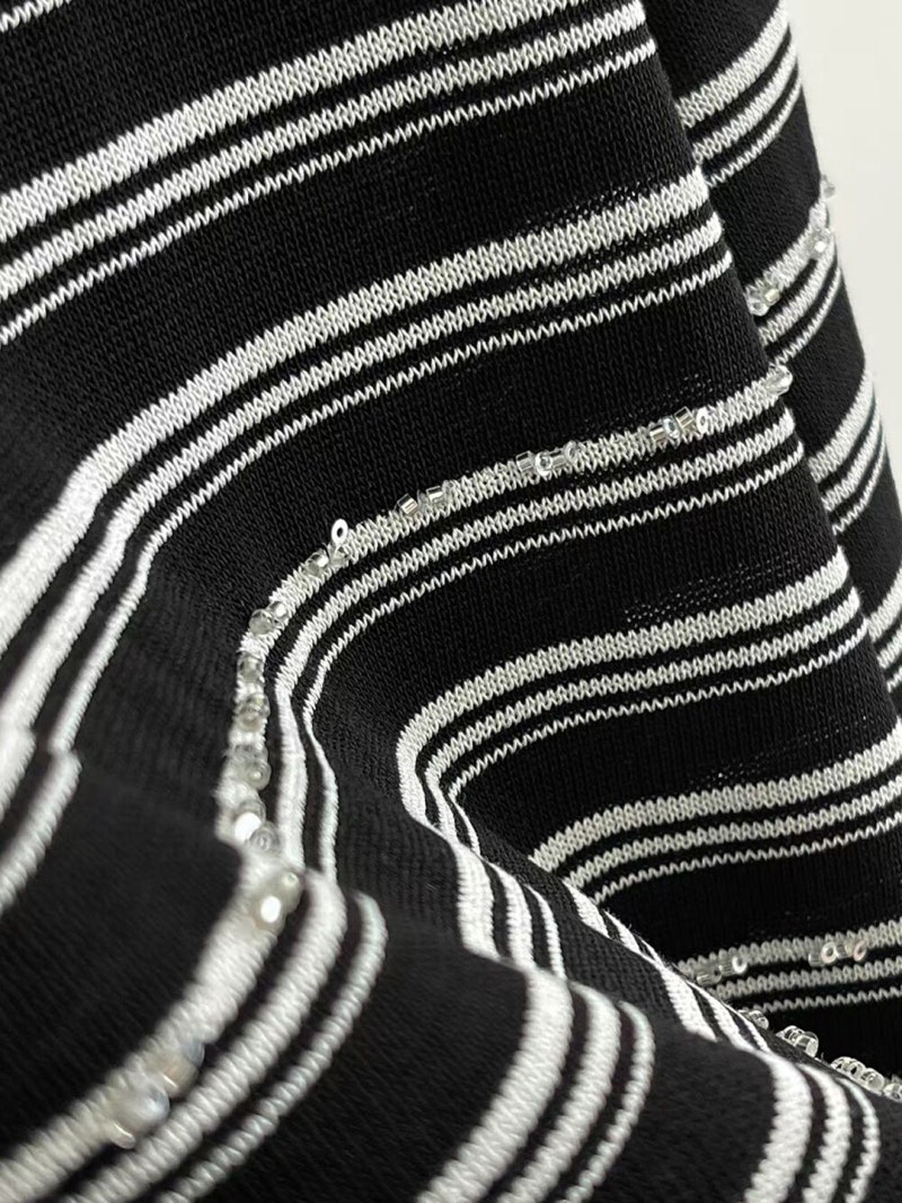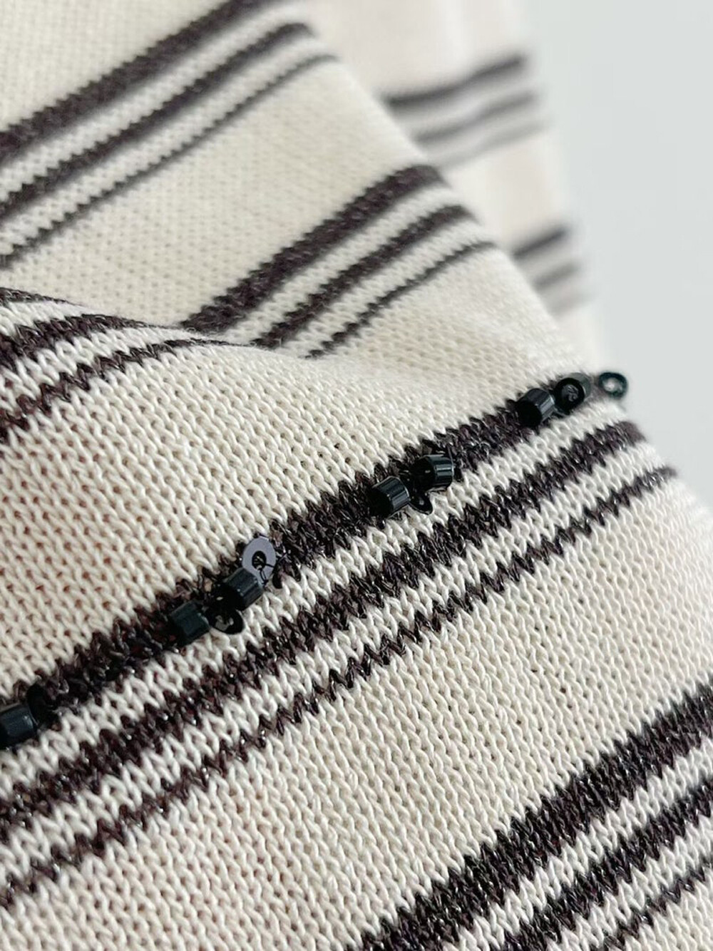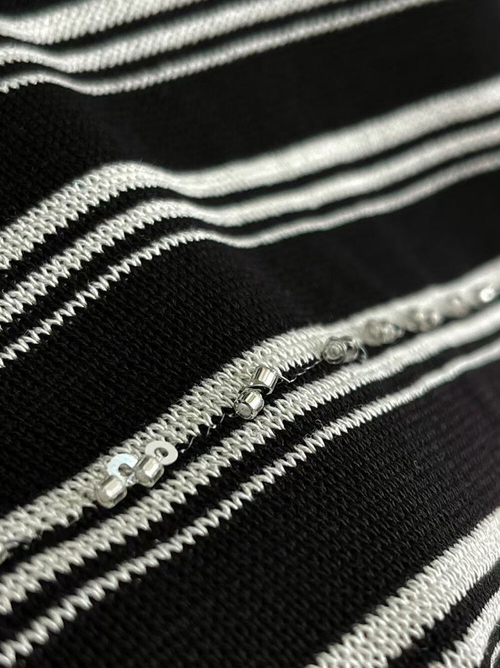 - 전체적으로 비즈와 시스루 텍스처가 어우러진 스트라이프 패턴