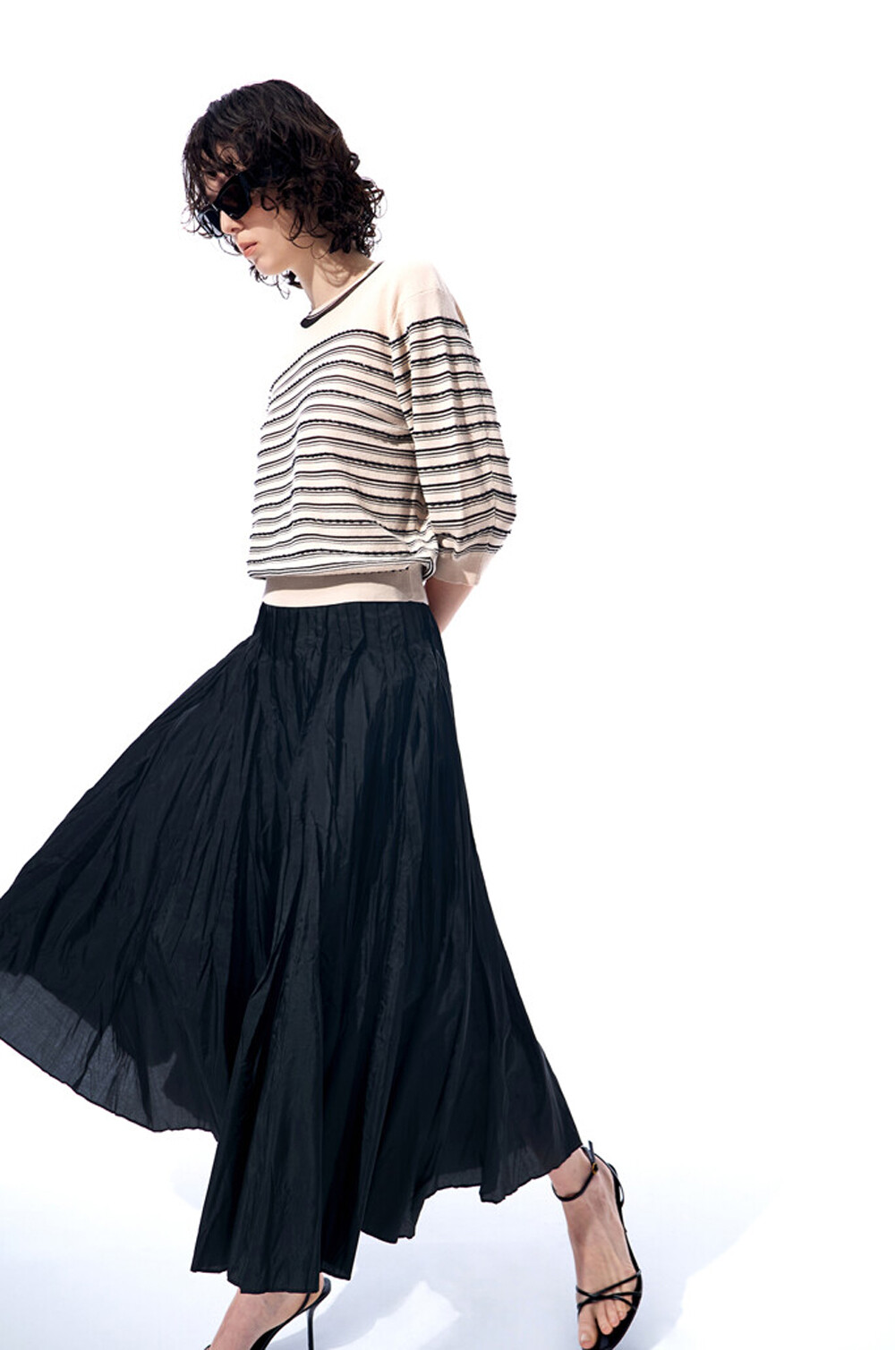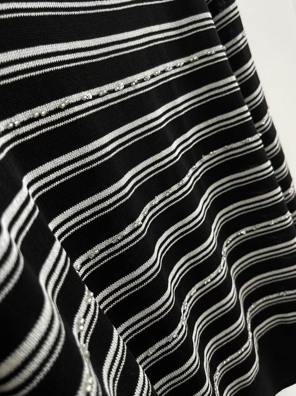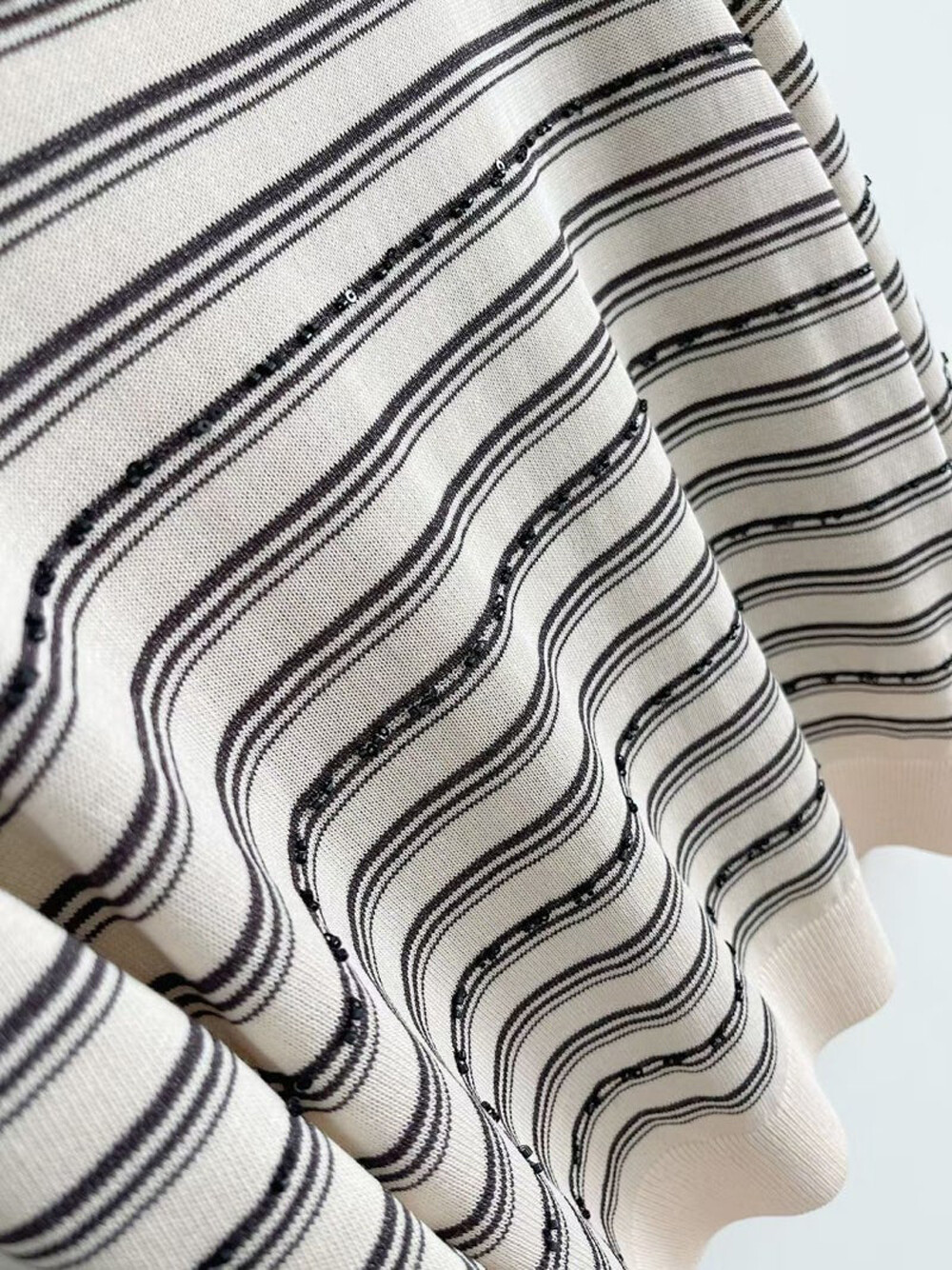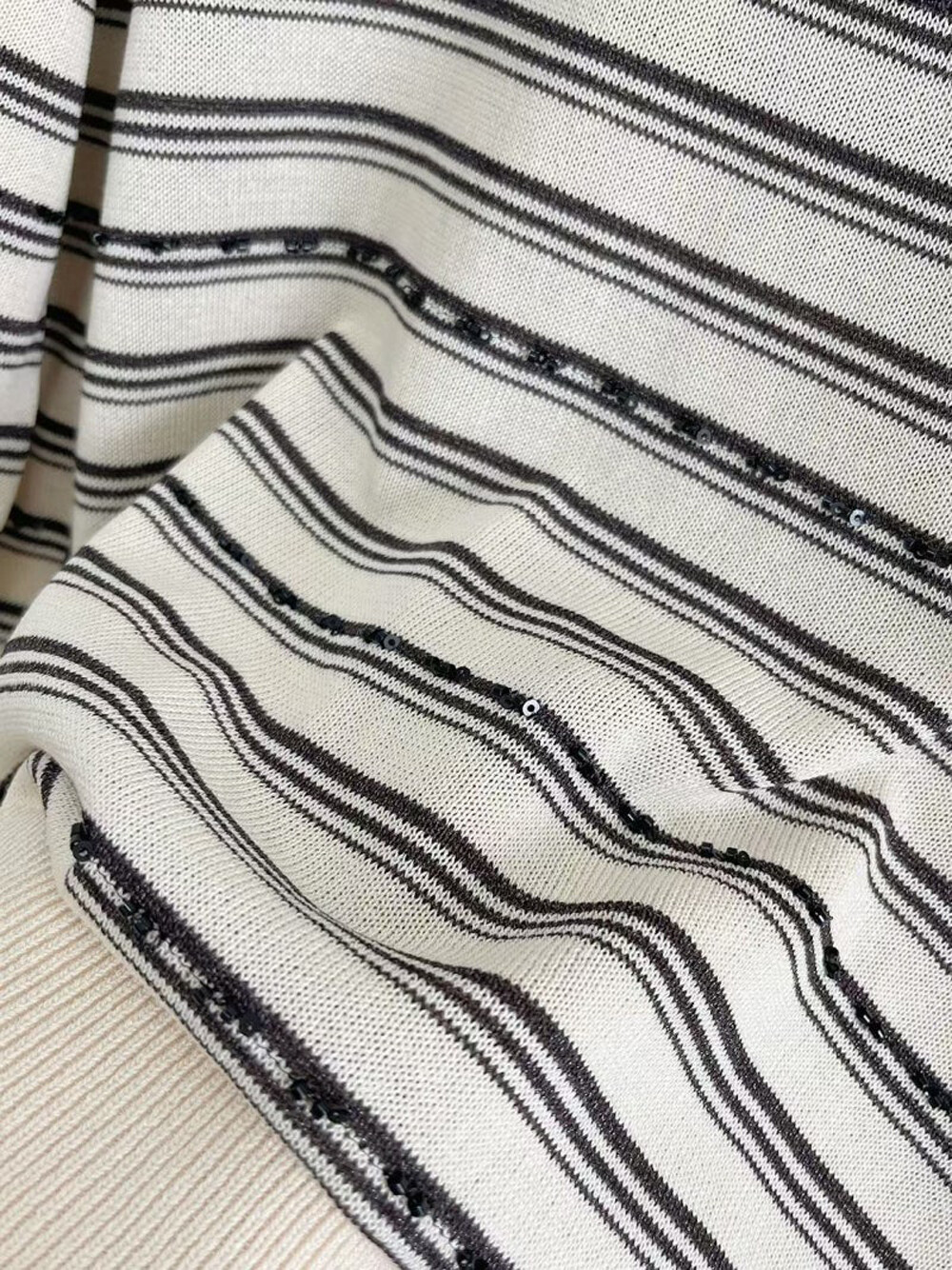 - 전체적으로 비즈와 시스루 텍스처가 어우러진 스트라이프 패턴