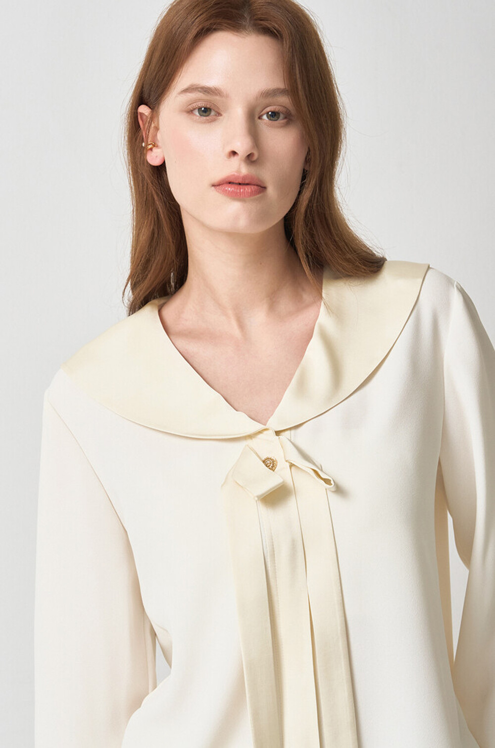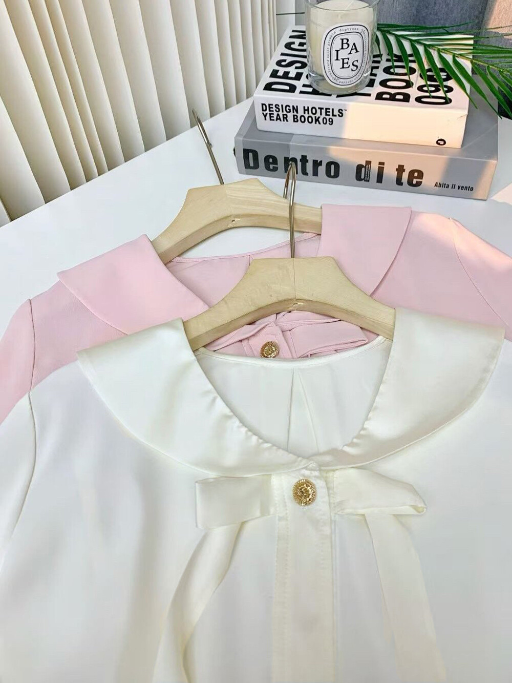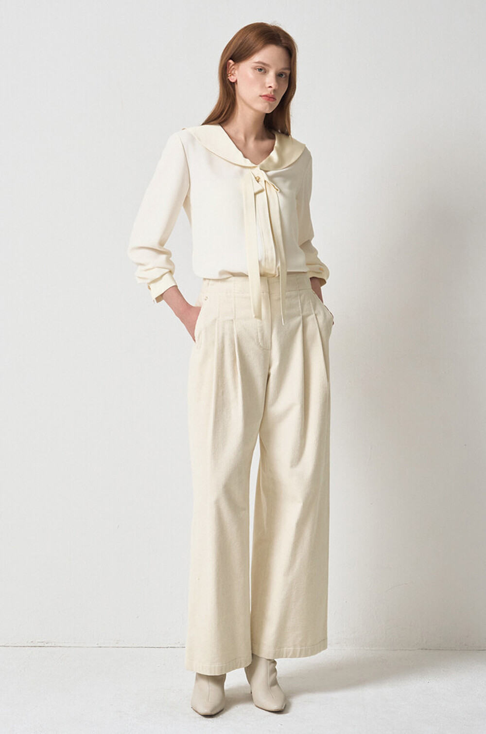 - 넥라인 상단에 메탈 버튼과 하단의 히든 버튼 클로징