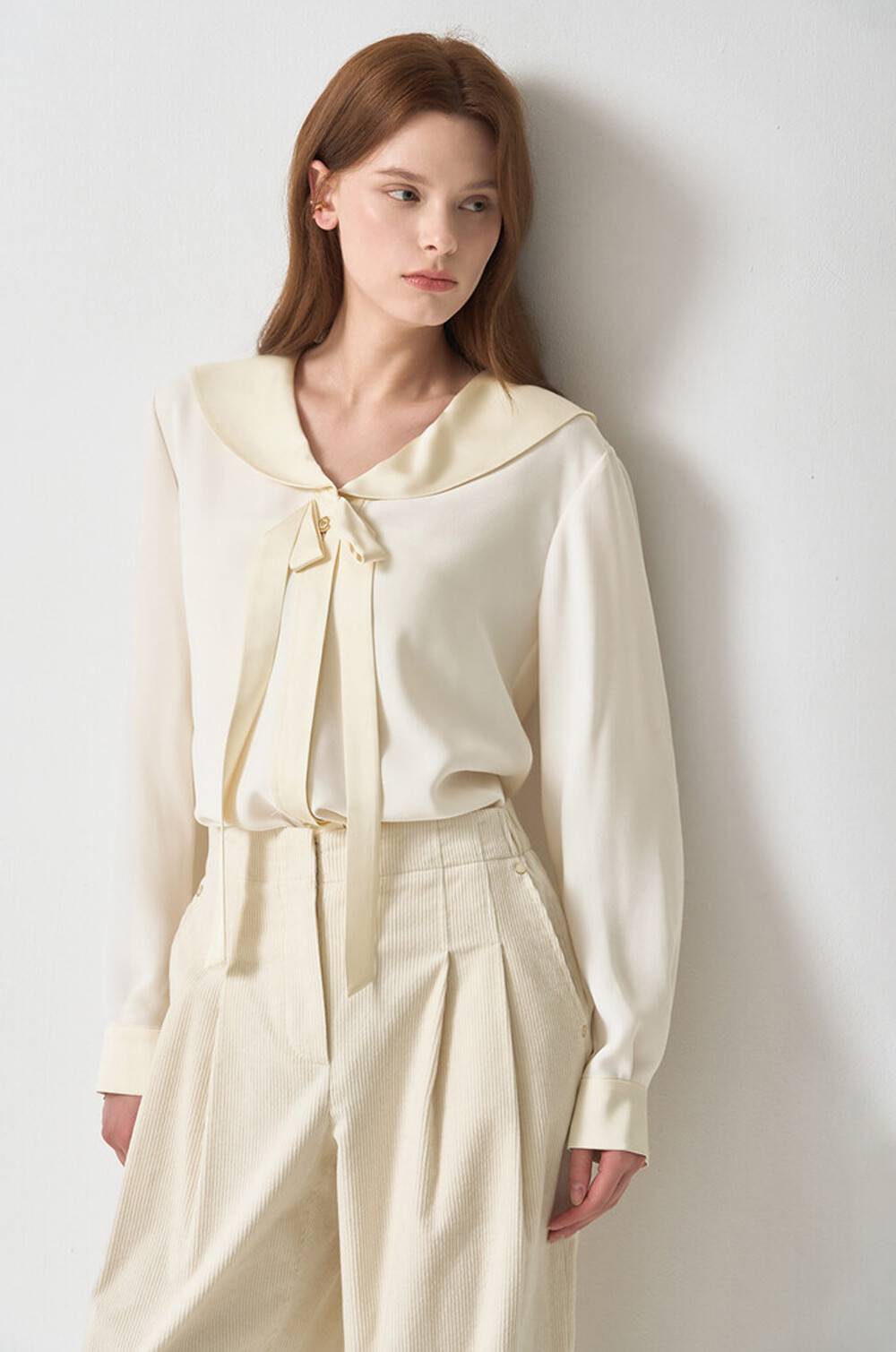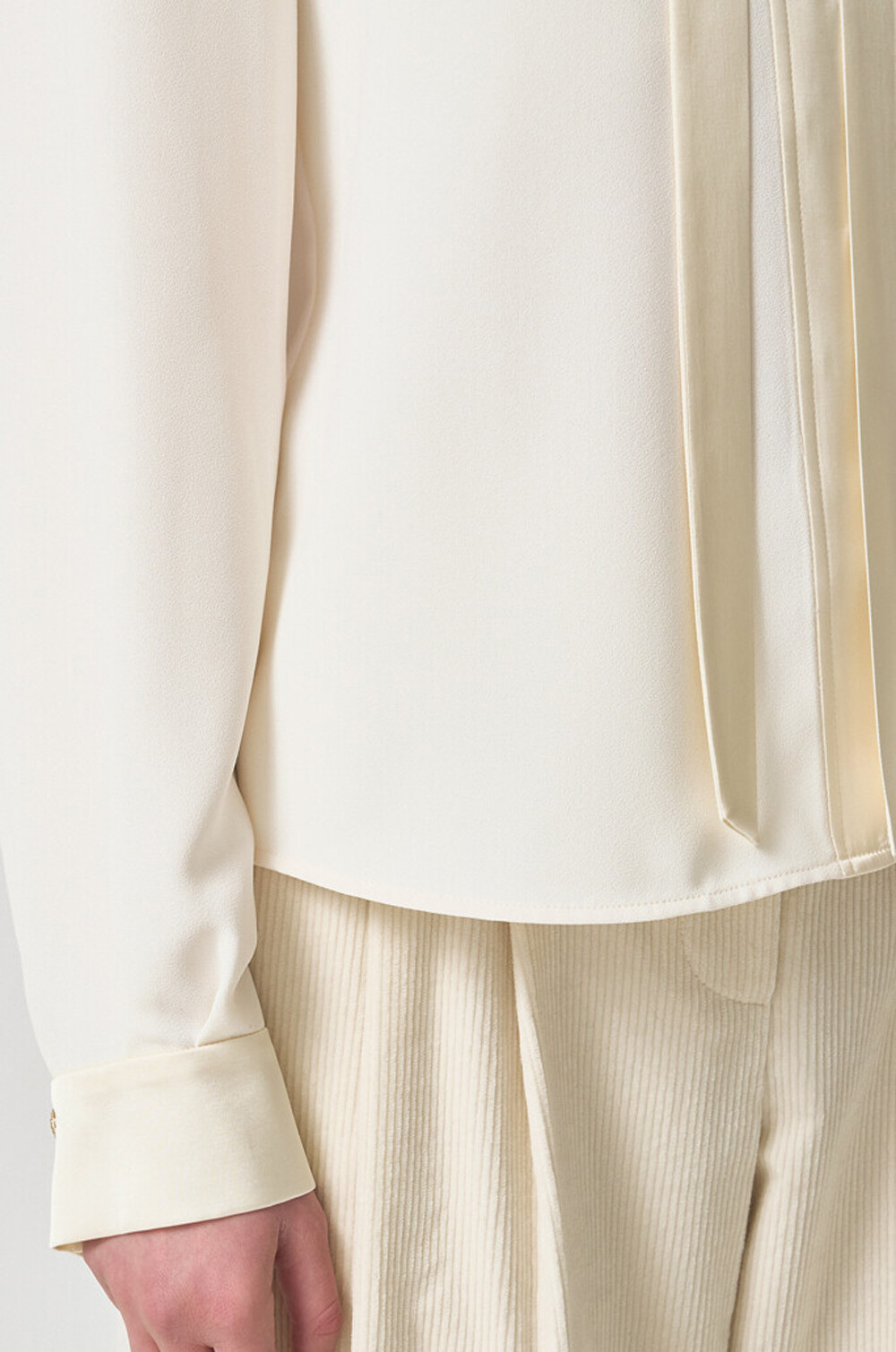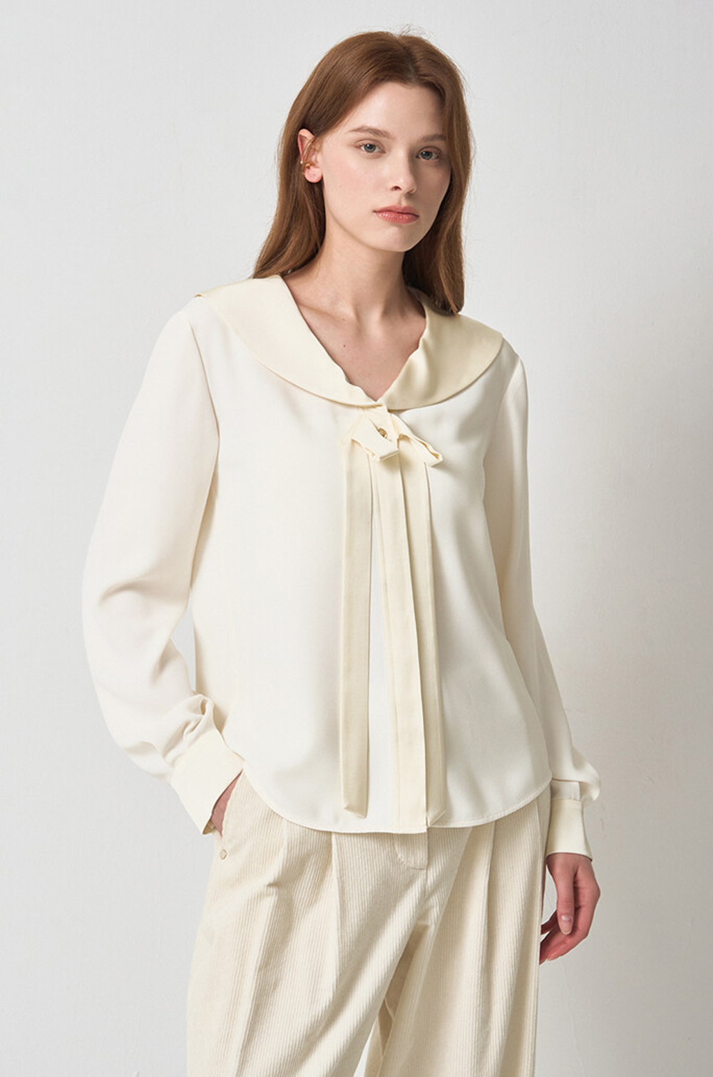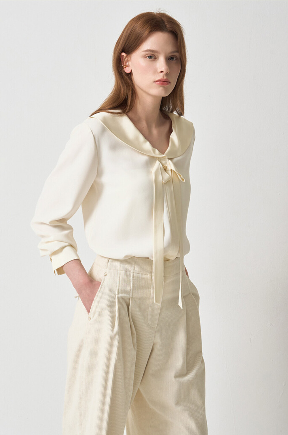 - 넥라인 상단에 메탈 버튼과 하단의 히든 버튼 클로징