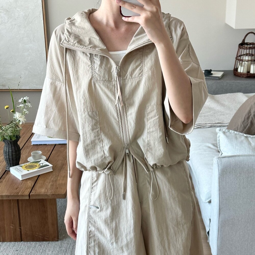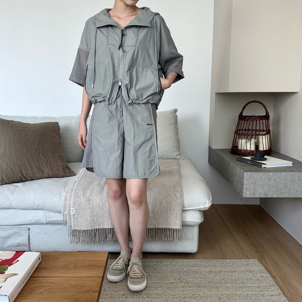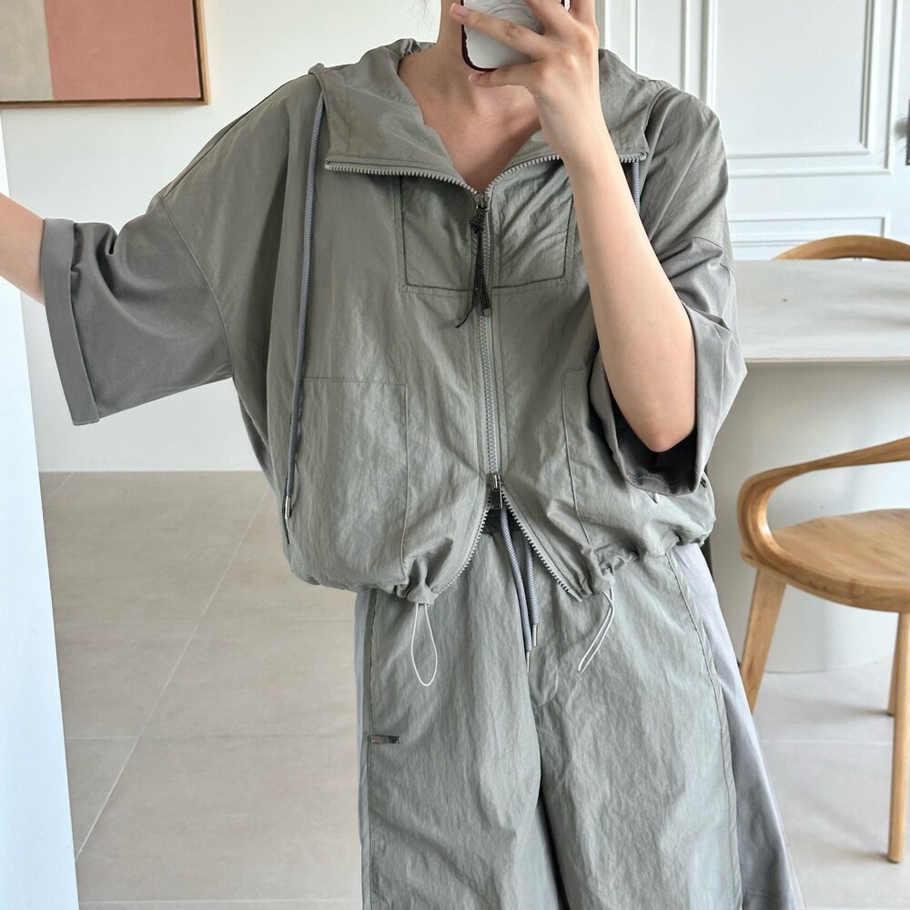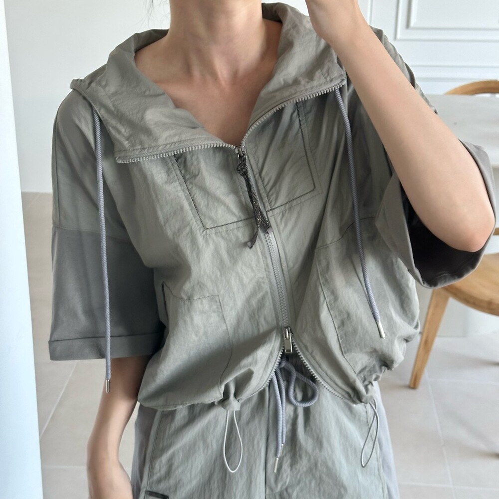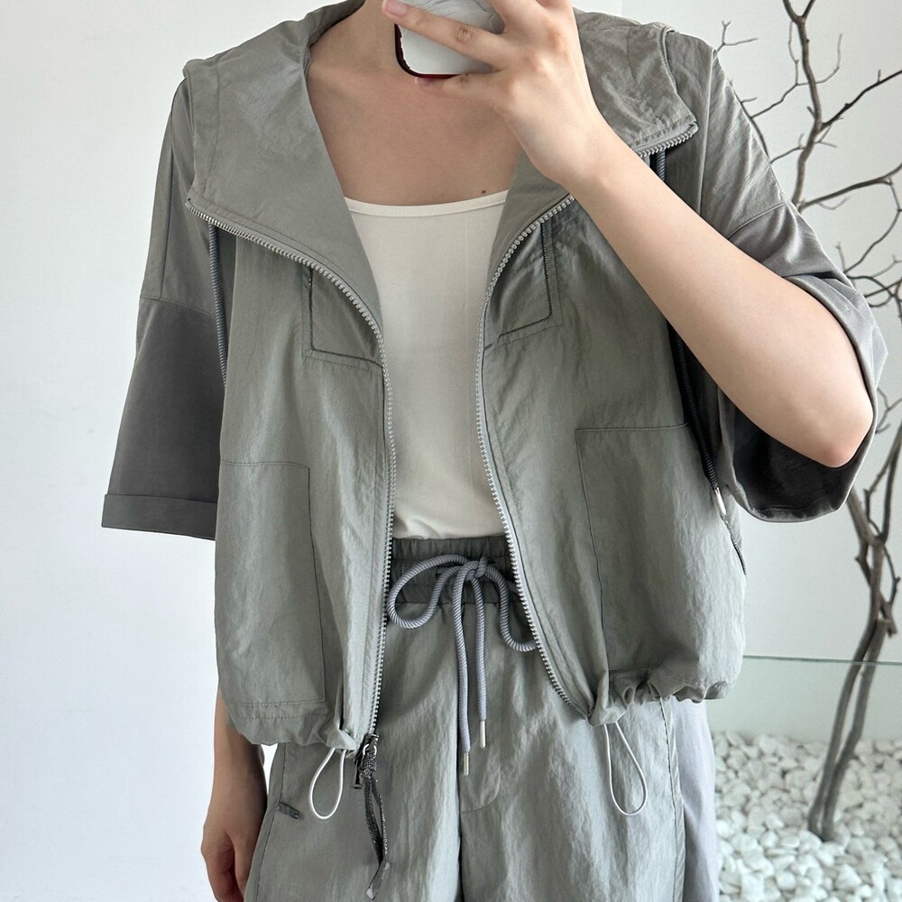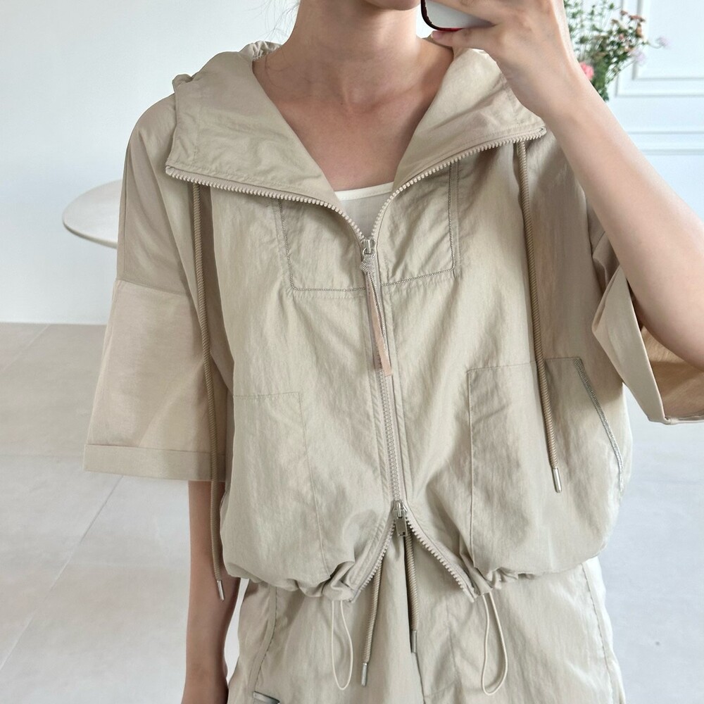 맨션. 페세리코 하프 슬리브 후드 점퍼