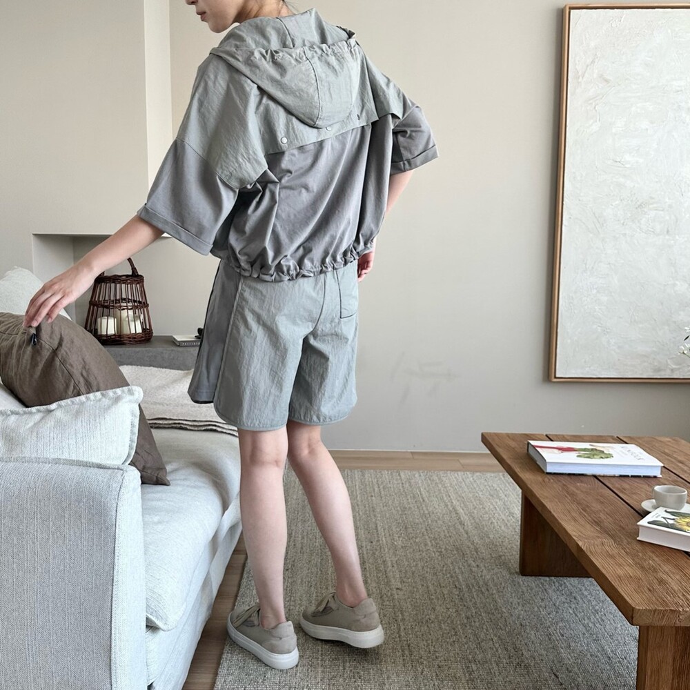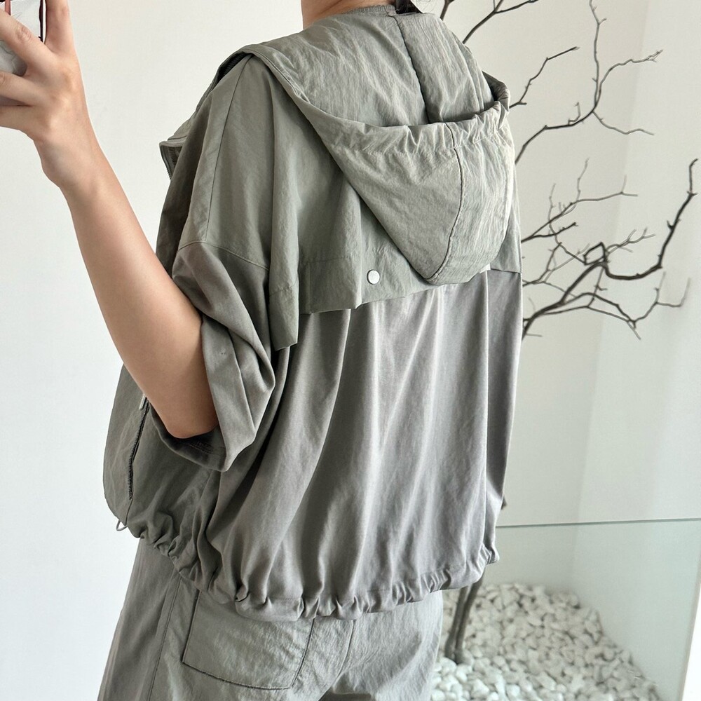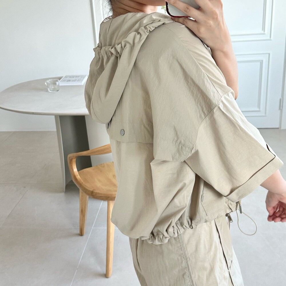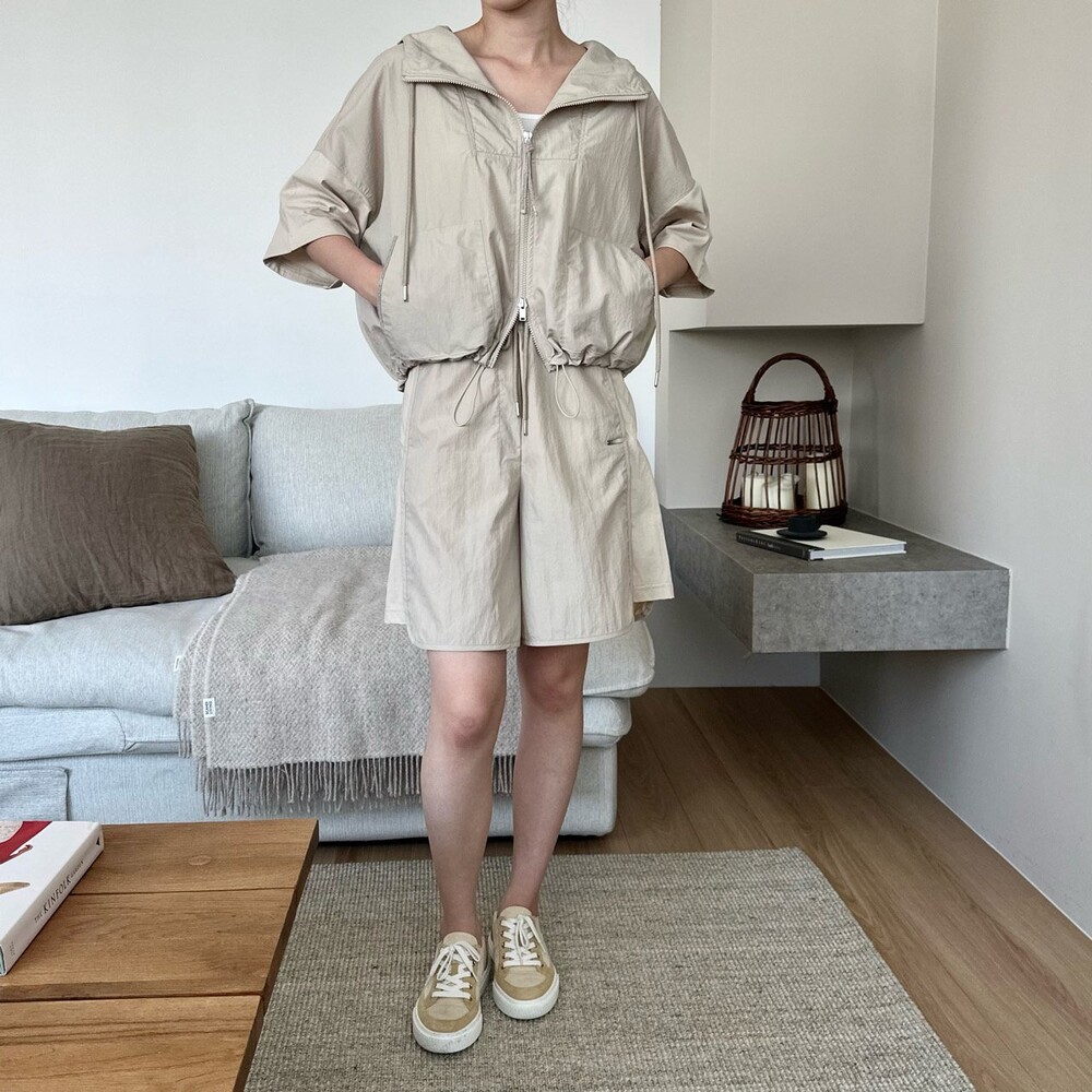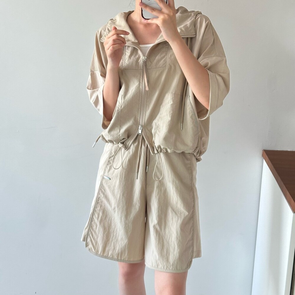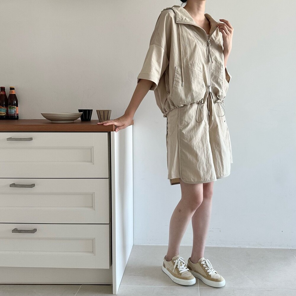 맨션. 페세리코 하프 슬리브 후드 점퍼