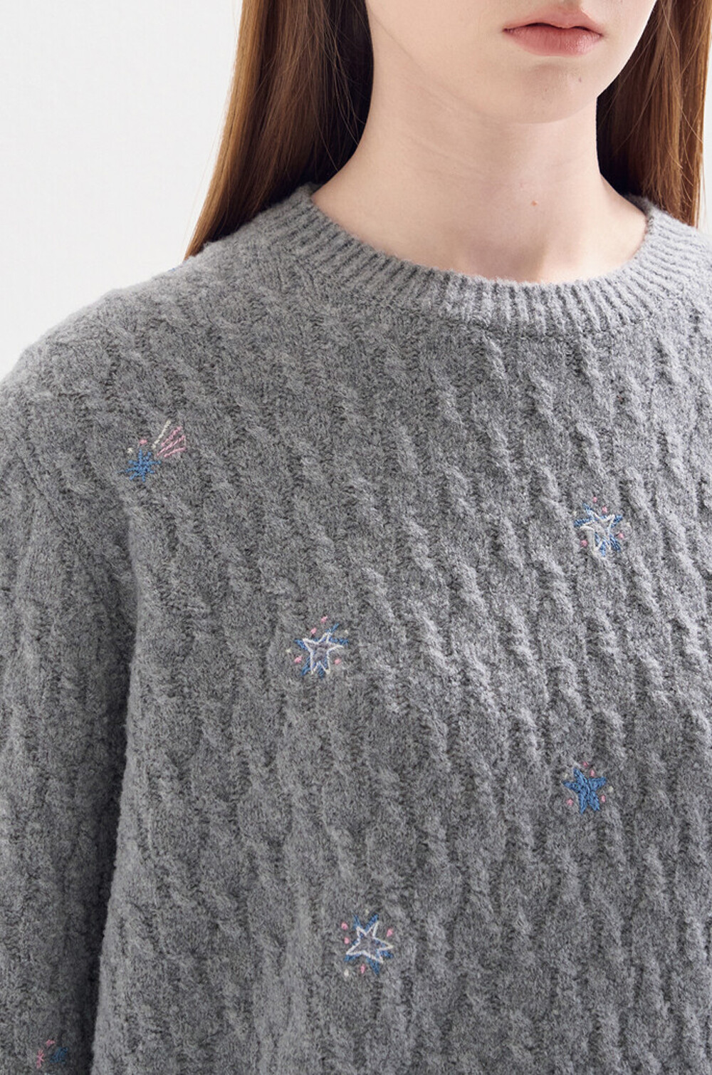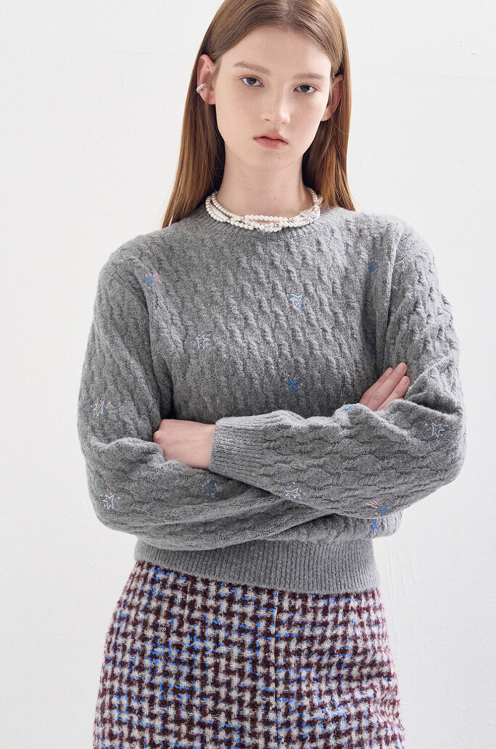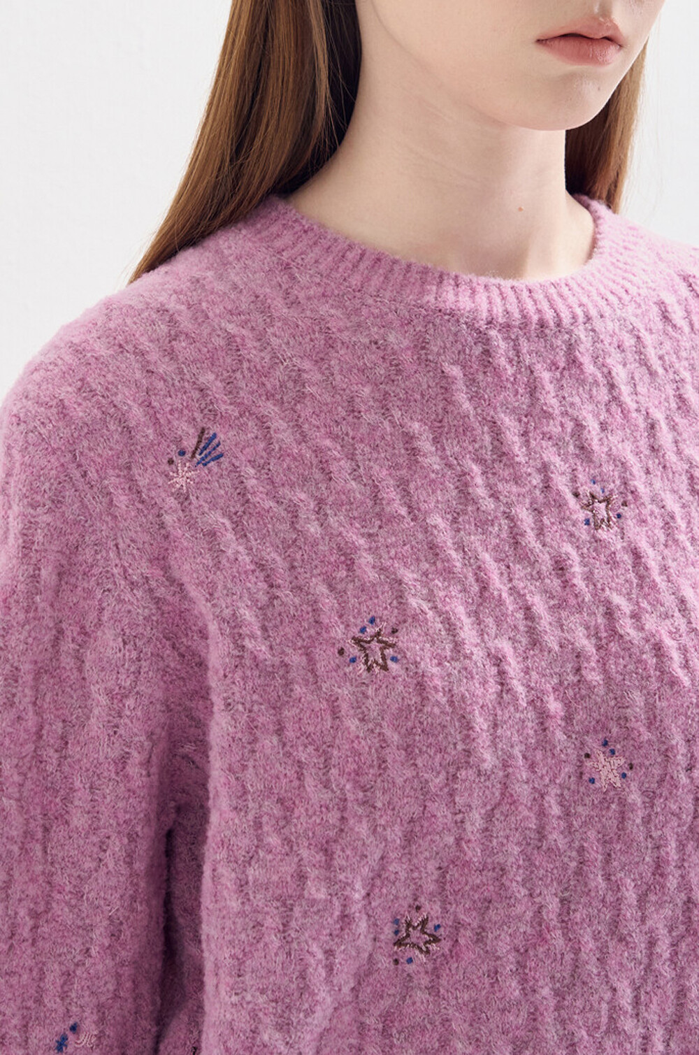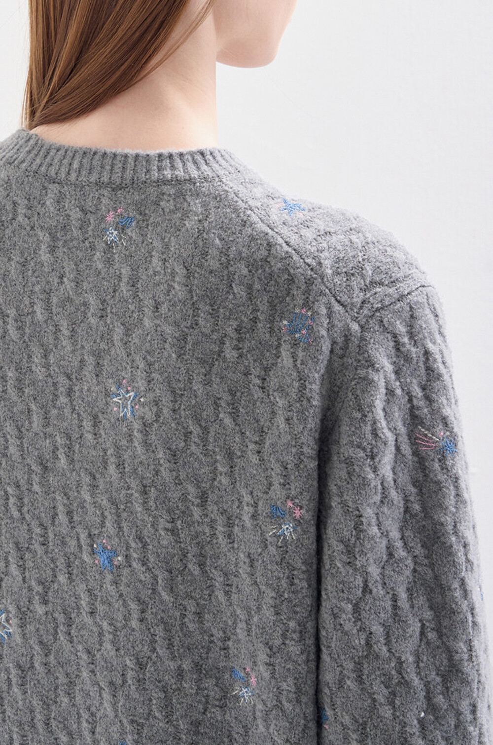 랑방컬렉션 울 블렌드 자수 디테일 케이블 니트 탑