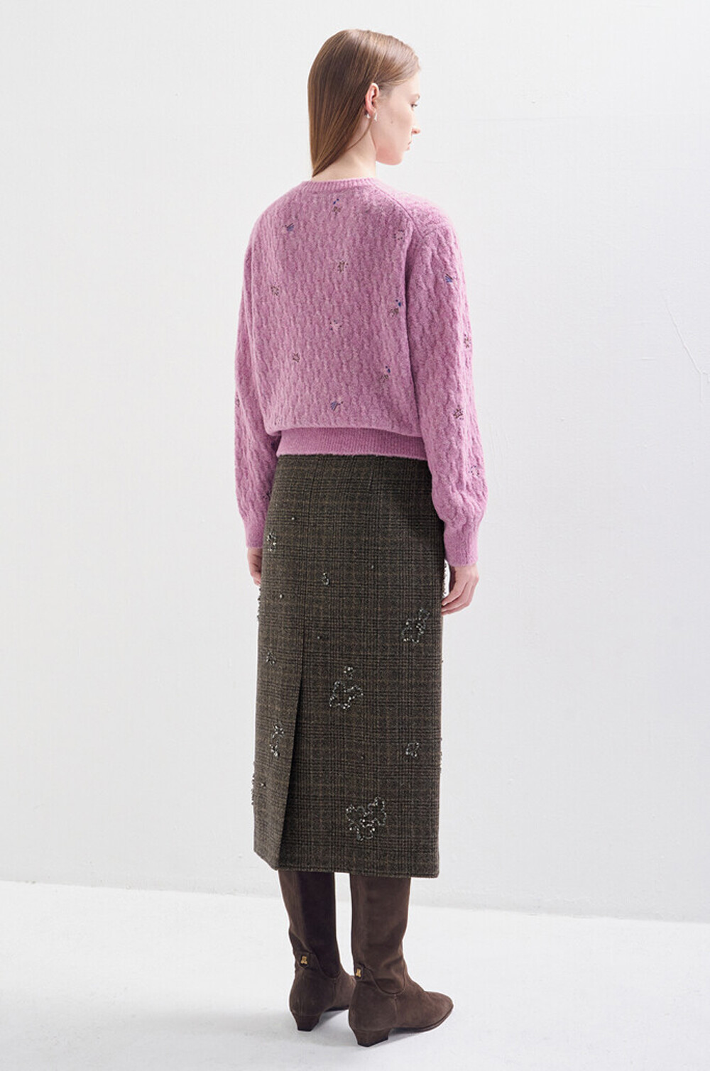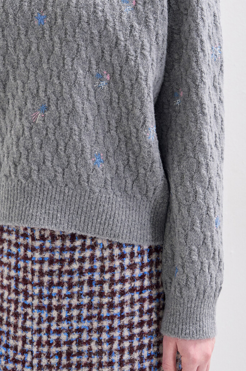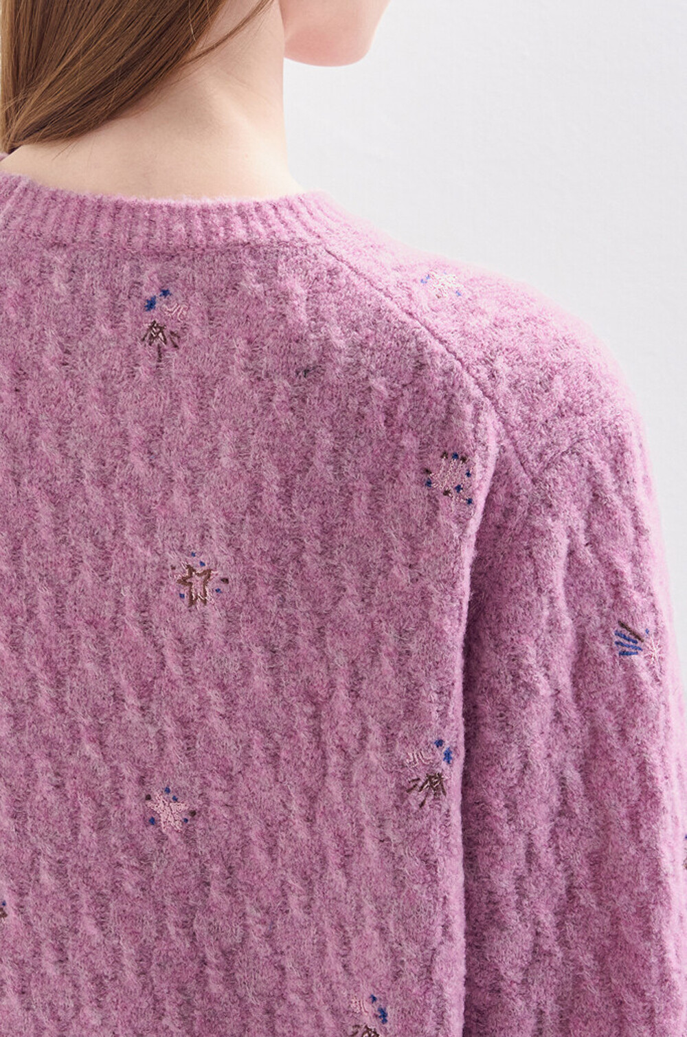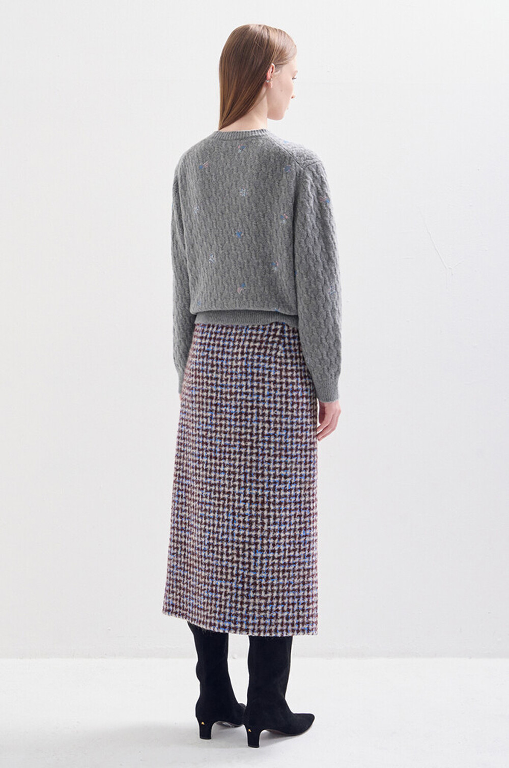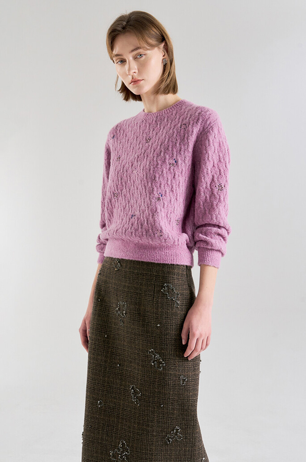 랑방컬렉션 울 블렌드 자수 디테일 케이블 니트 탑