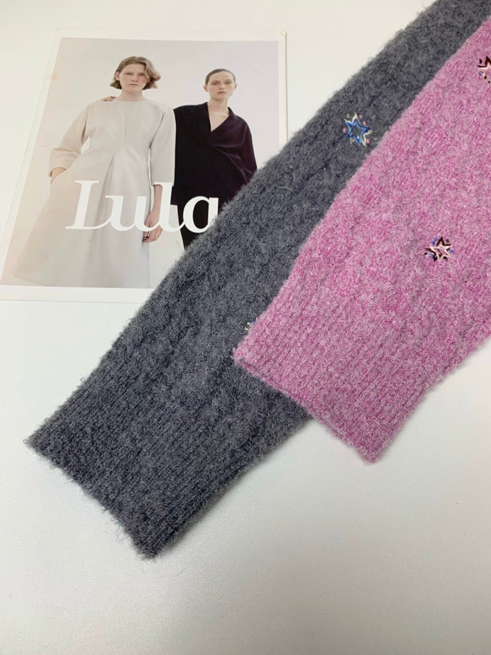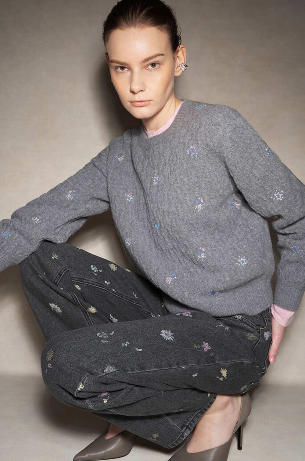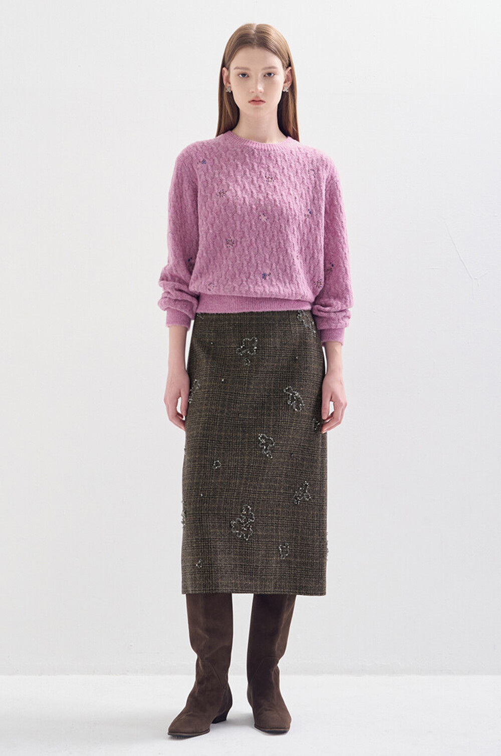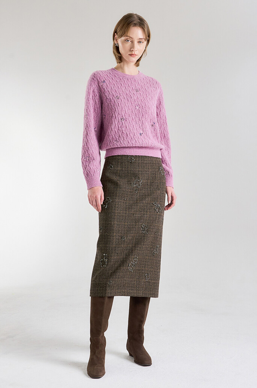 랑방컬렉션 울 블렌드 자수 디테일 케이블 니트 탑
