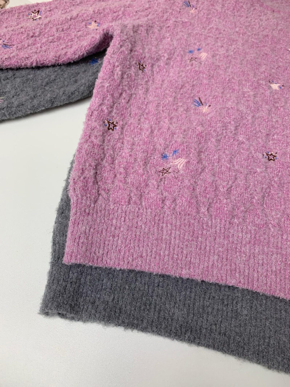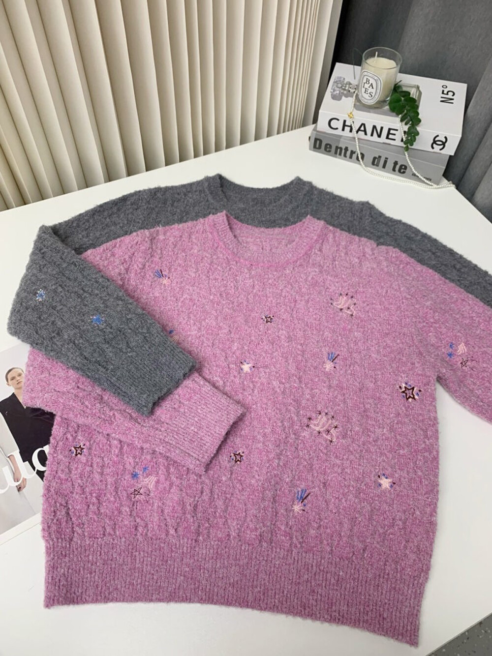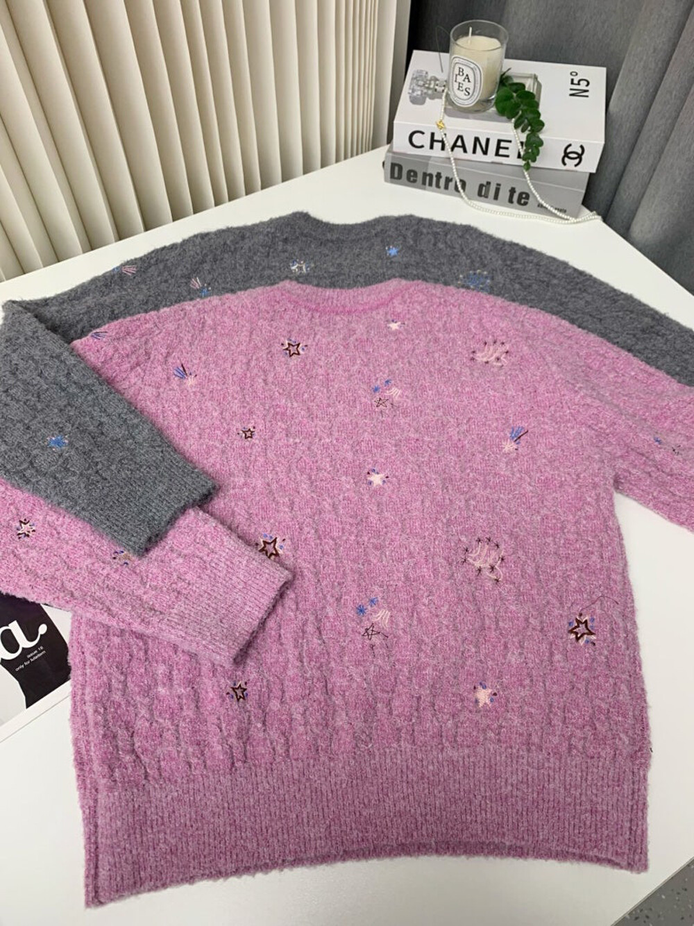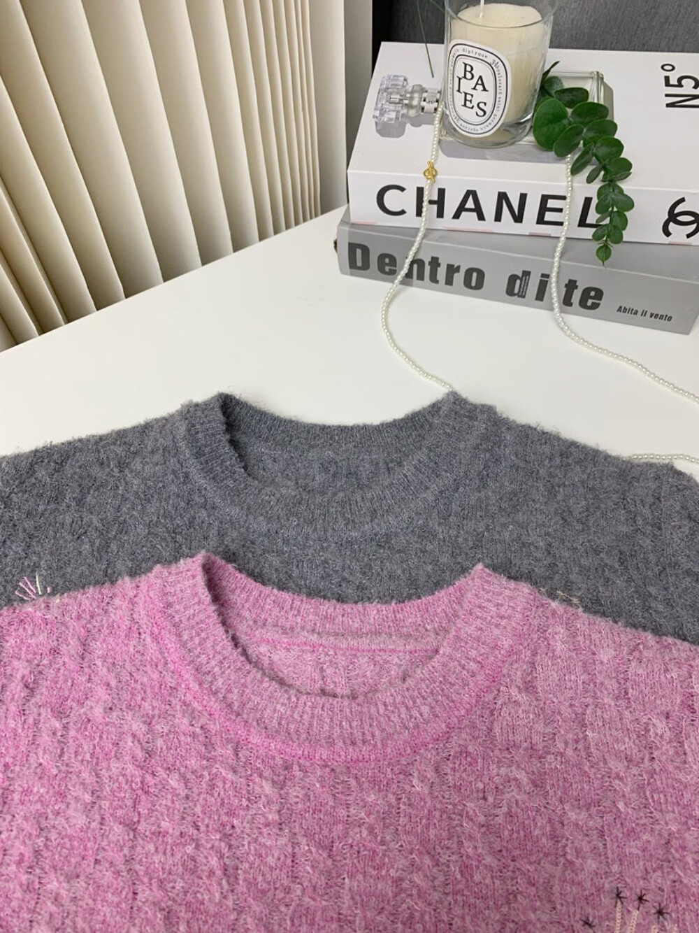 랑방컬렉션 울 블렌드 자수 디테일 케이블 니트 탑