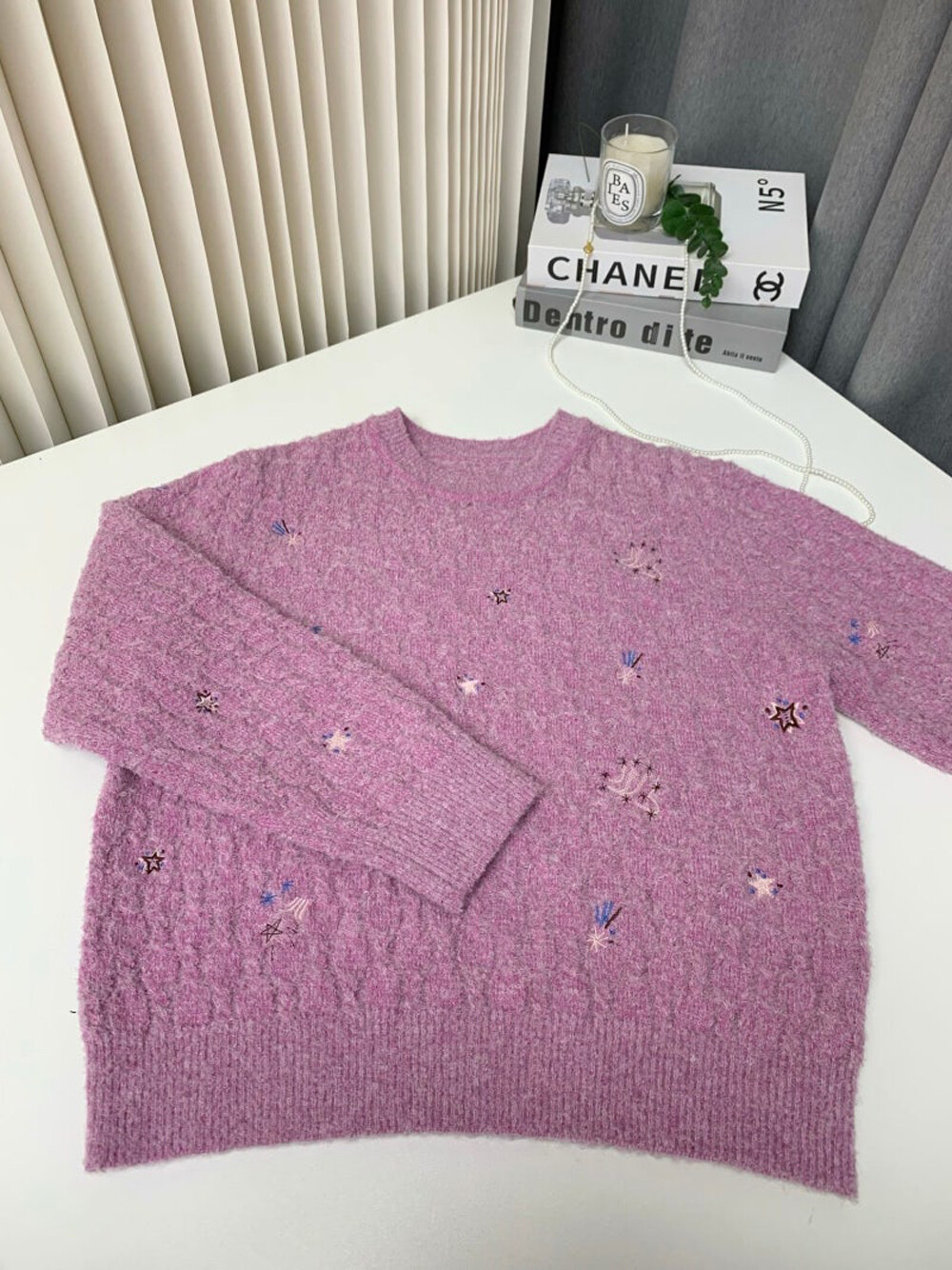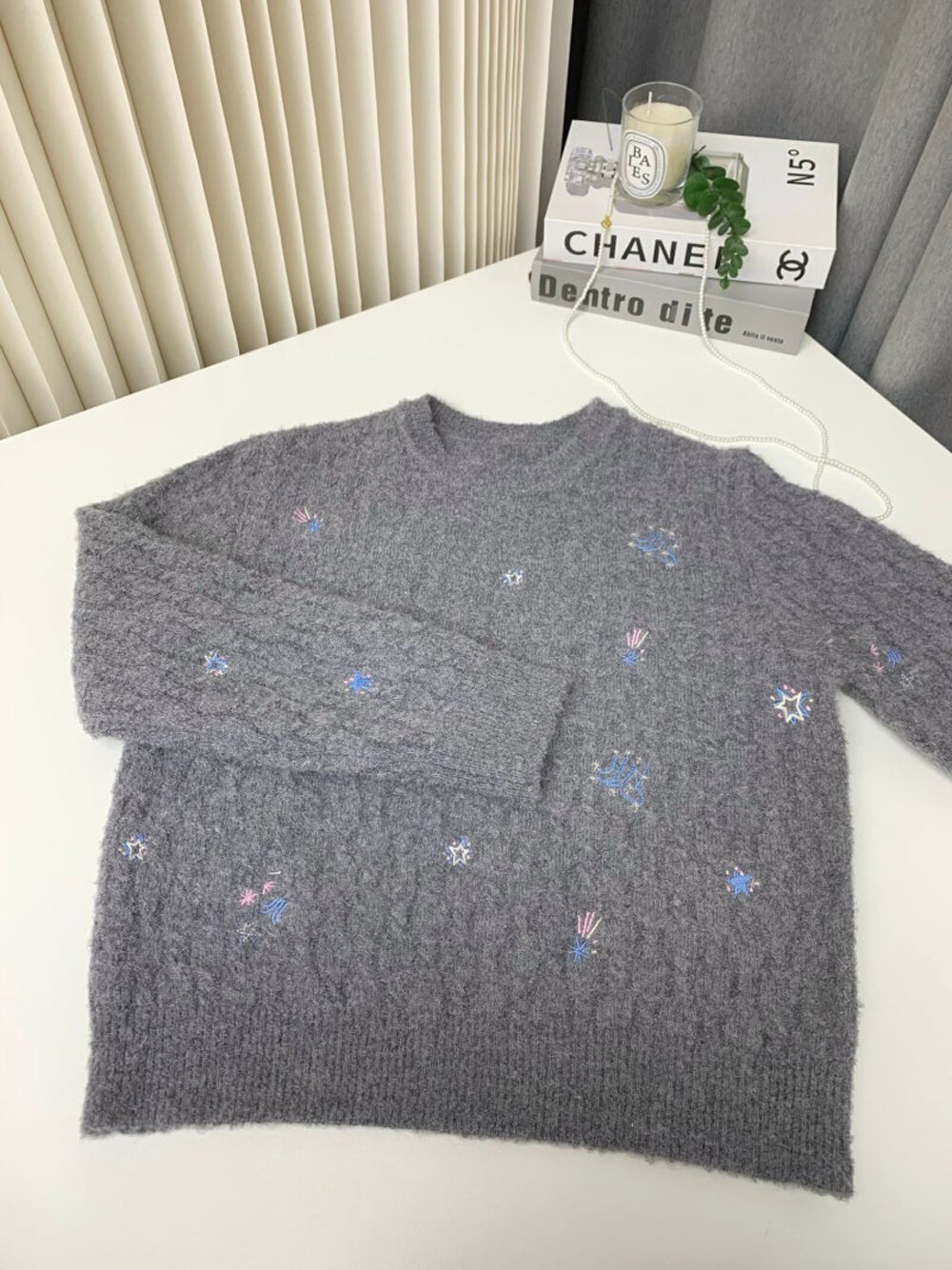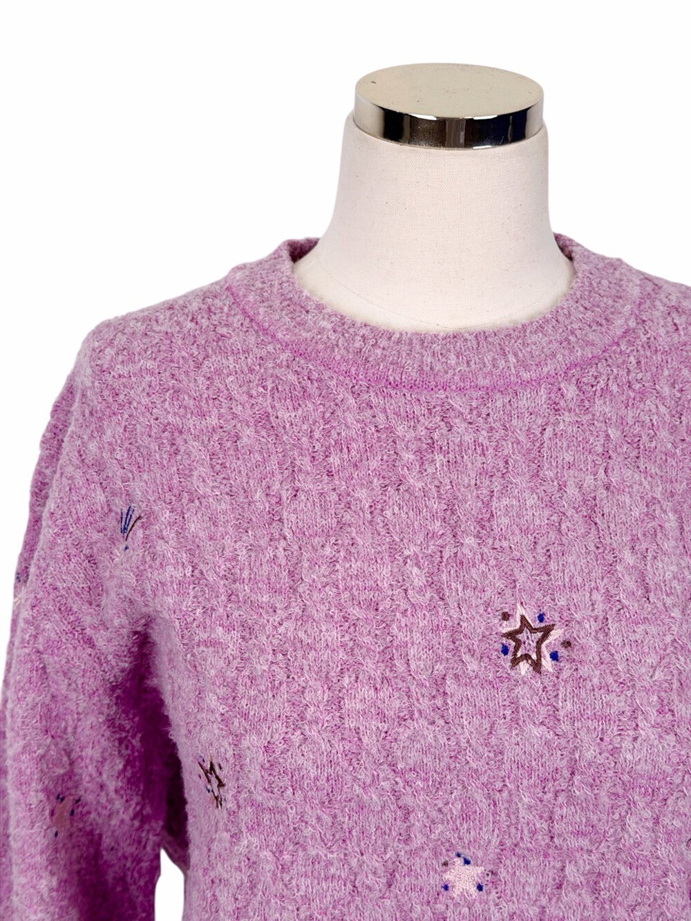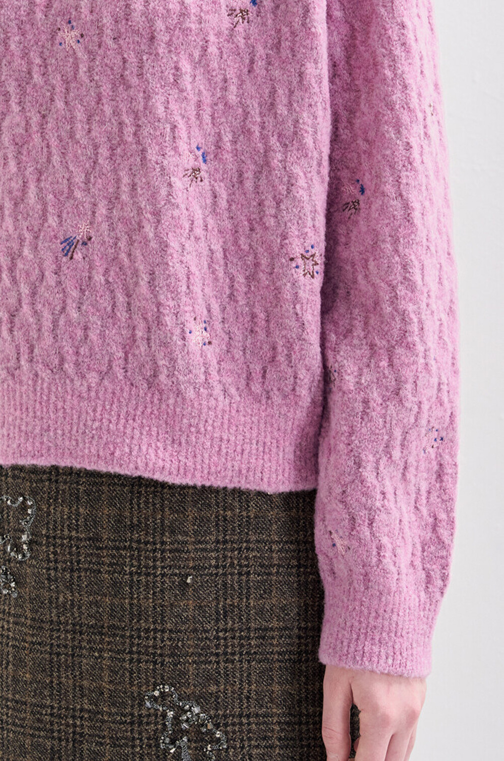 LANVIN. Wool Blend Embroidery Detail Cable Knit Top
