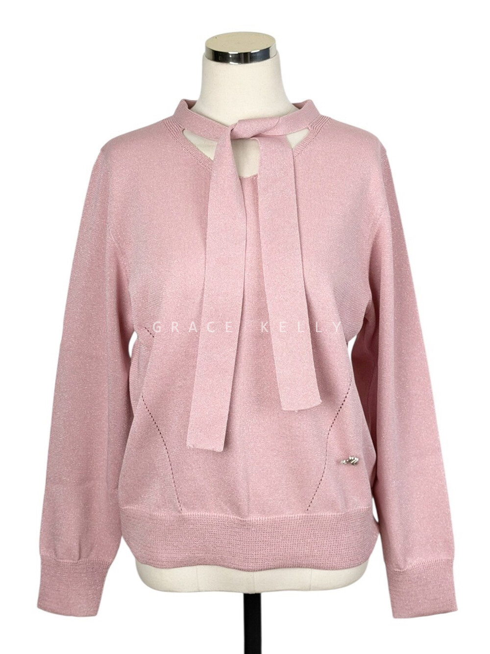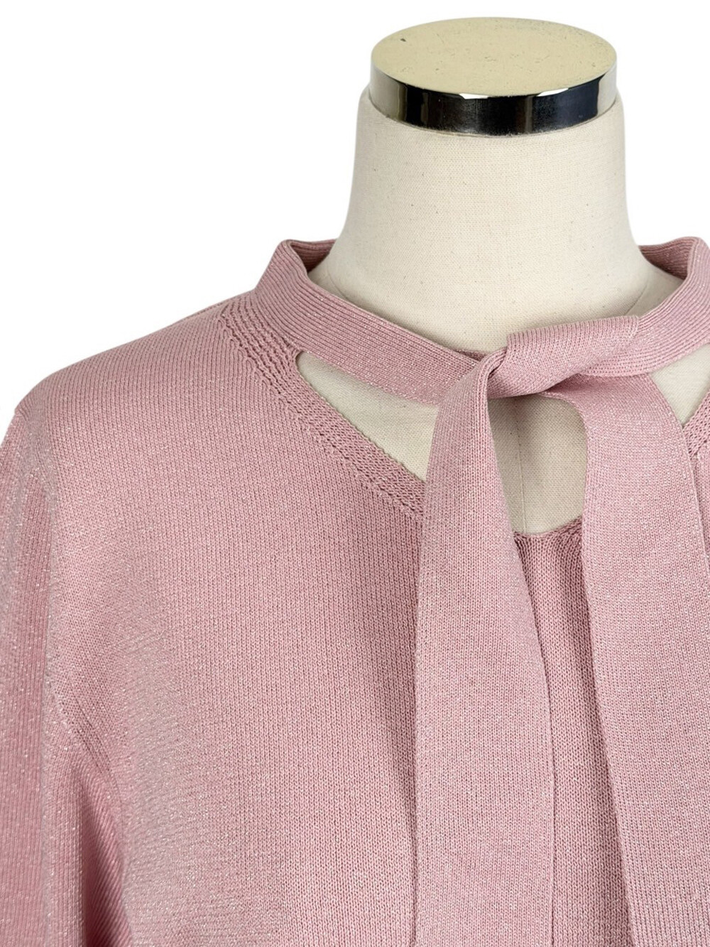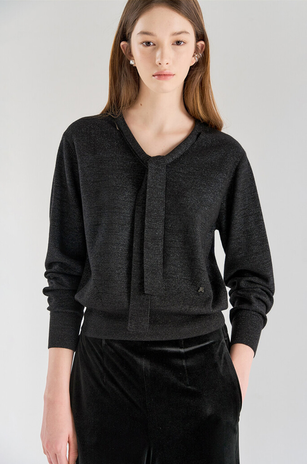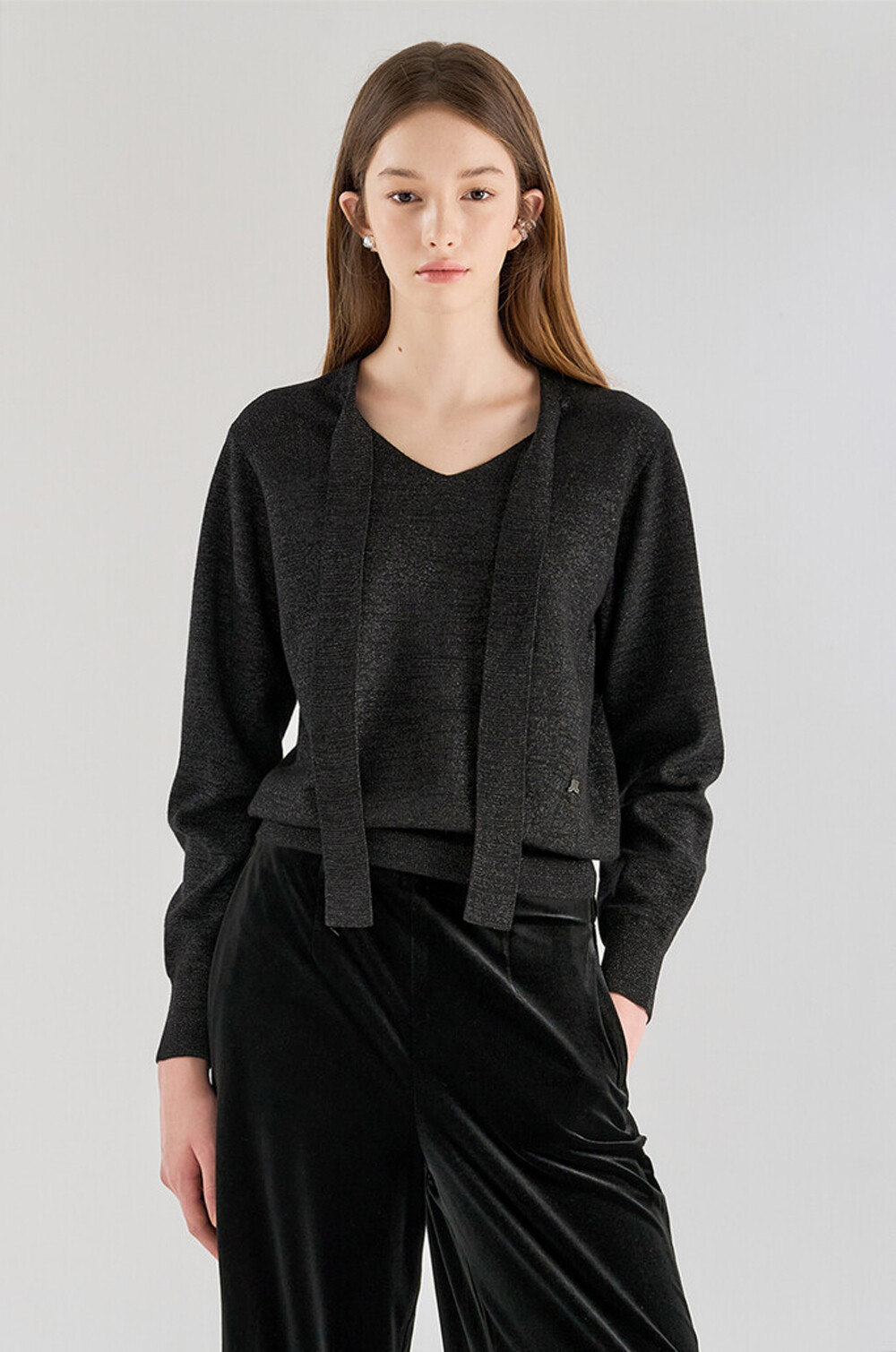 랑방컬렉션 울 블렌드 글리터 타이 스트랩 니트 탑