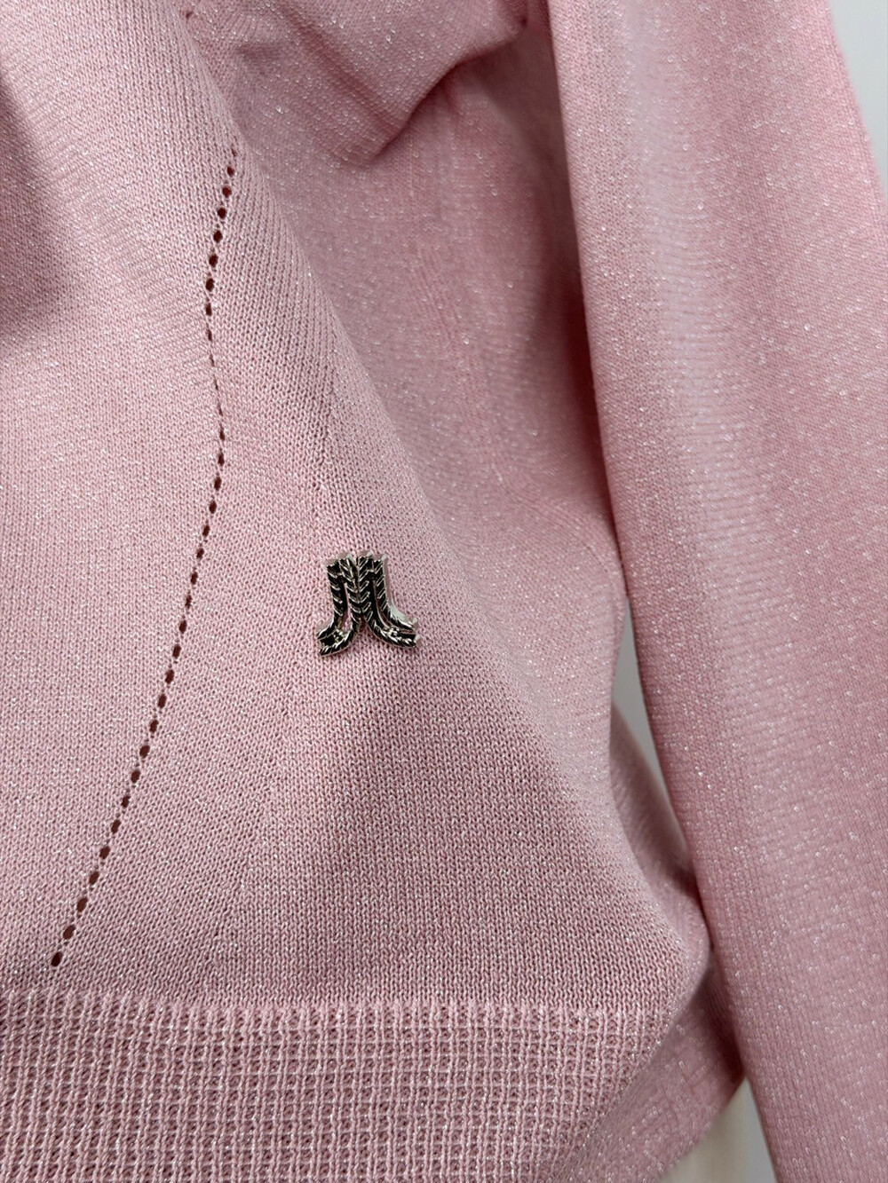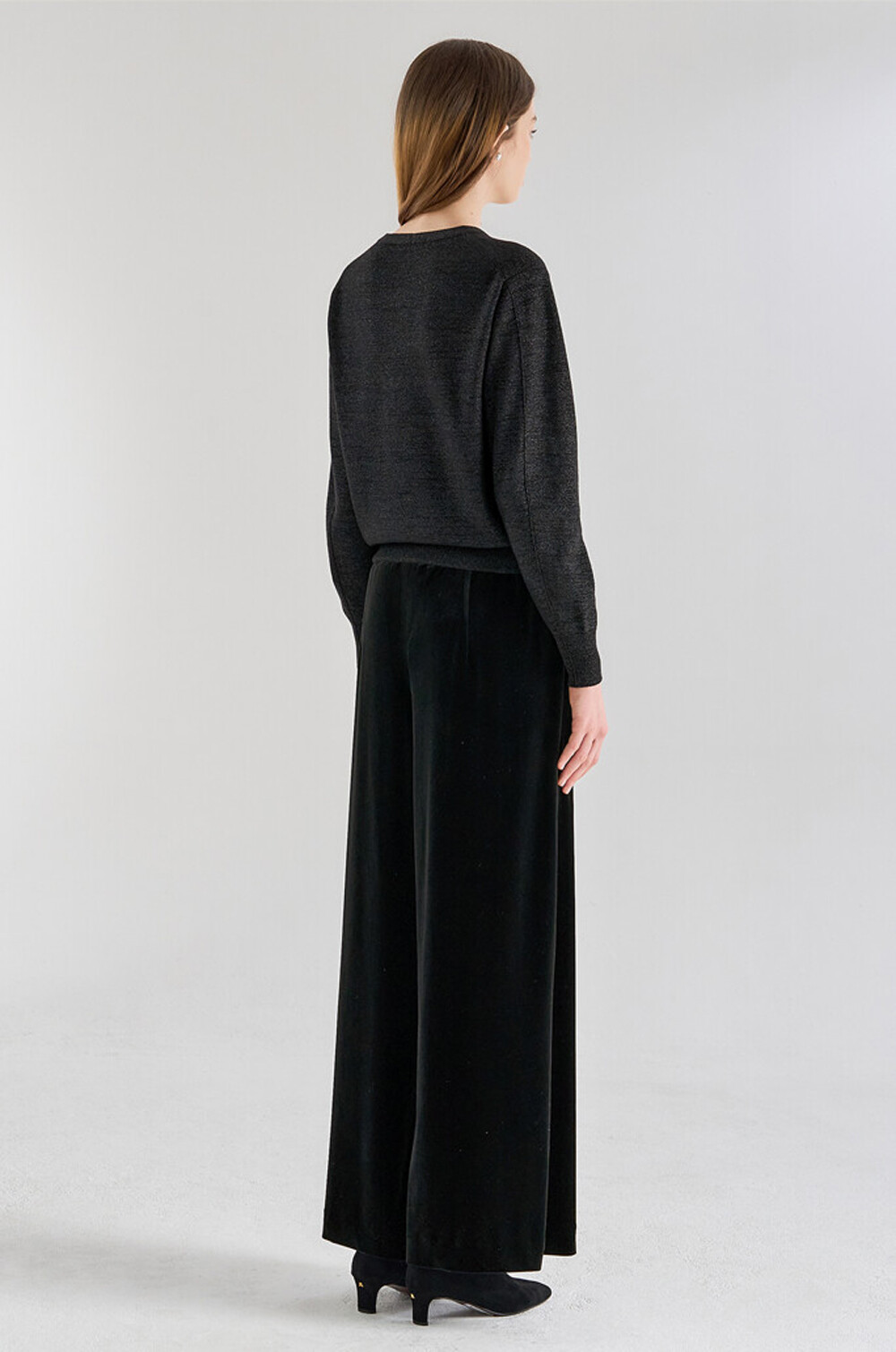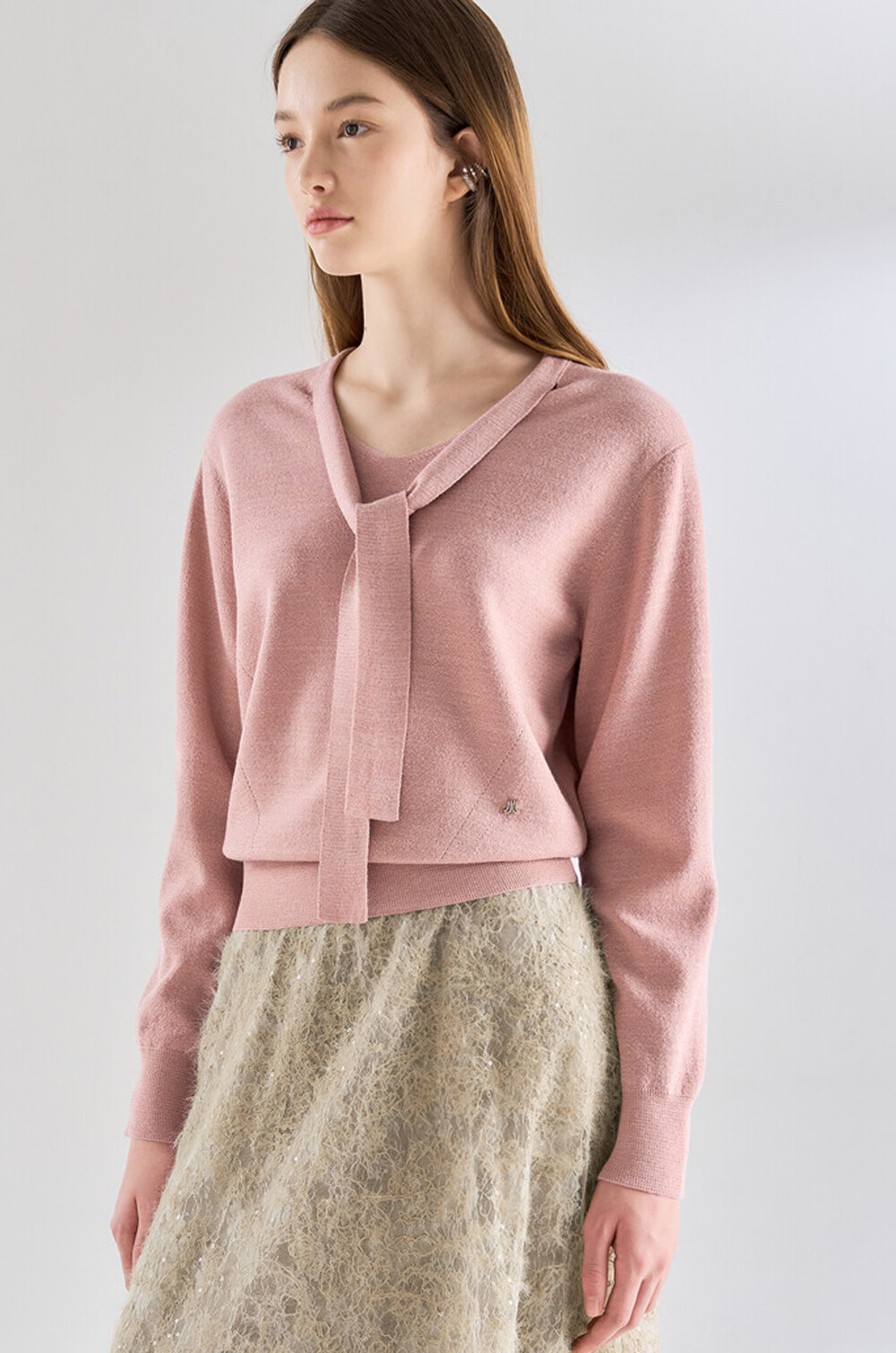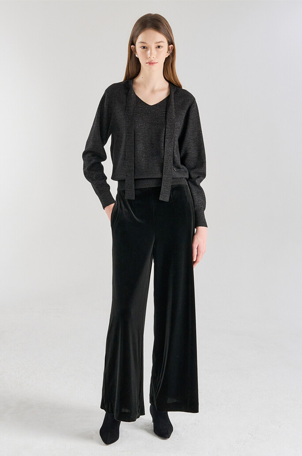 랑방컬렉션 울 블렌드 글리터 타이 스트랩 니트 탑