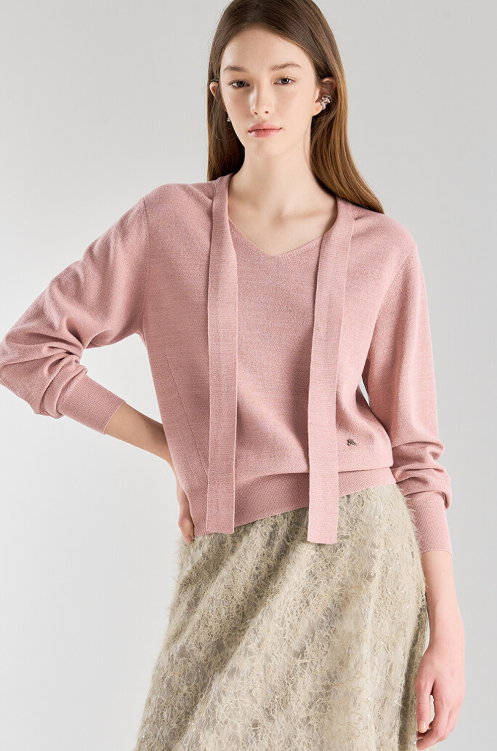 타이 스트랩 브이넥 니트 탑으로,