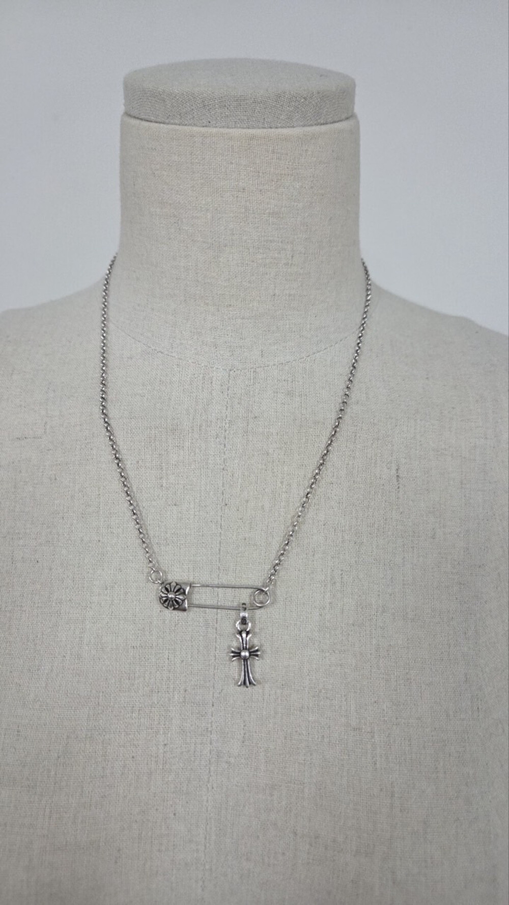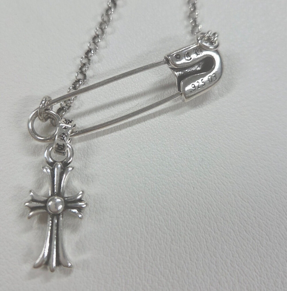 2. 크롬하츠 세이프티 핀 네크리스 + 크로스 펜던트 베이비 참