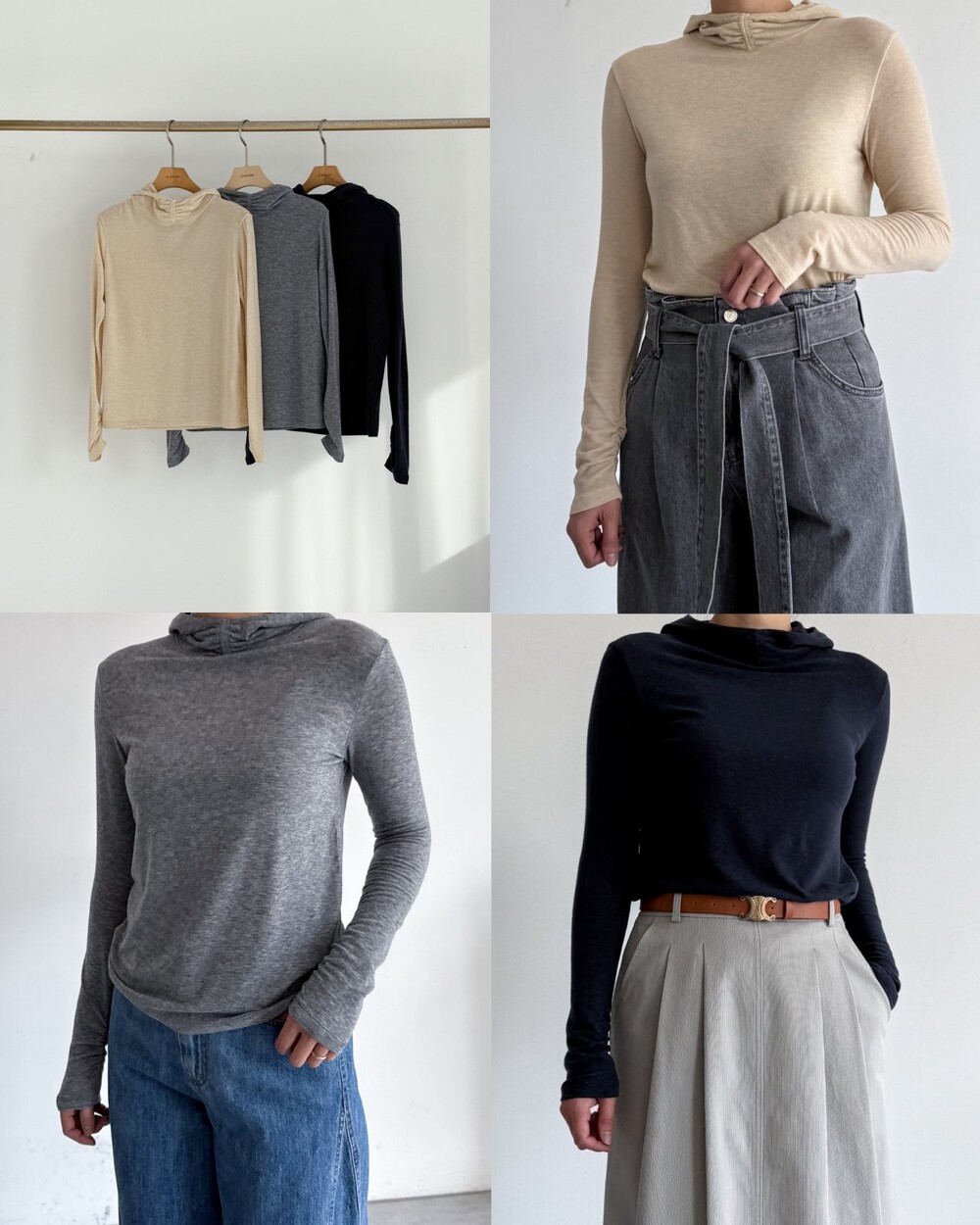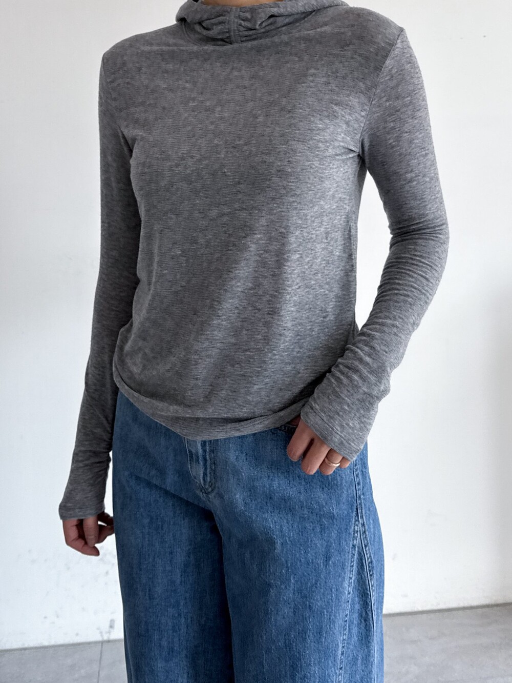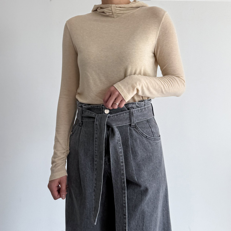 울 블렌드 후드 슬림 탑