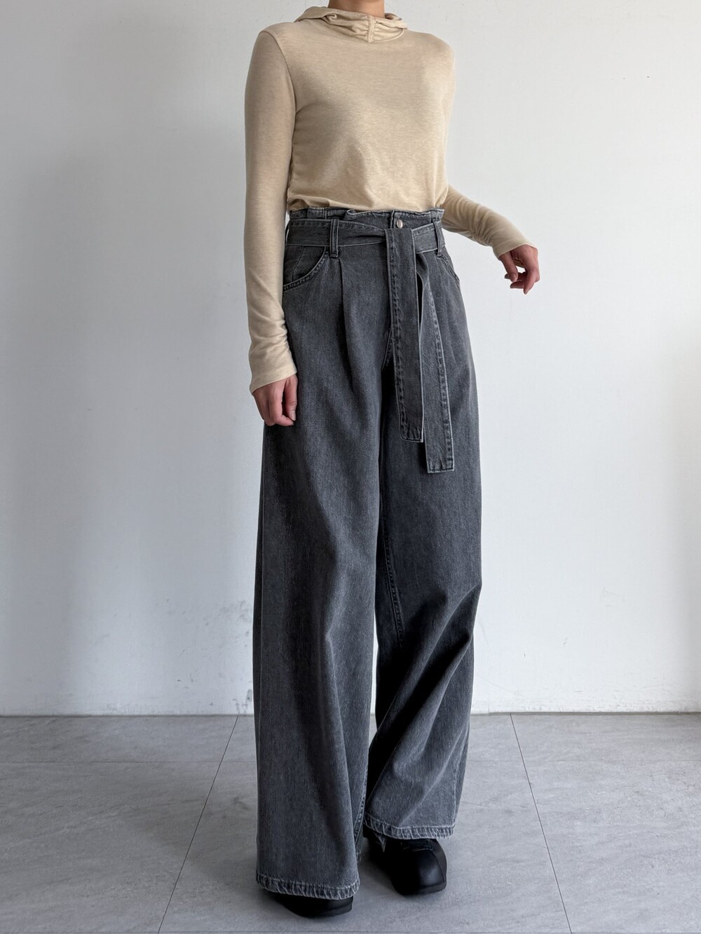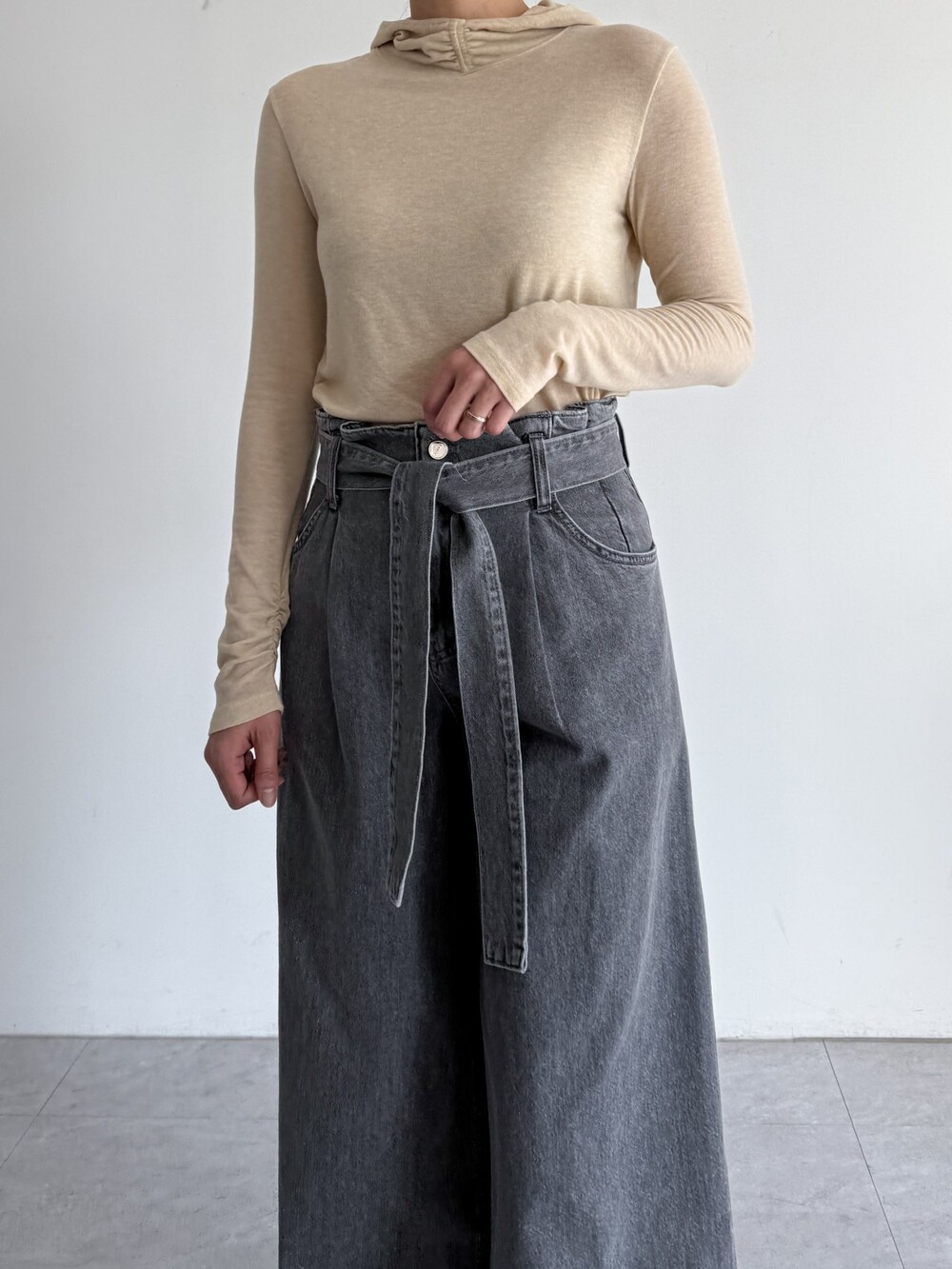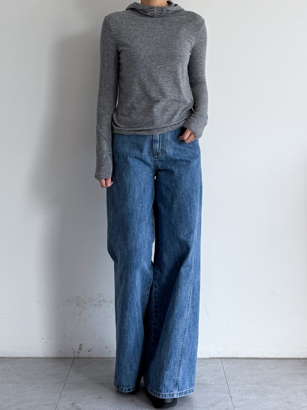 울 블렌드 후드 슬림 탑