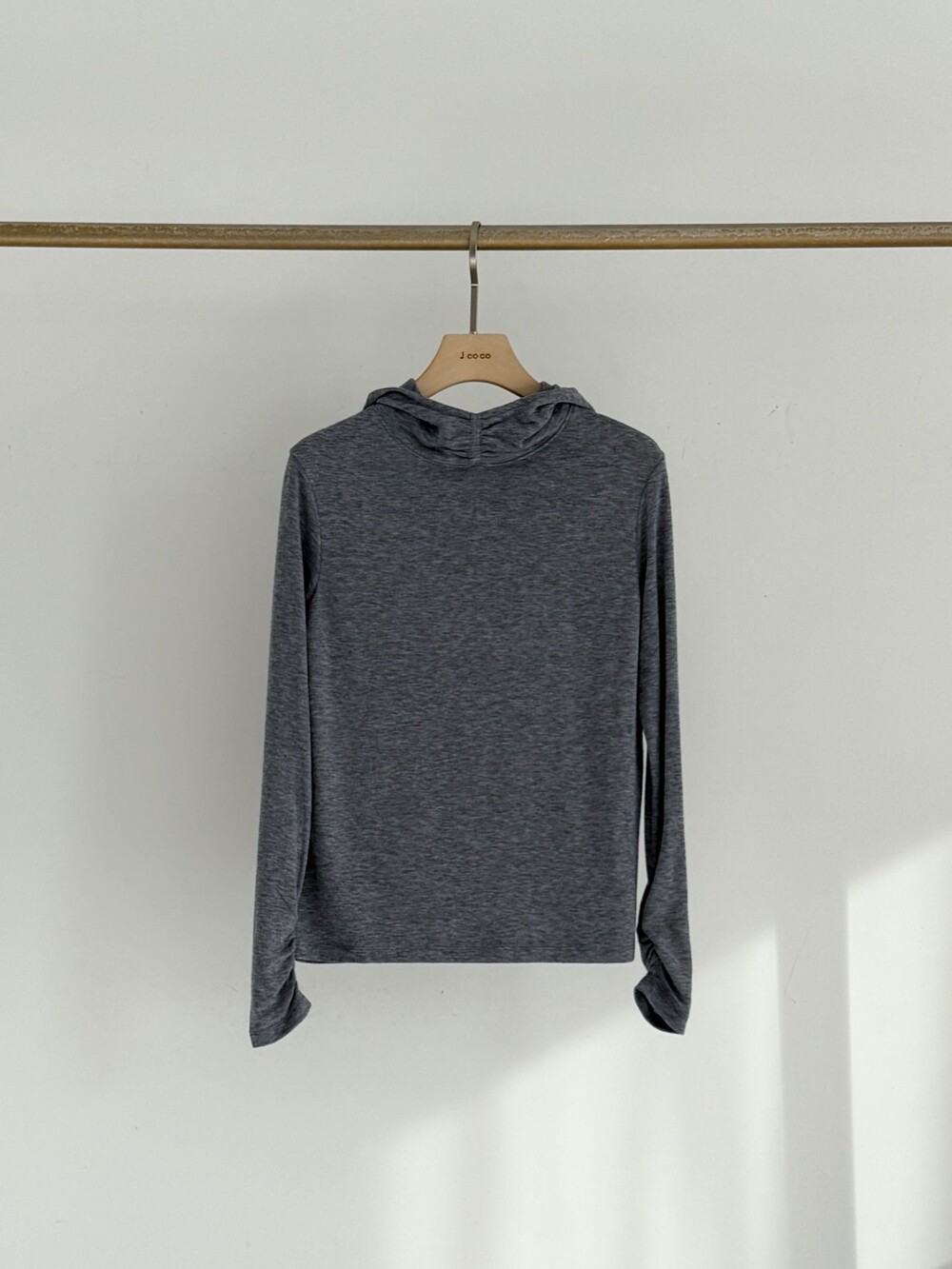 제이코코. 울 블렌드 후드 슬림 탑