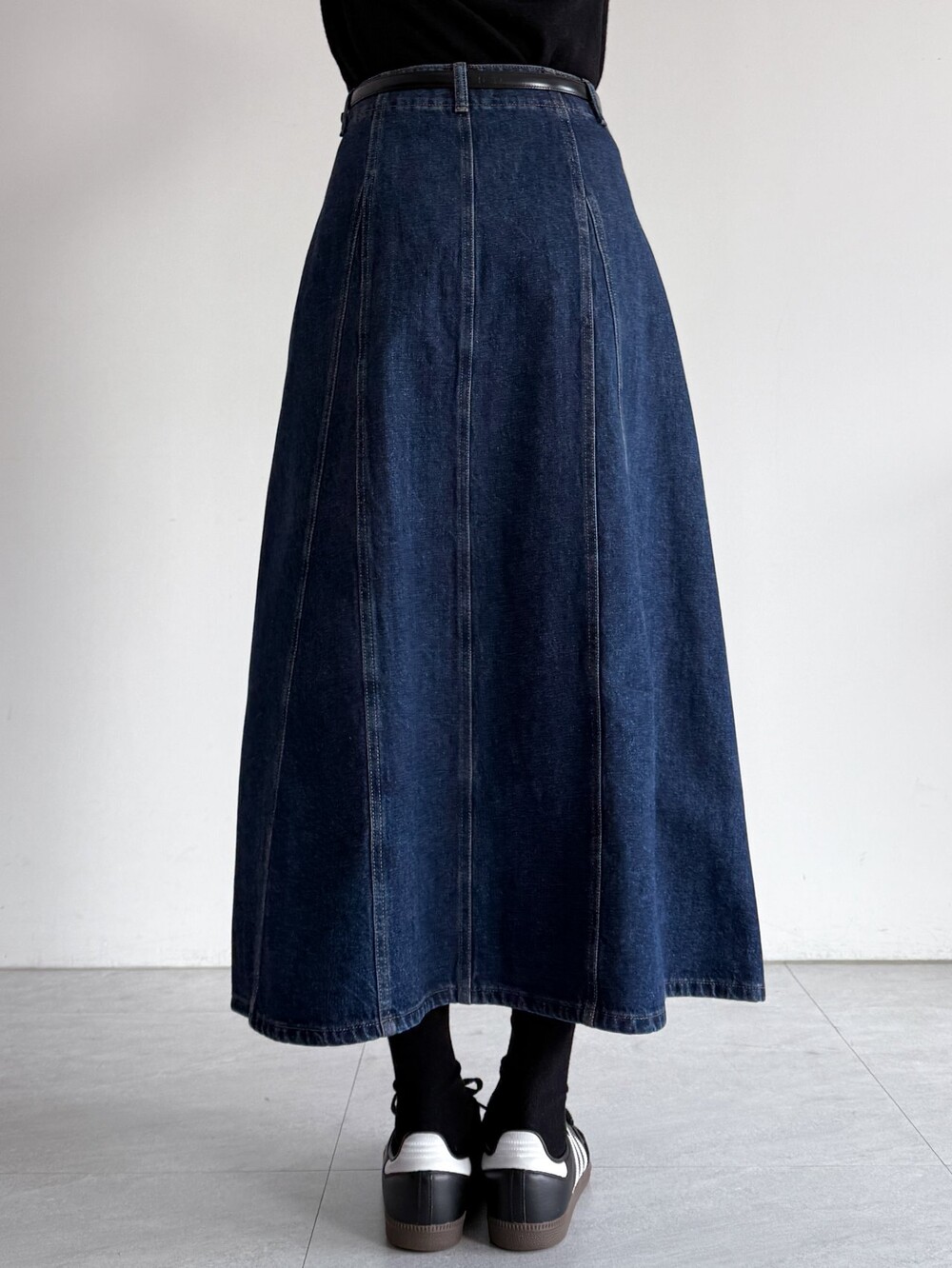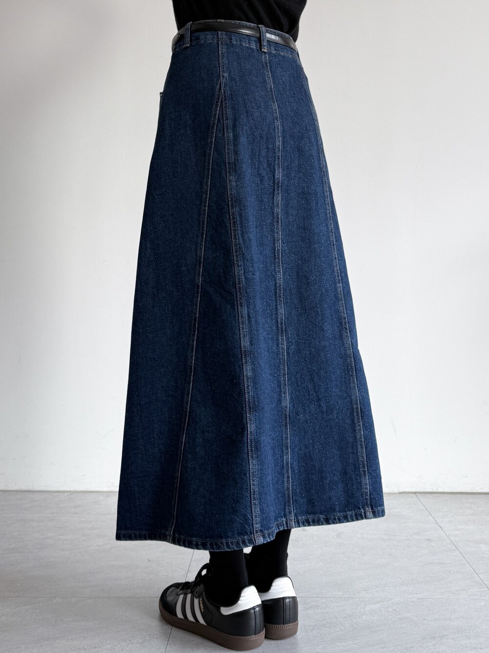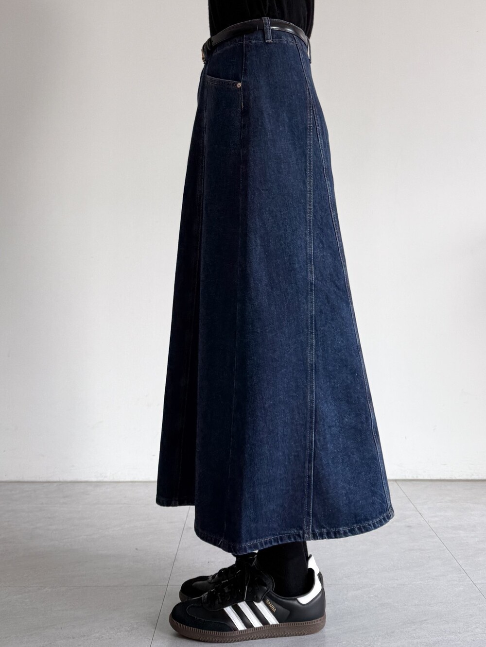실루엣의 데님 스커트입니다.