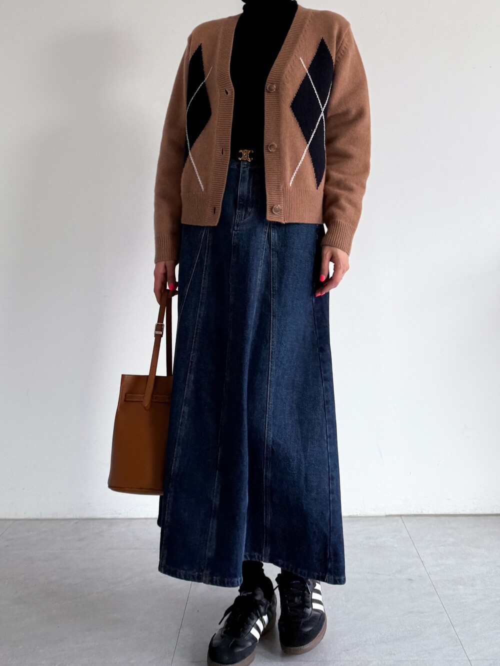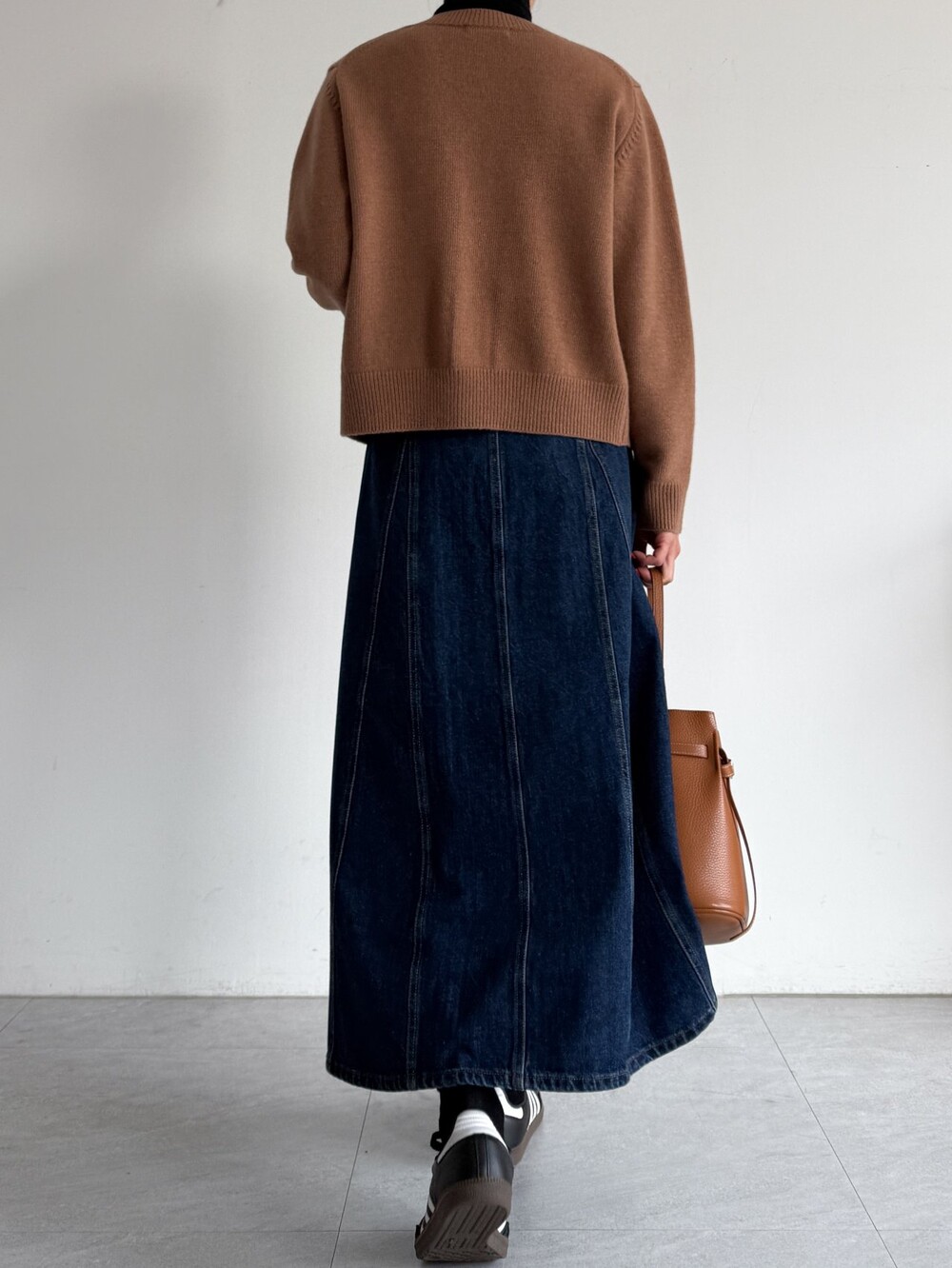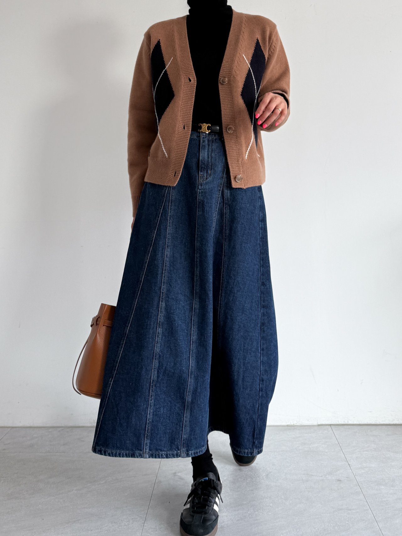실루엣의 데님 스커트입니다.