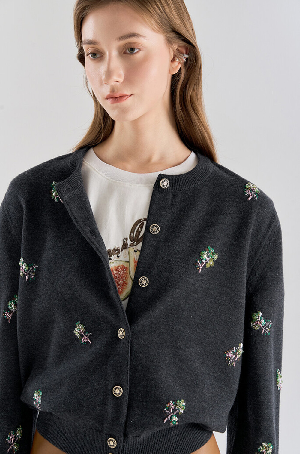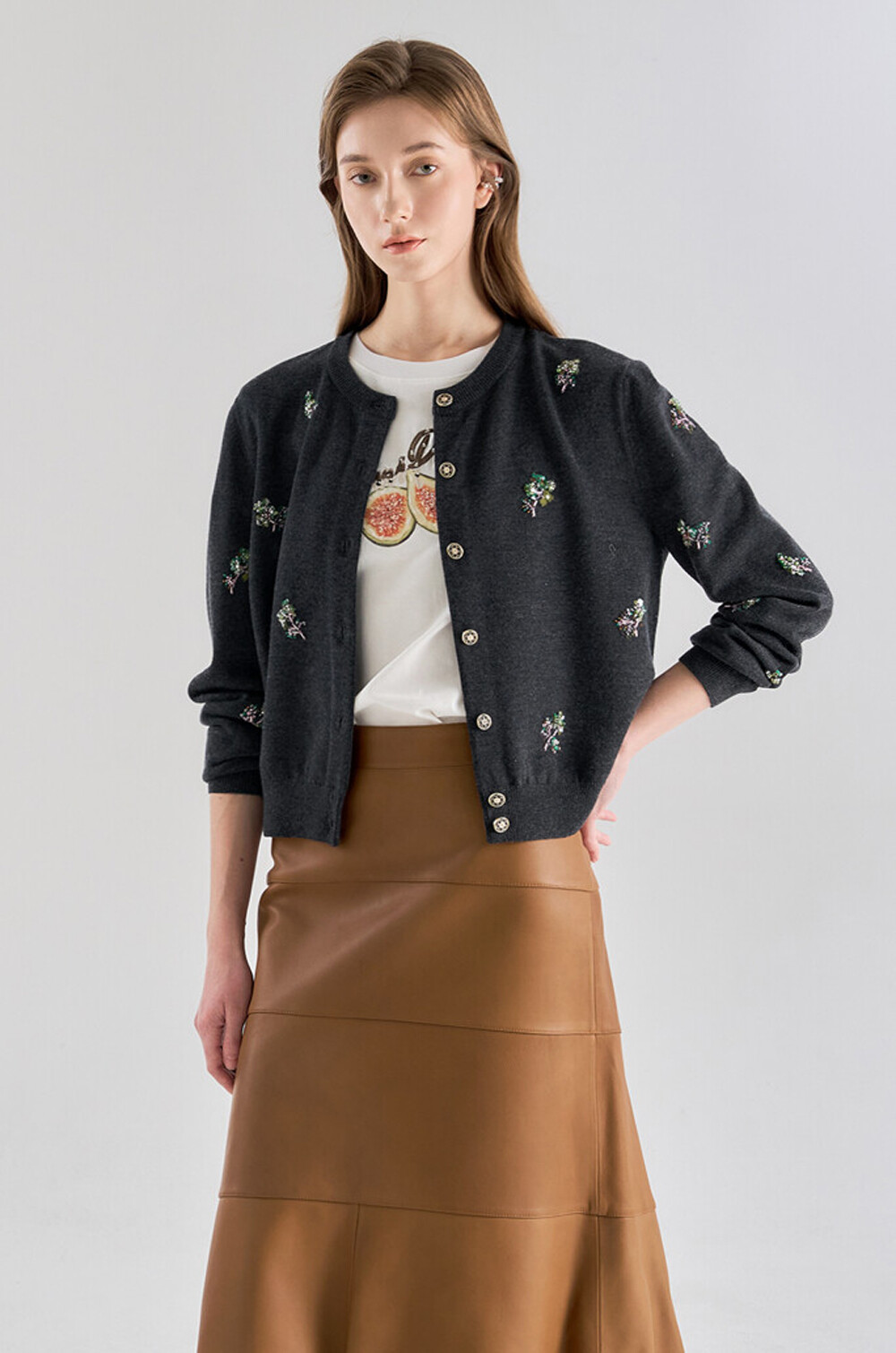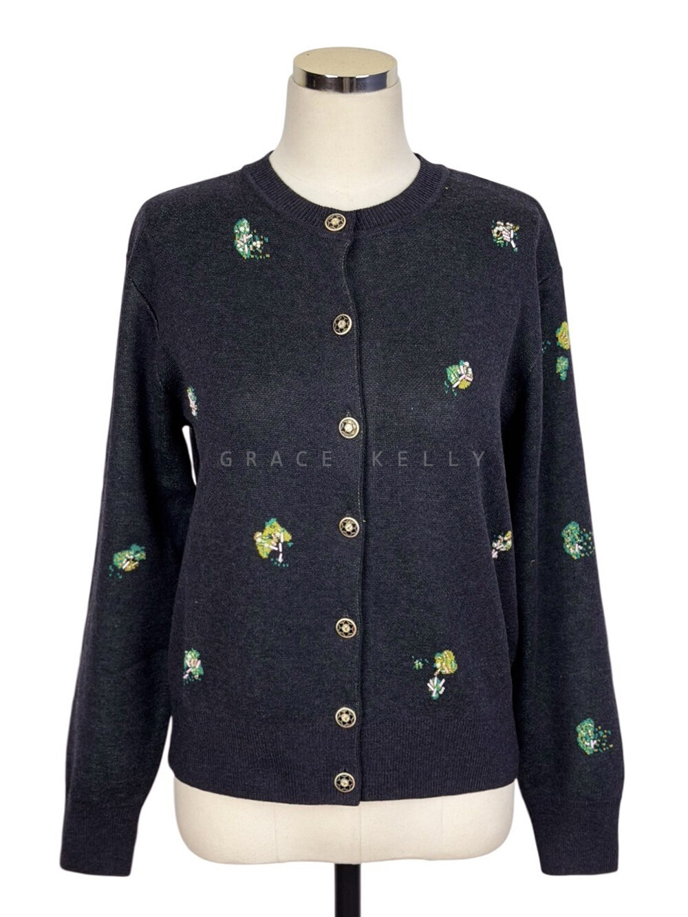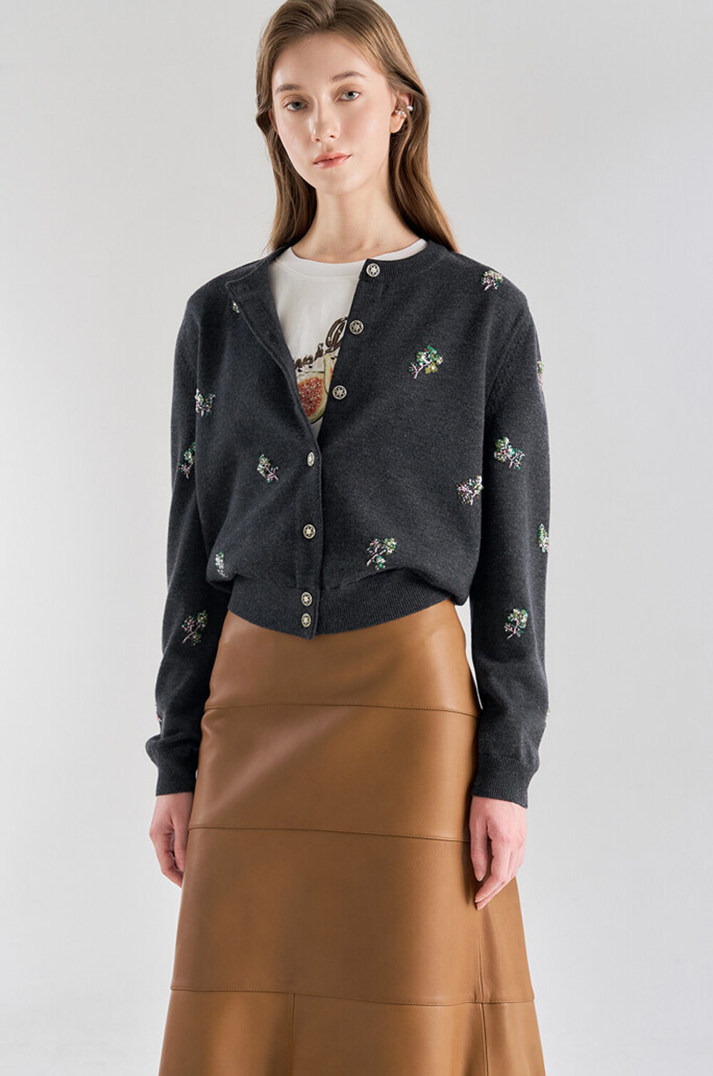 랑방컬렉션 울 플로럴 자수 & 비즈 가디건