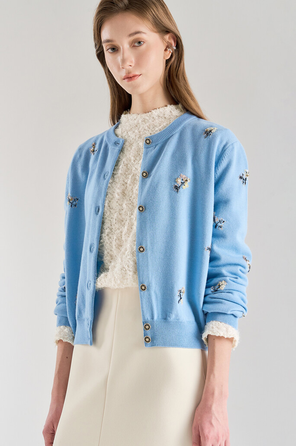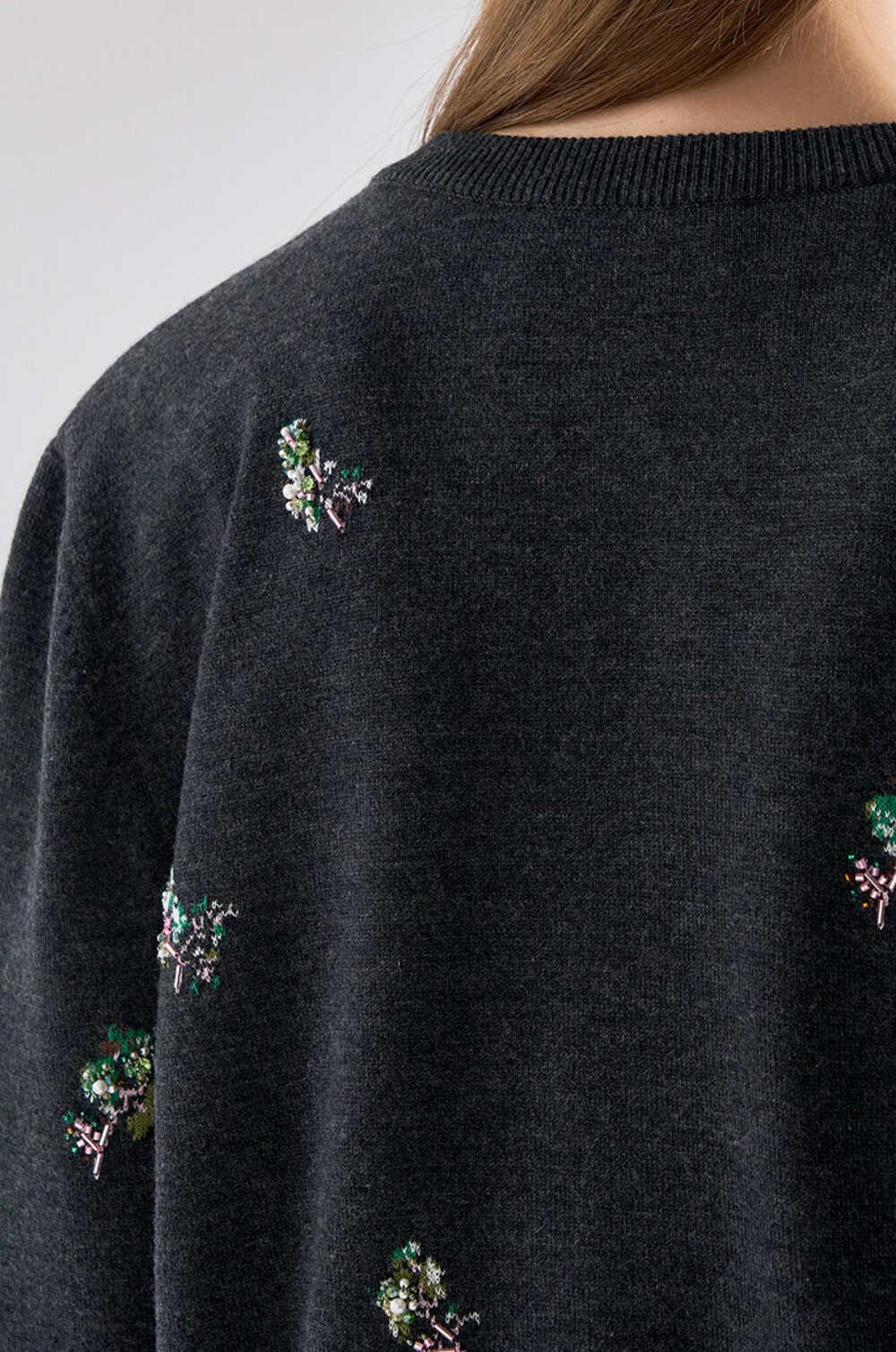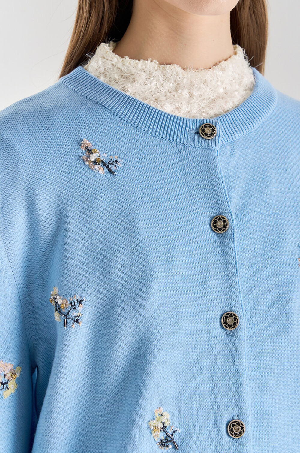랑방컬렉션 울 플로럴 자수 & 비즈 가디건