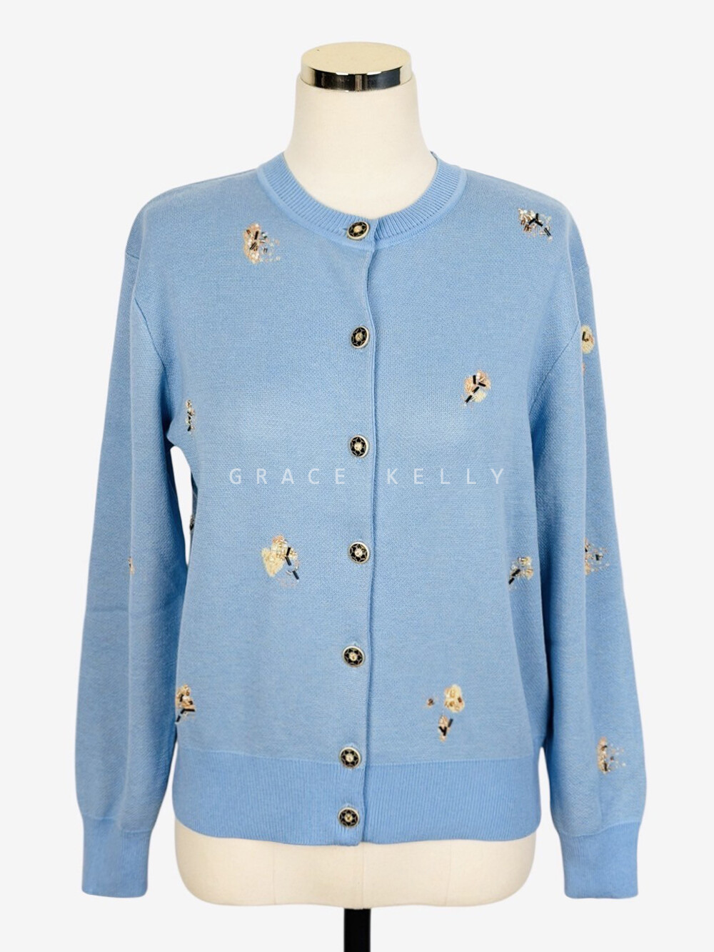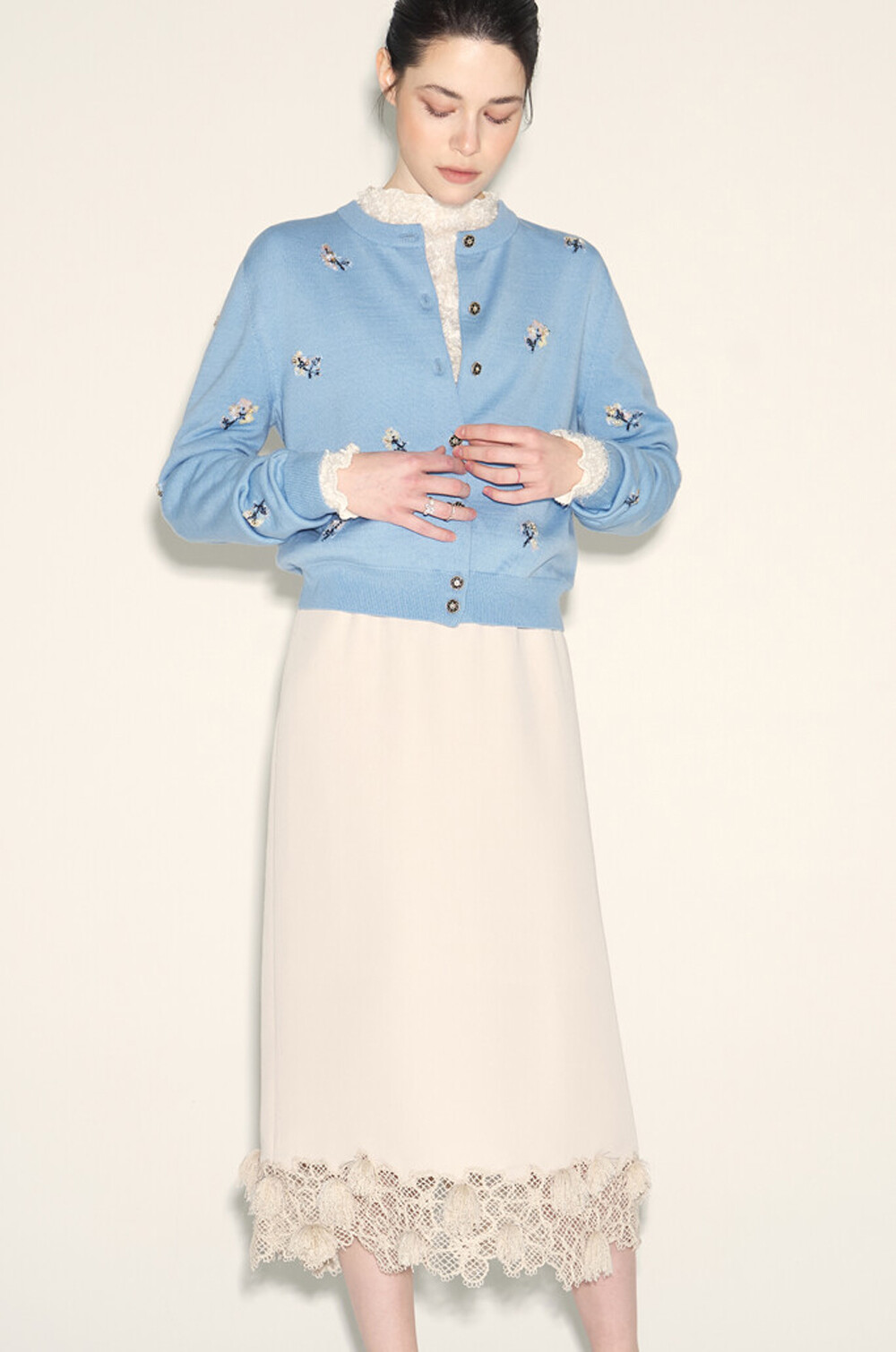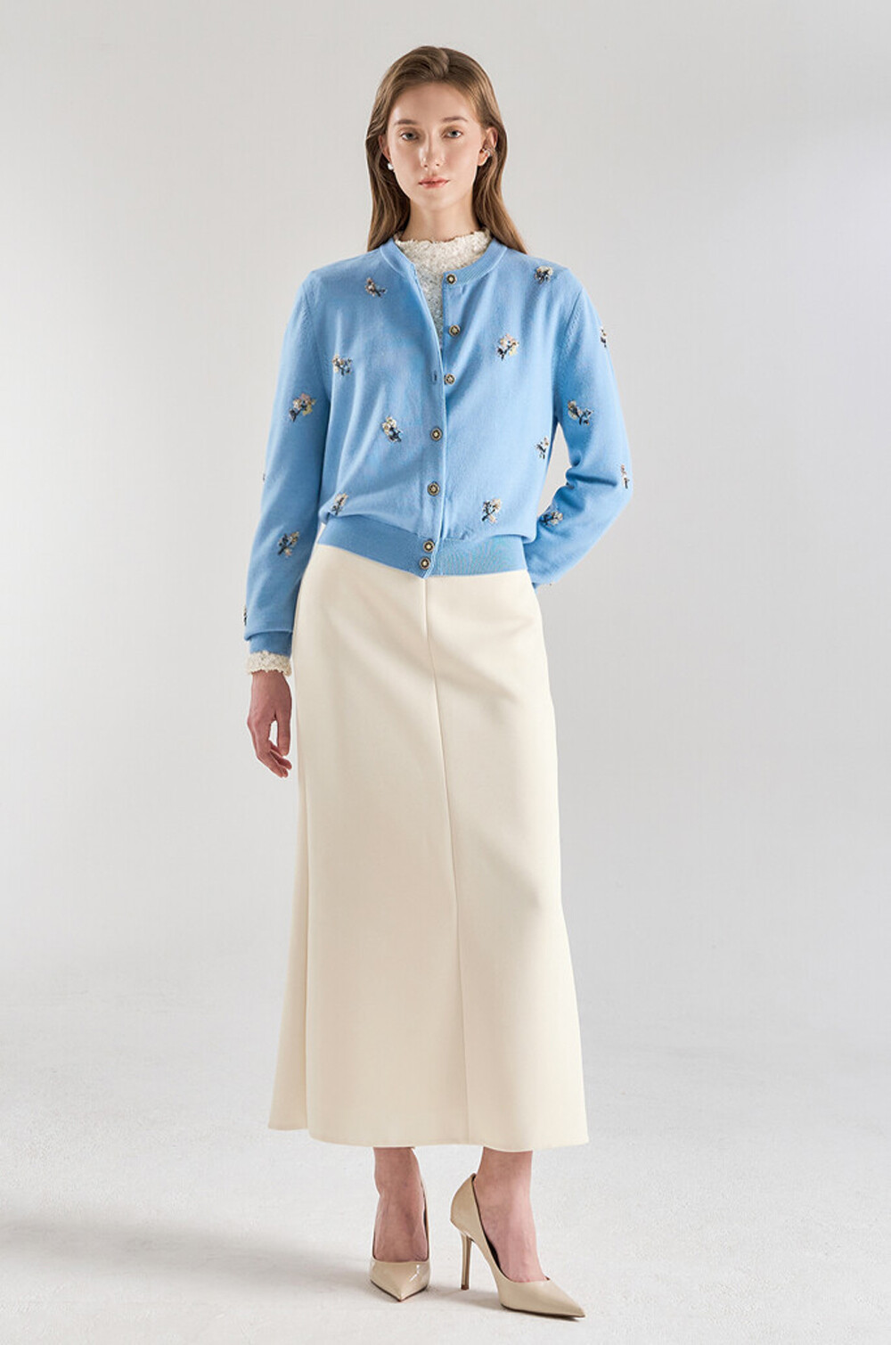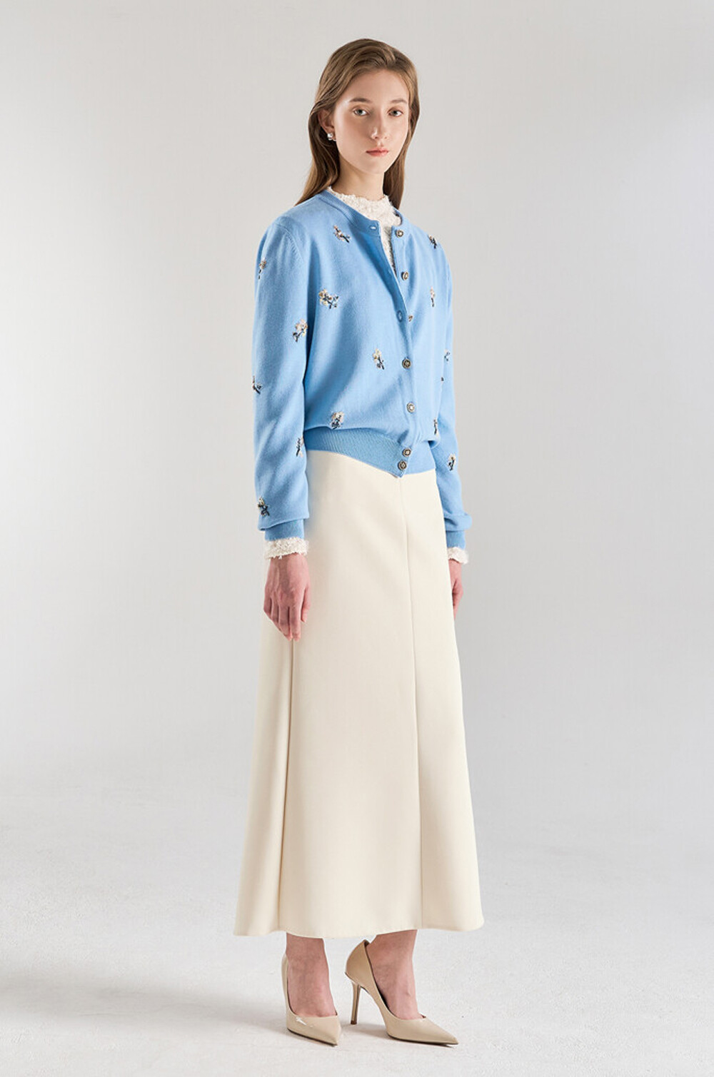 랑방컬렉션 울 플로럴 자수 & 비즈 가디건
