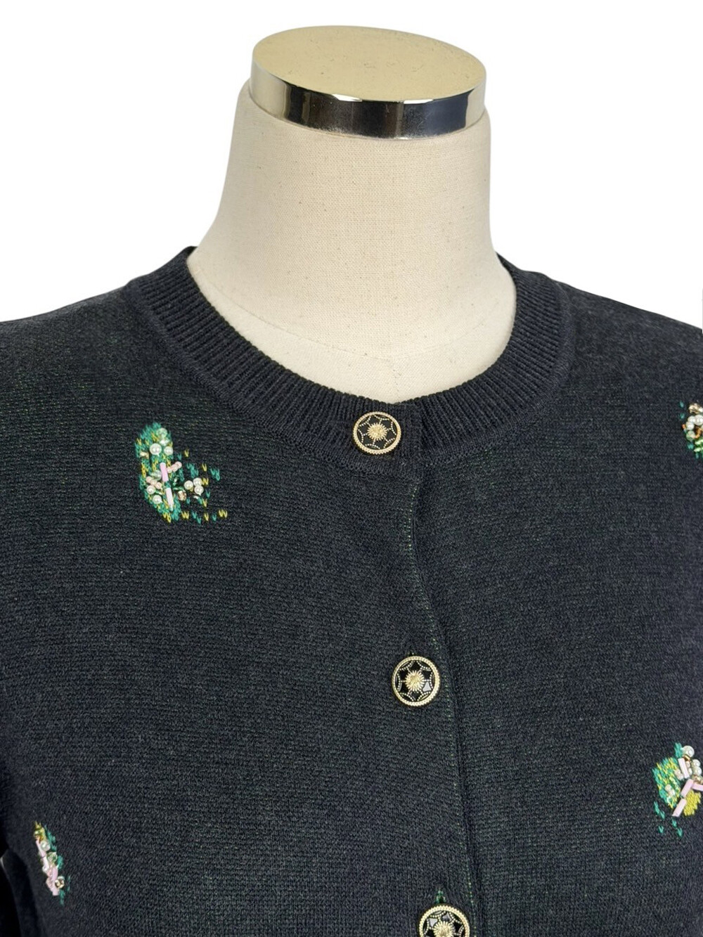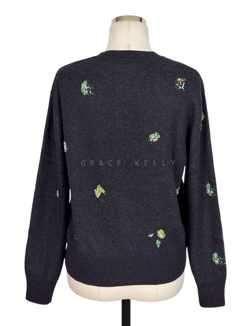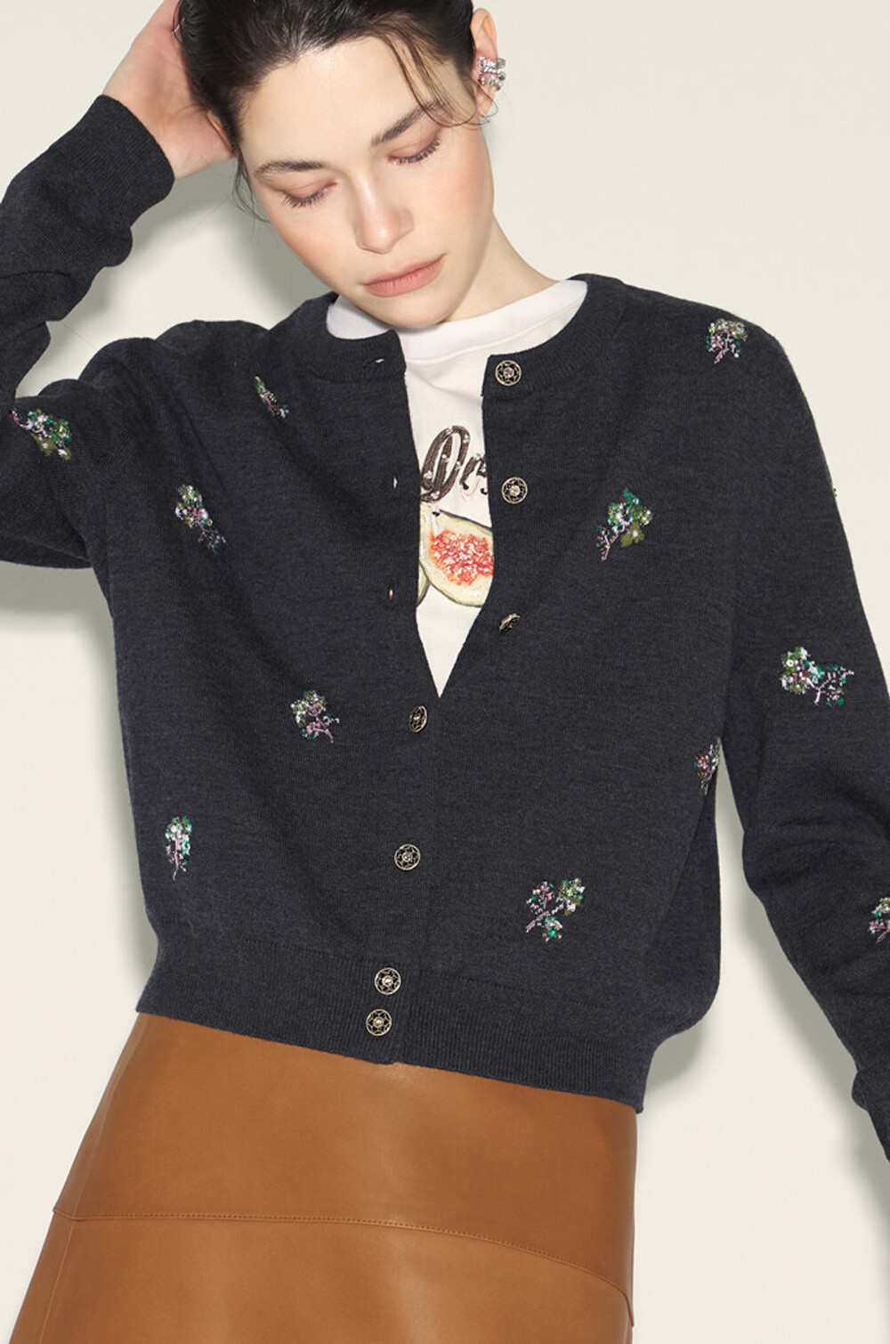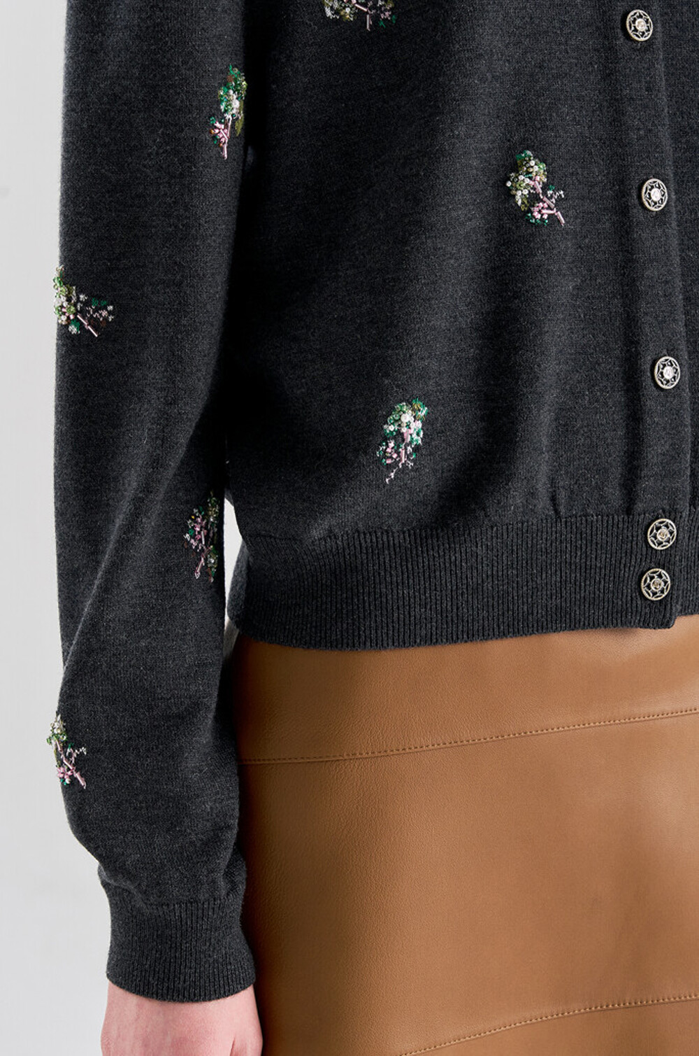 LANVIN. Wool Floral Embroidery & Beads Cardigan