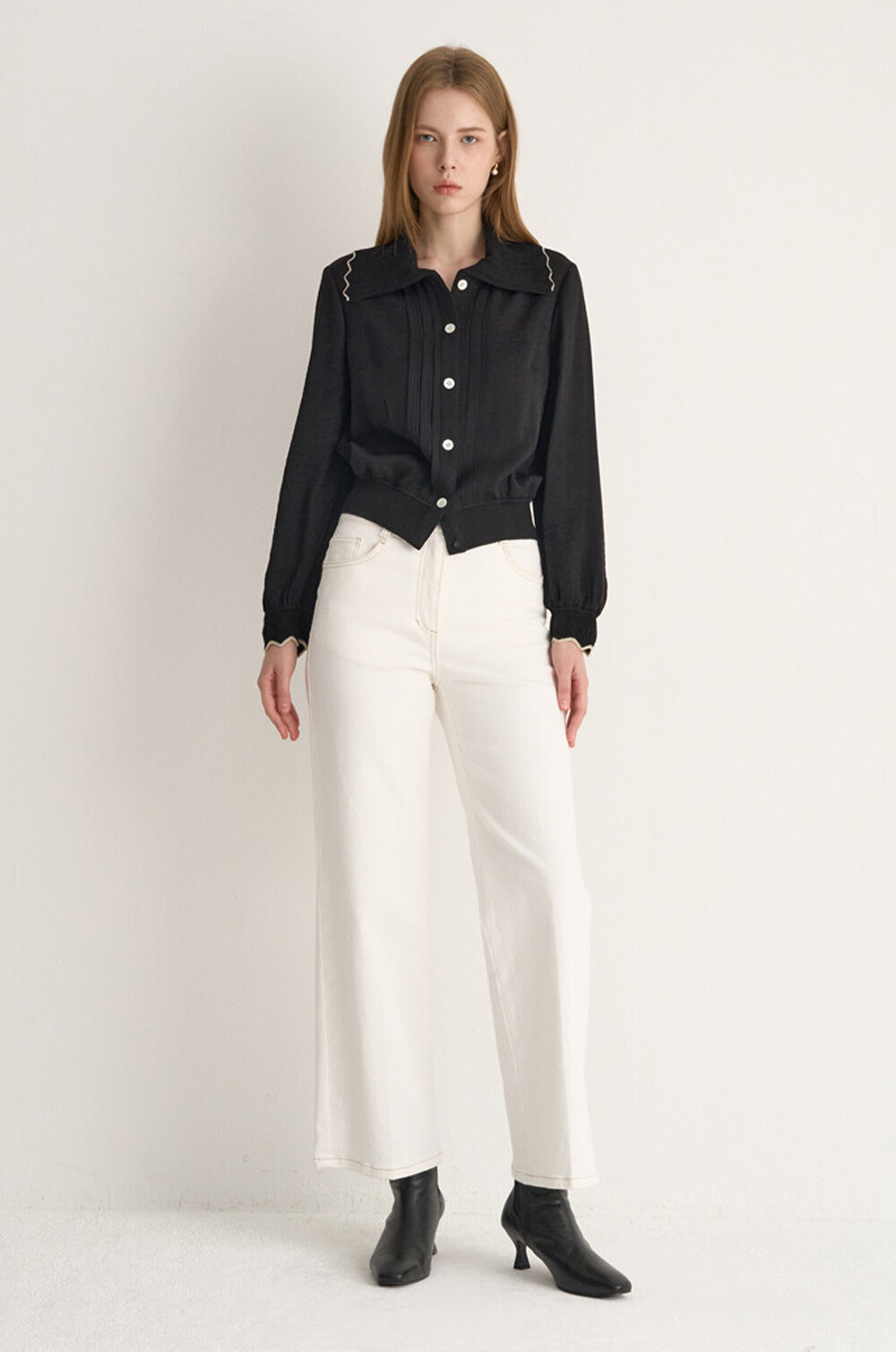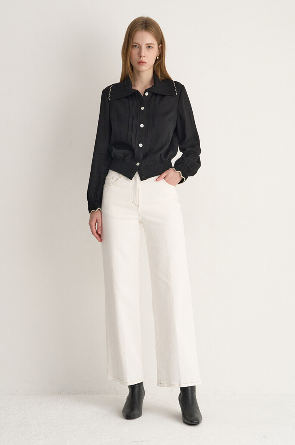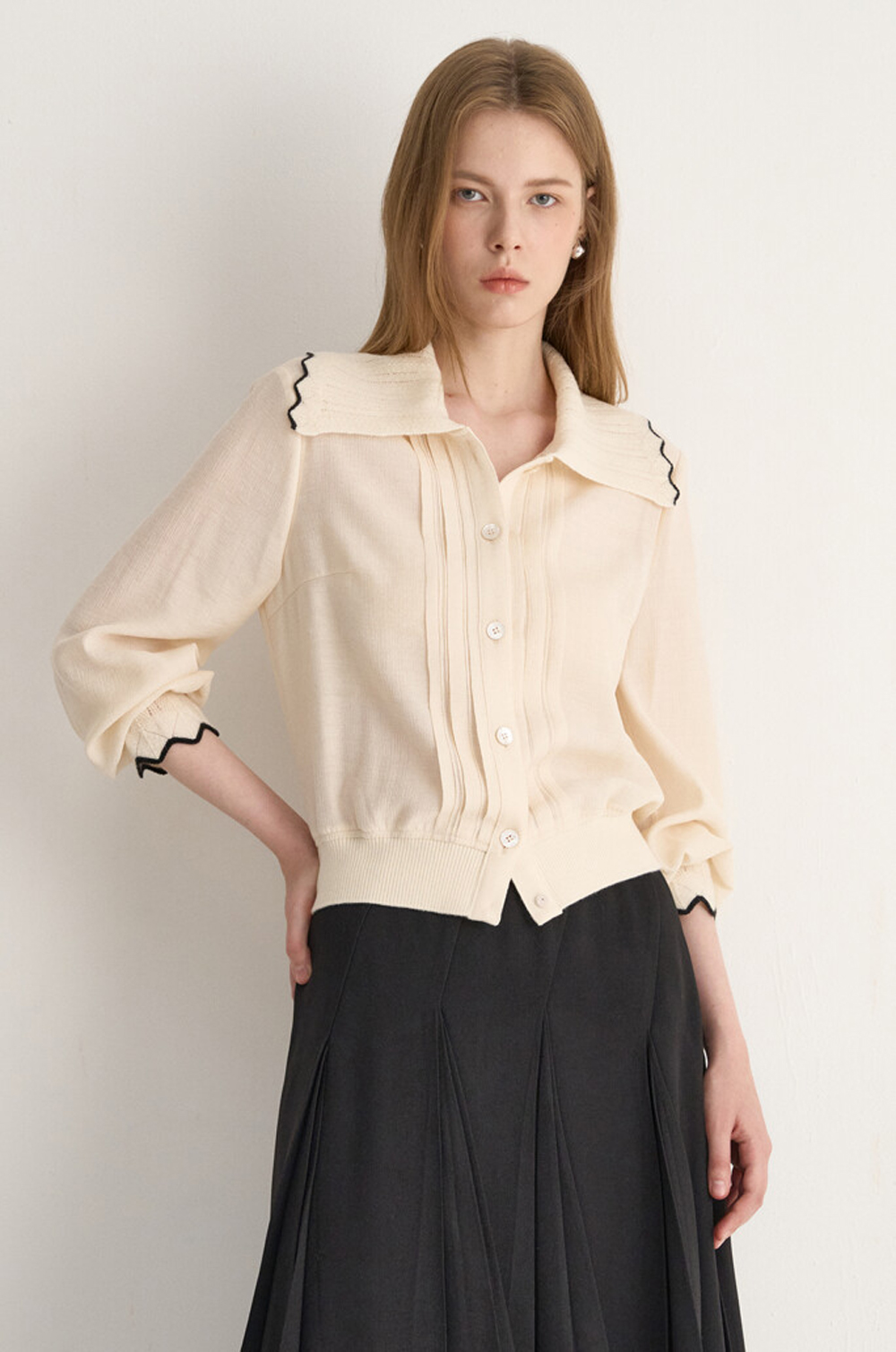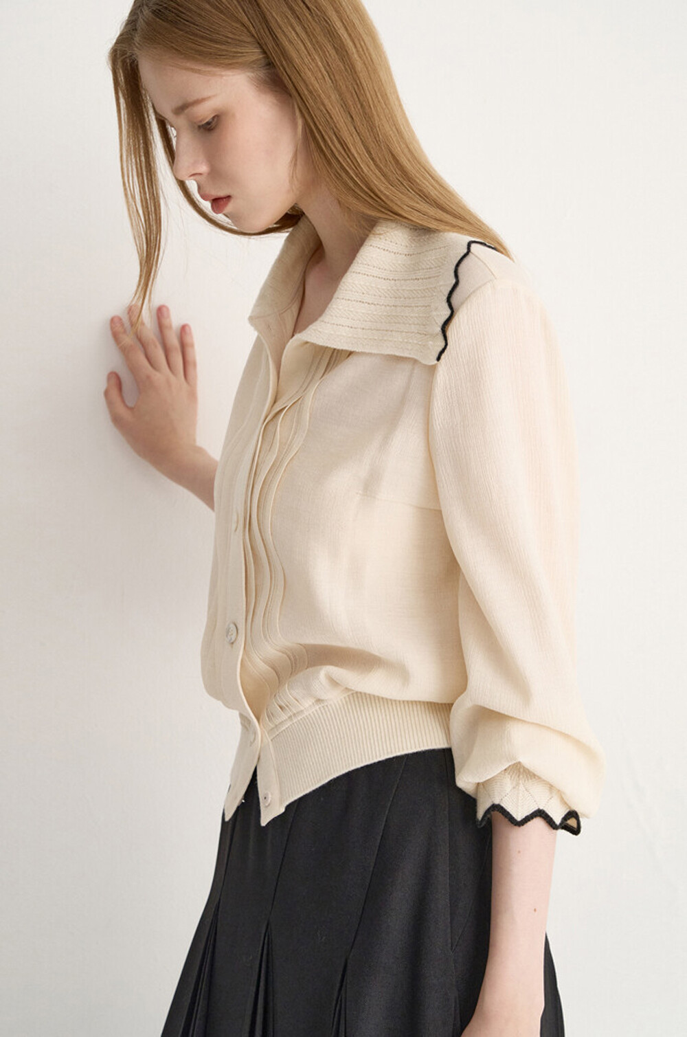 칼라와 소맷단 에지에 컬러 라인을 더해
