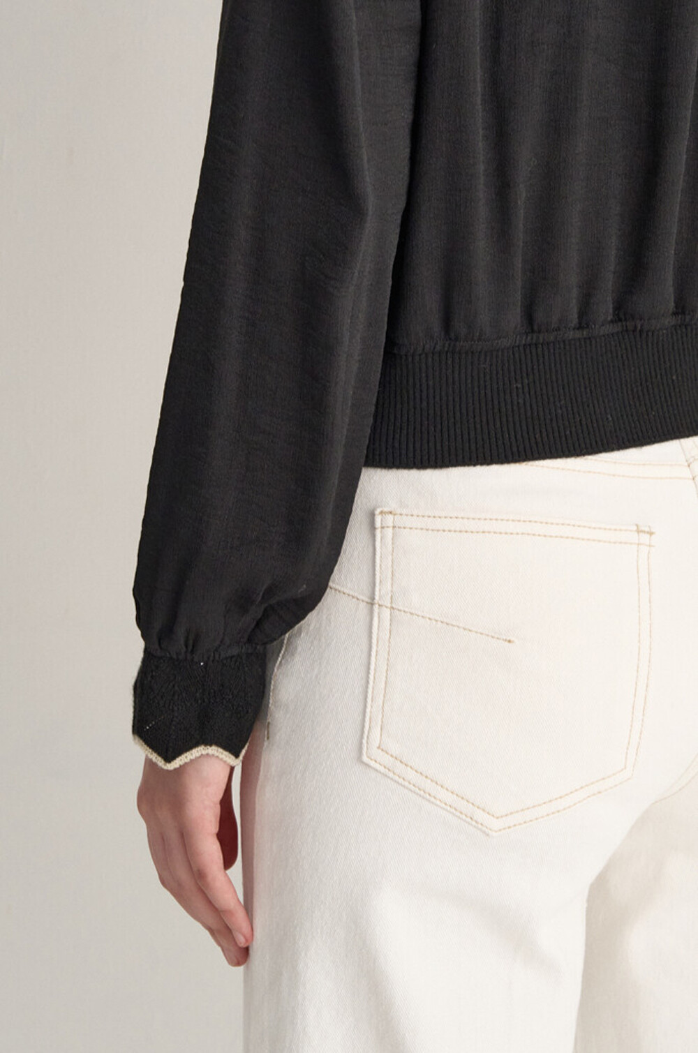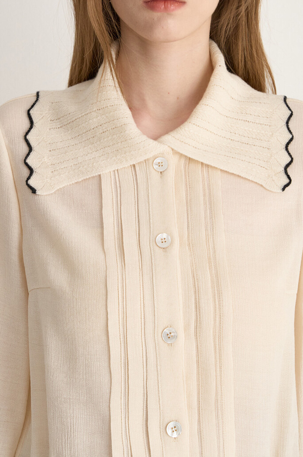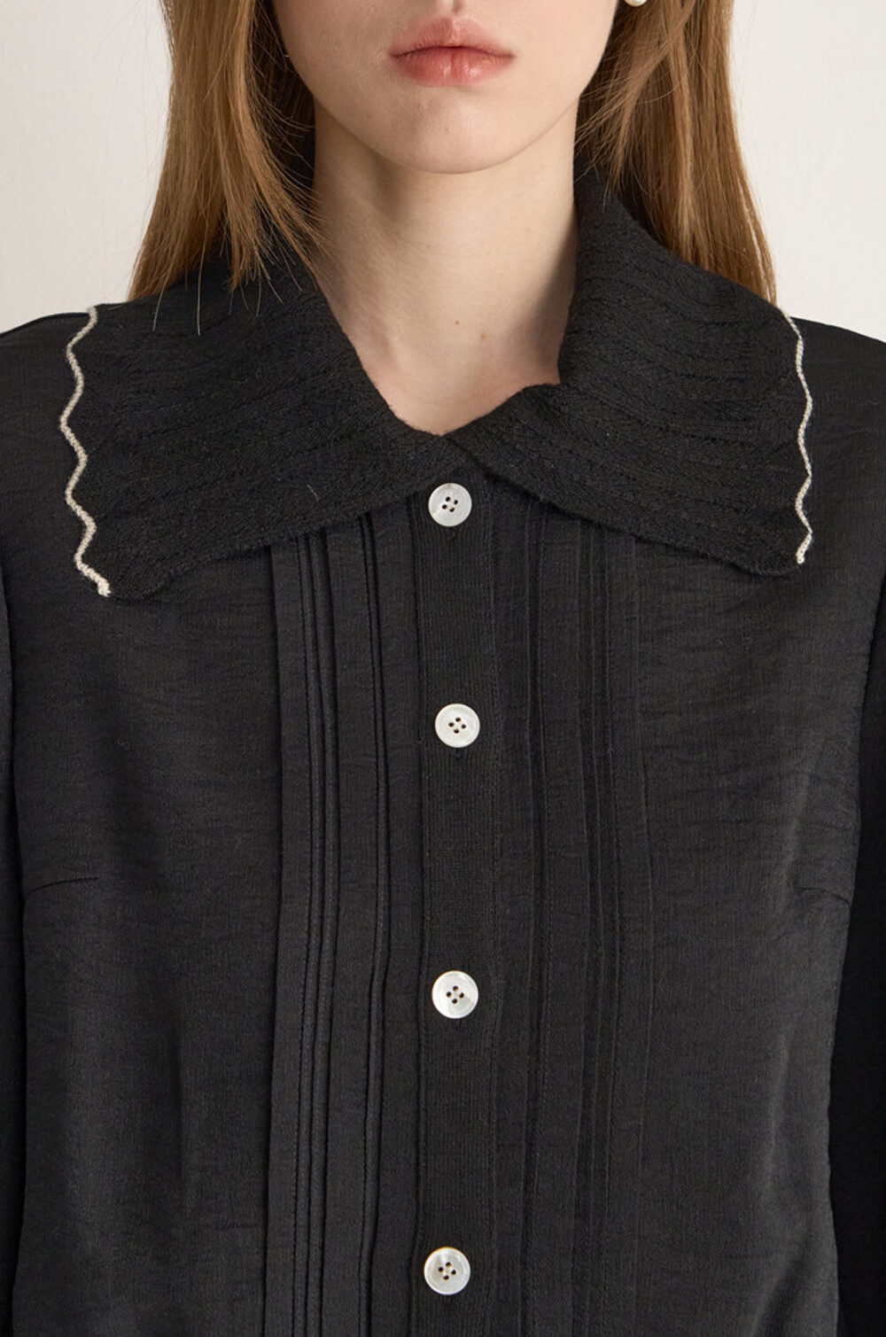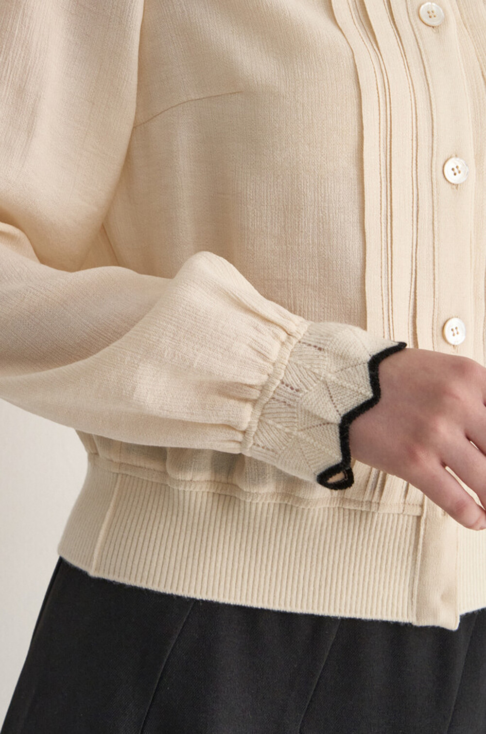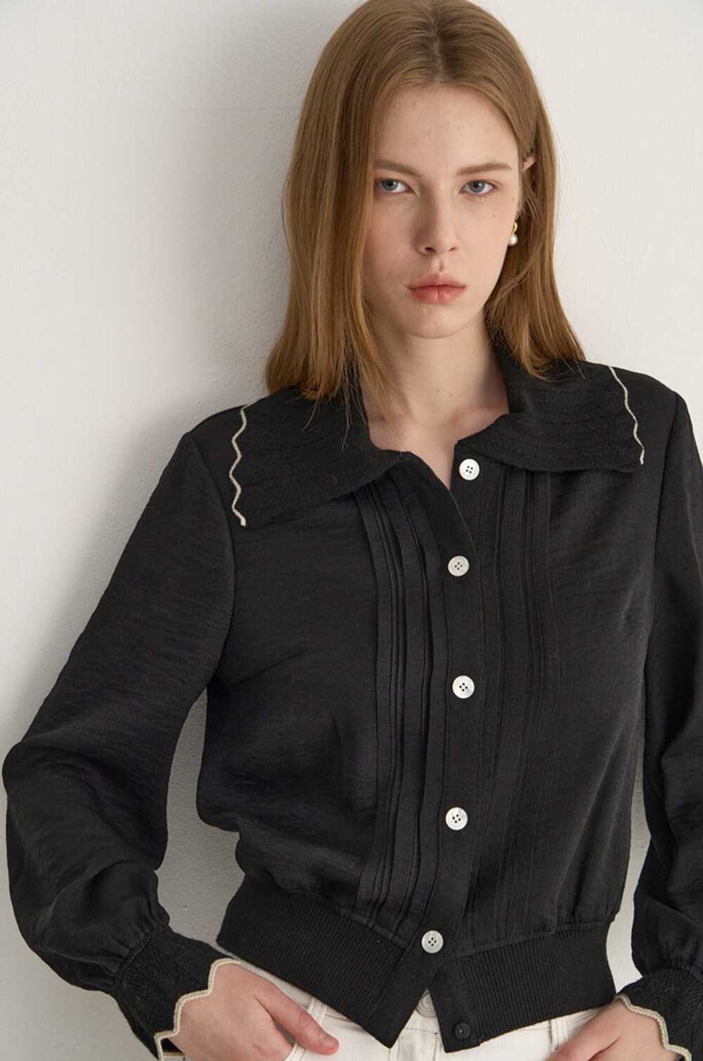 칼라와 소맷단 에지에 컬러 라인을 더해