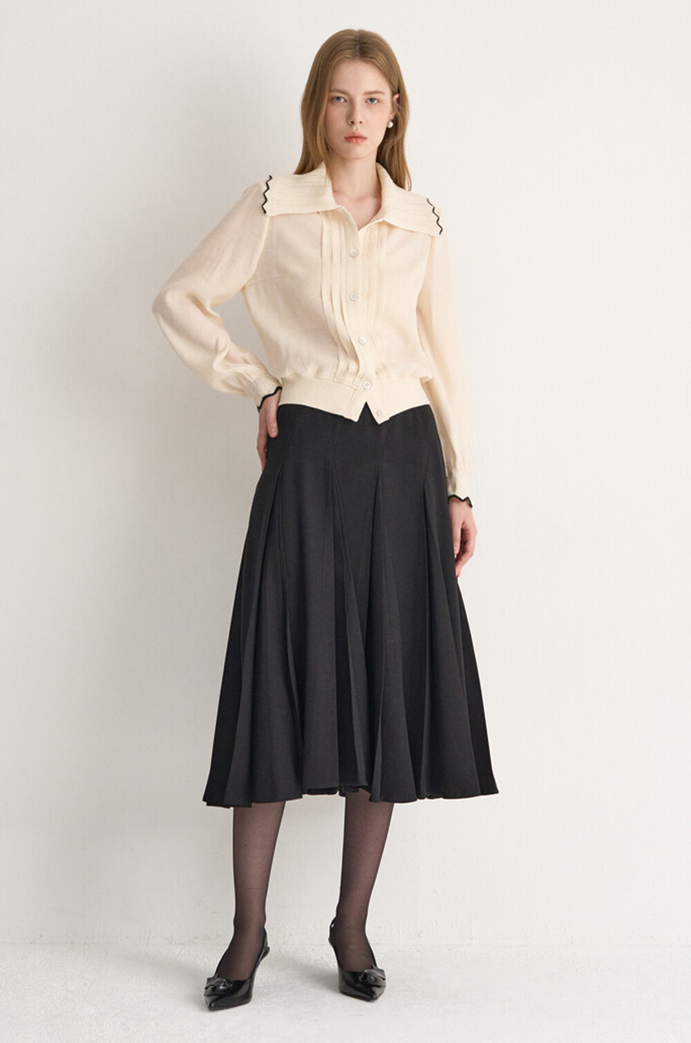 플래킷 라인 양옆에 플리츠 주름을 잡아