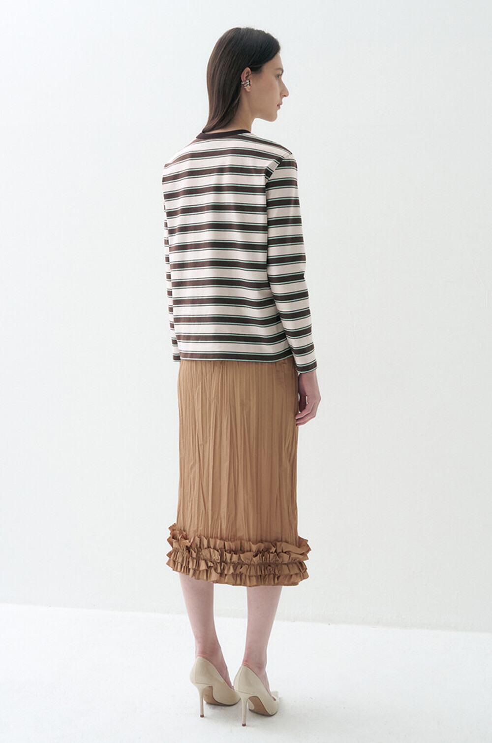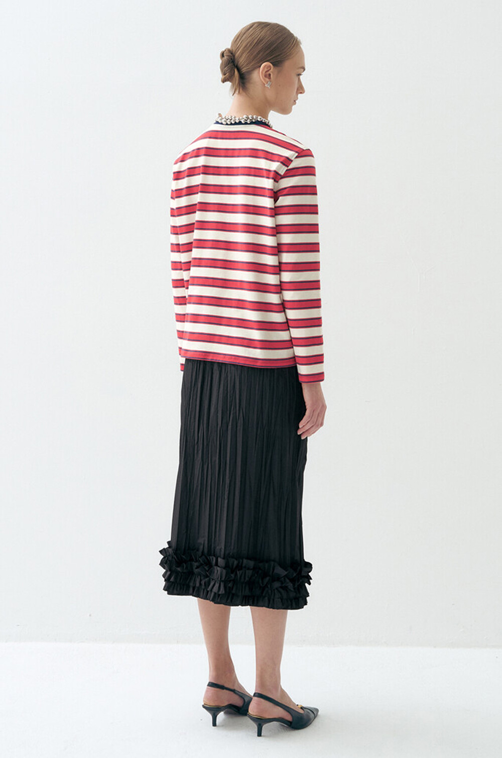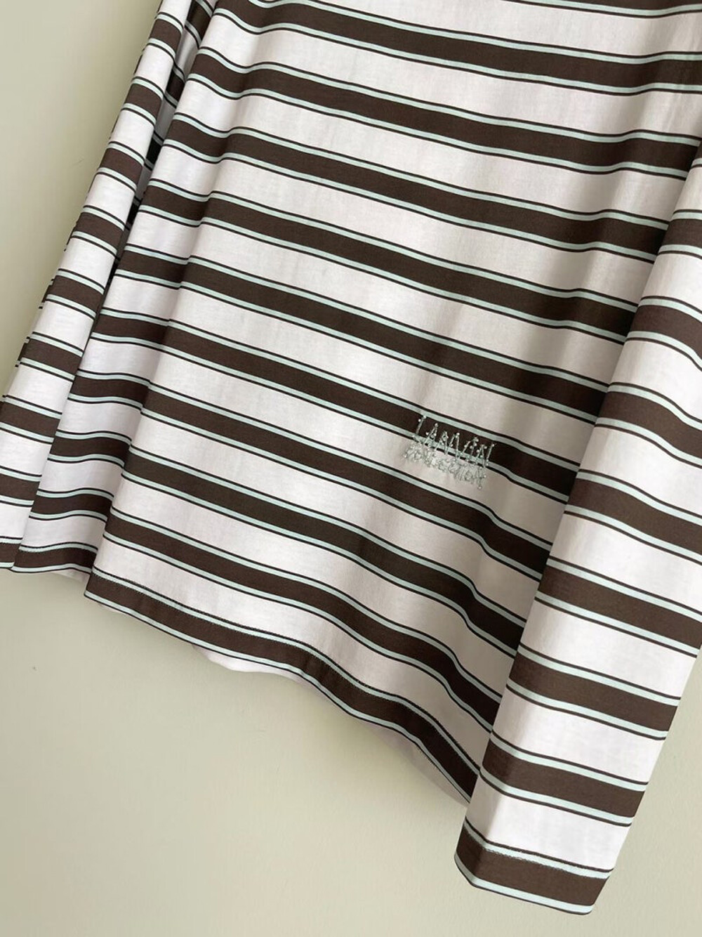 글리터 넥라인과 스트라이프 패턴이