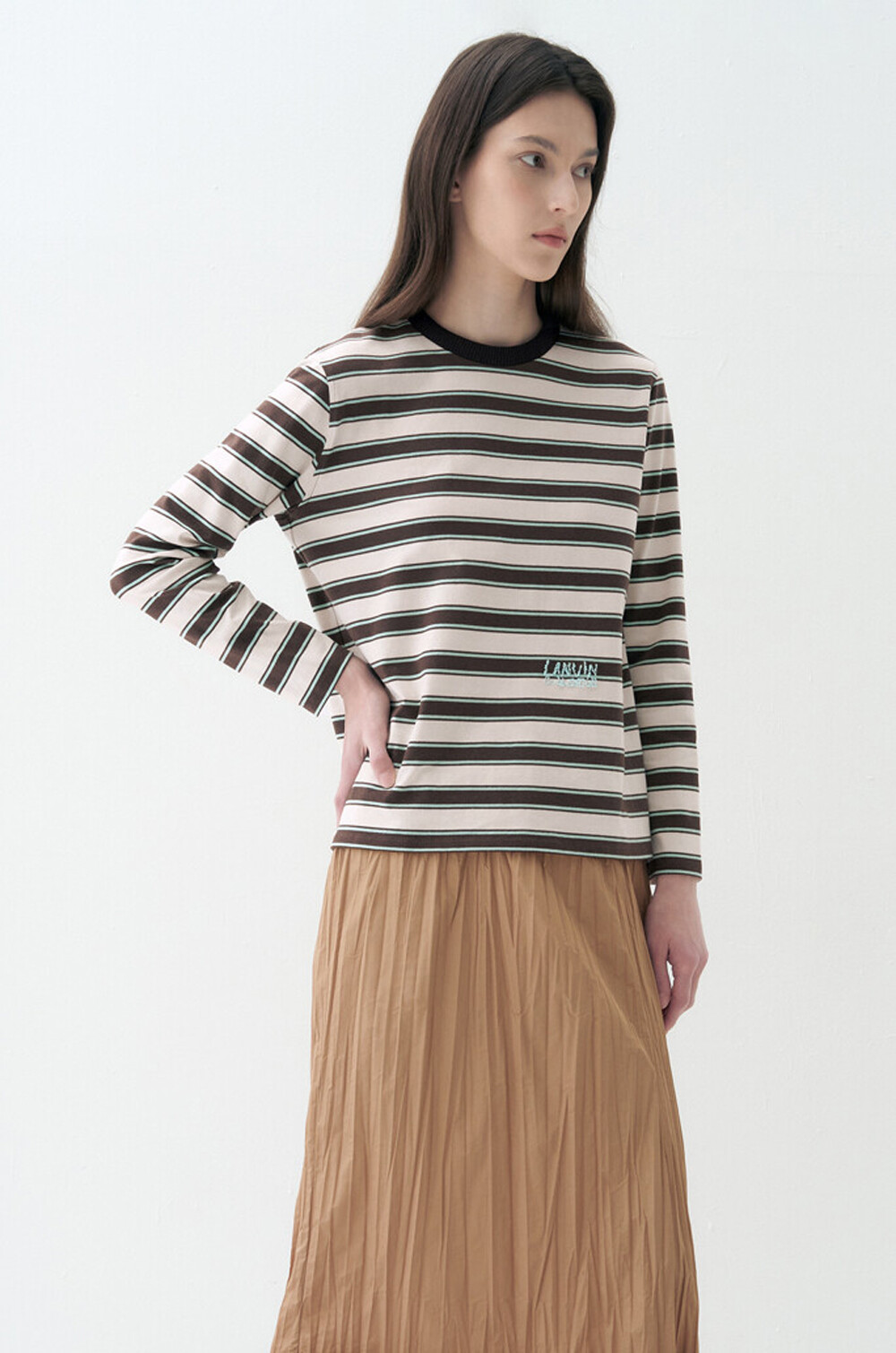 랑방컬렉션 비즈 로고 스트라이프 티셔츠