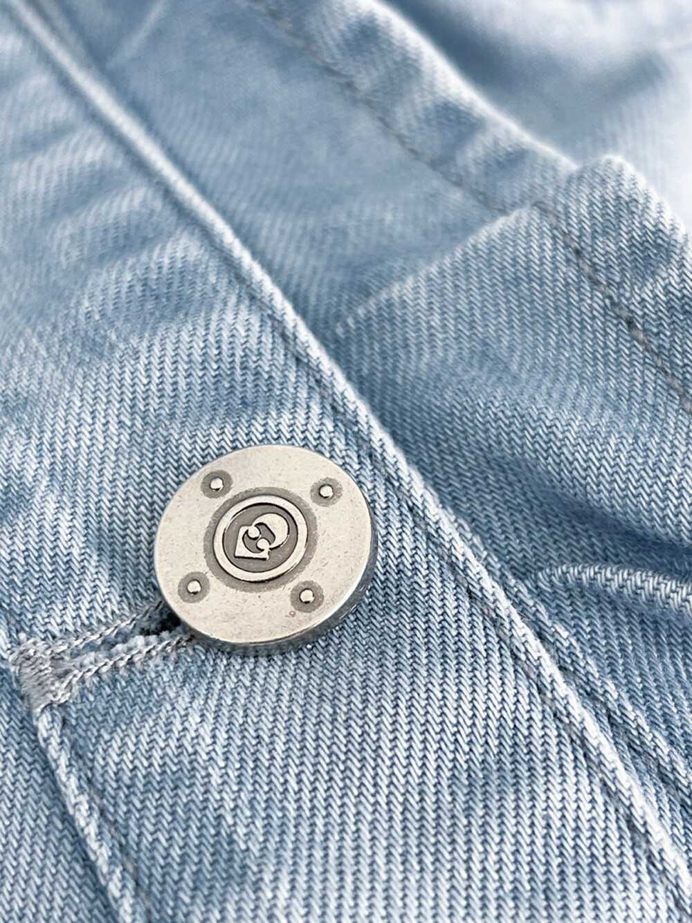 - 앞 중심 러플과 포켓 위 레터링 자수로 포인트를 줌.