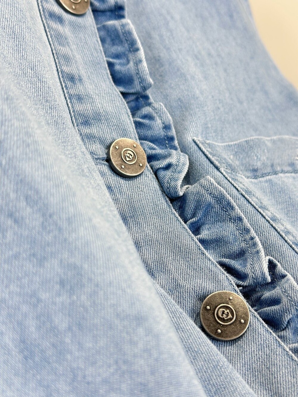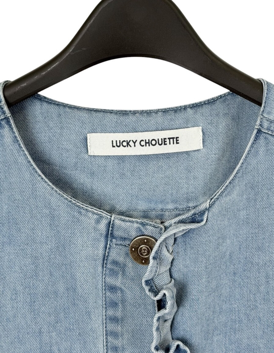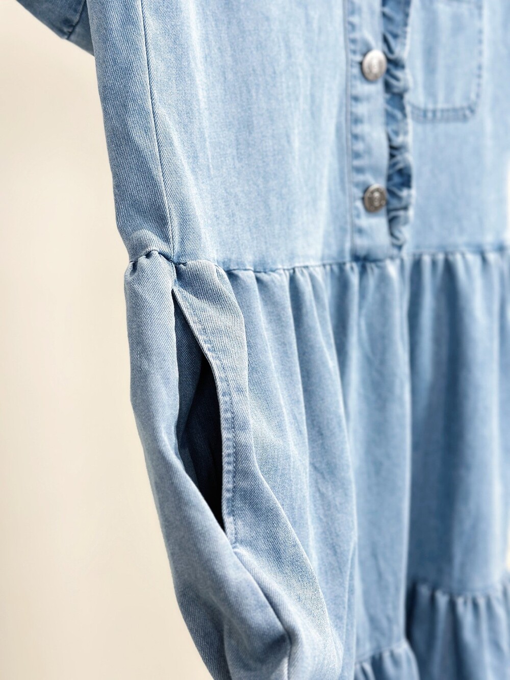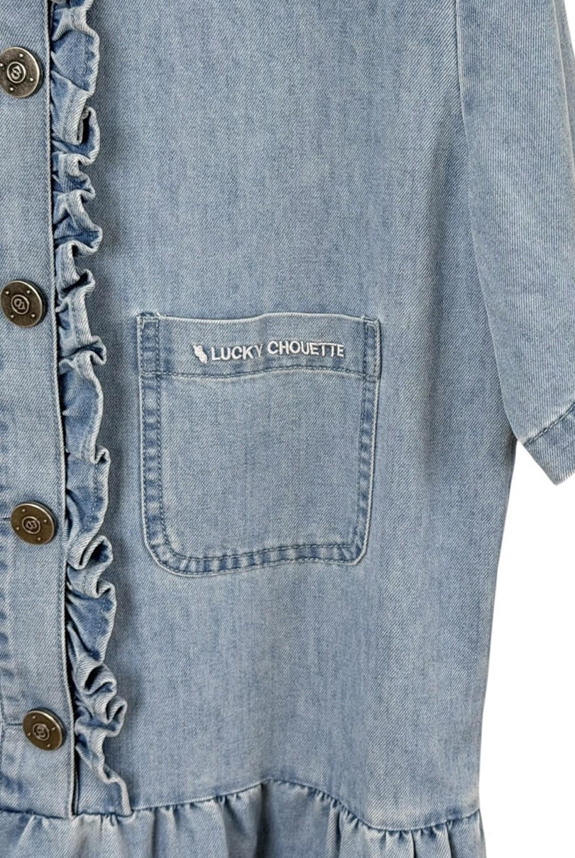 LUCKY CHOUETTE. Ruffle Point Denim Long Dress