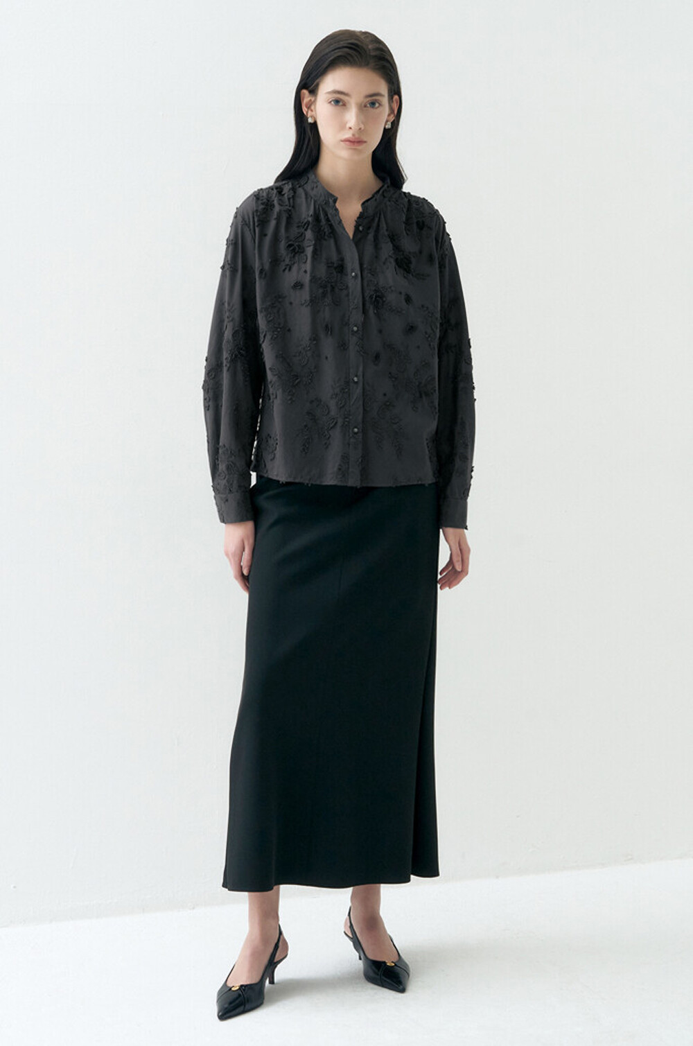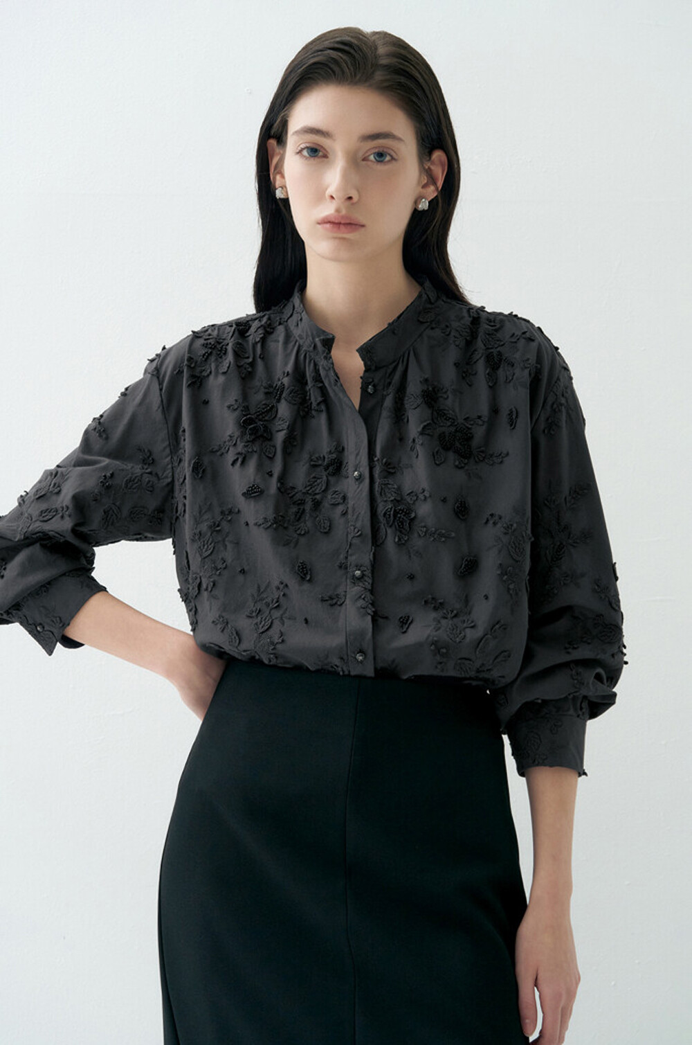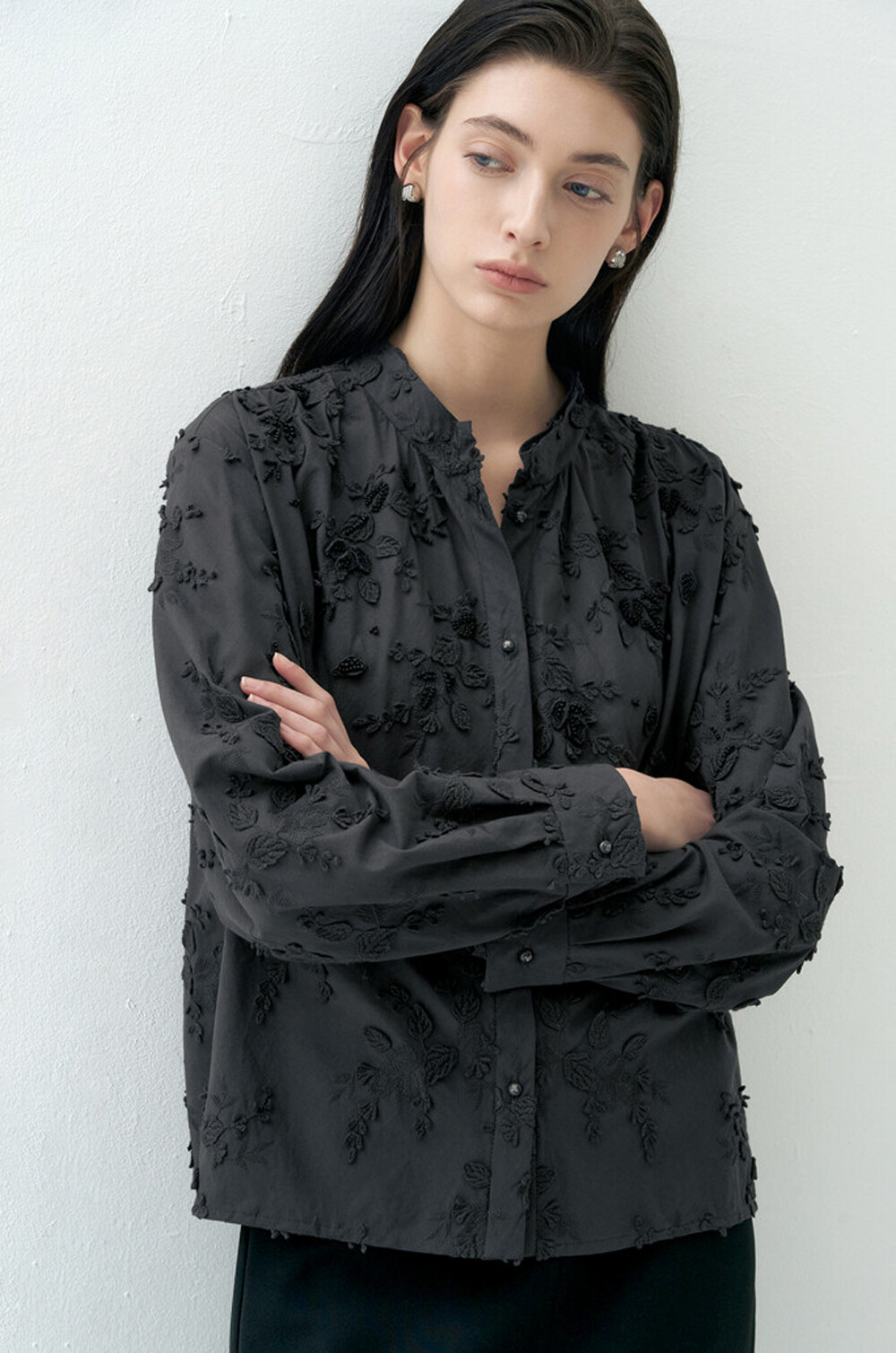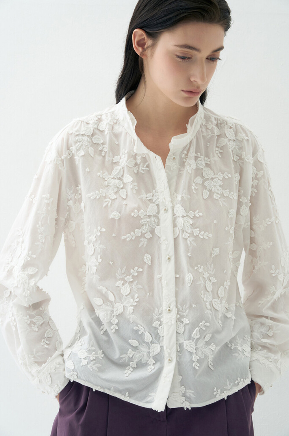 랑방컬렉션 플라워 아플리케 블라우스